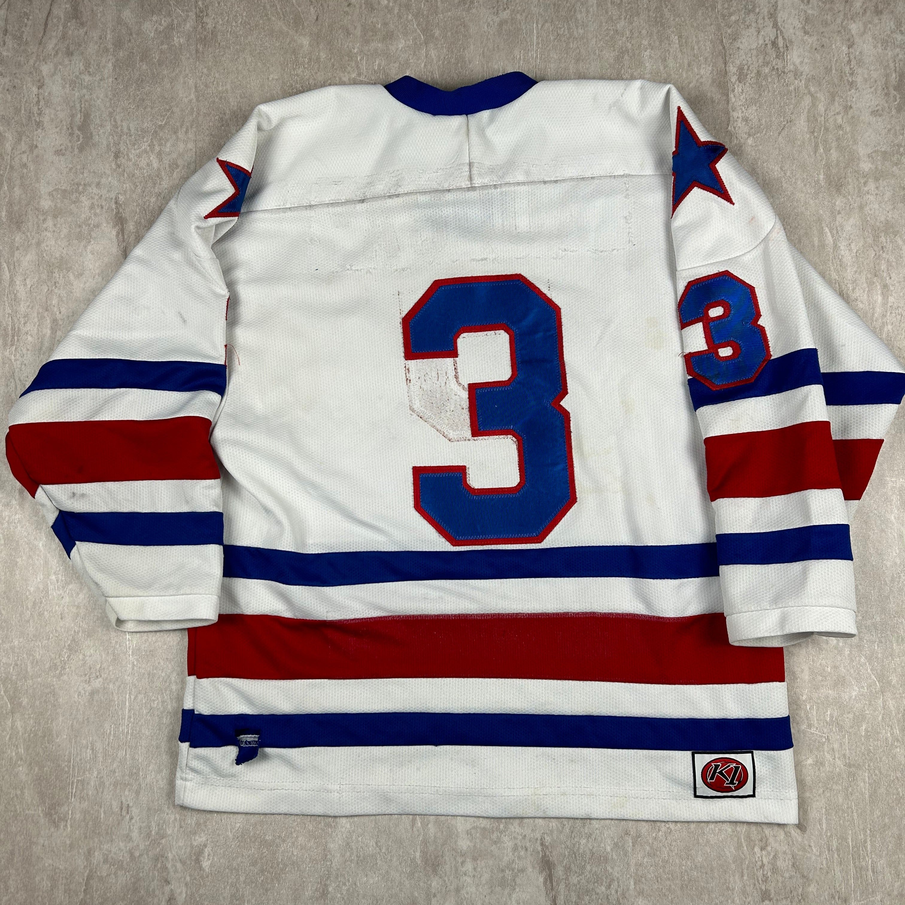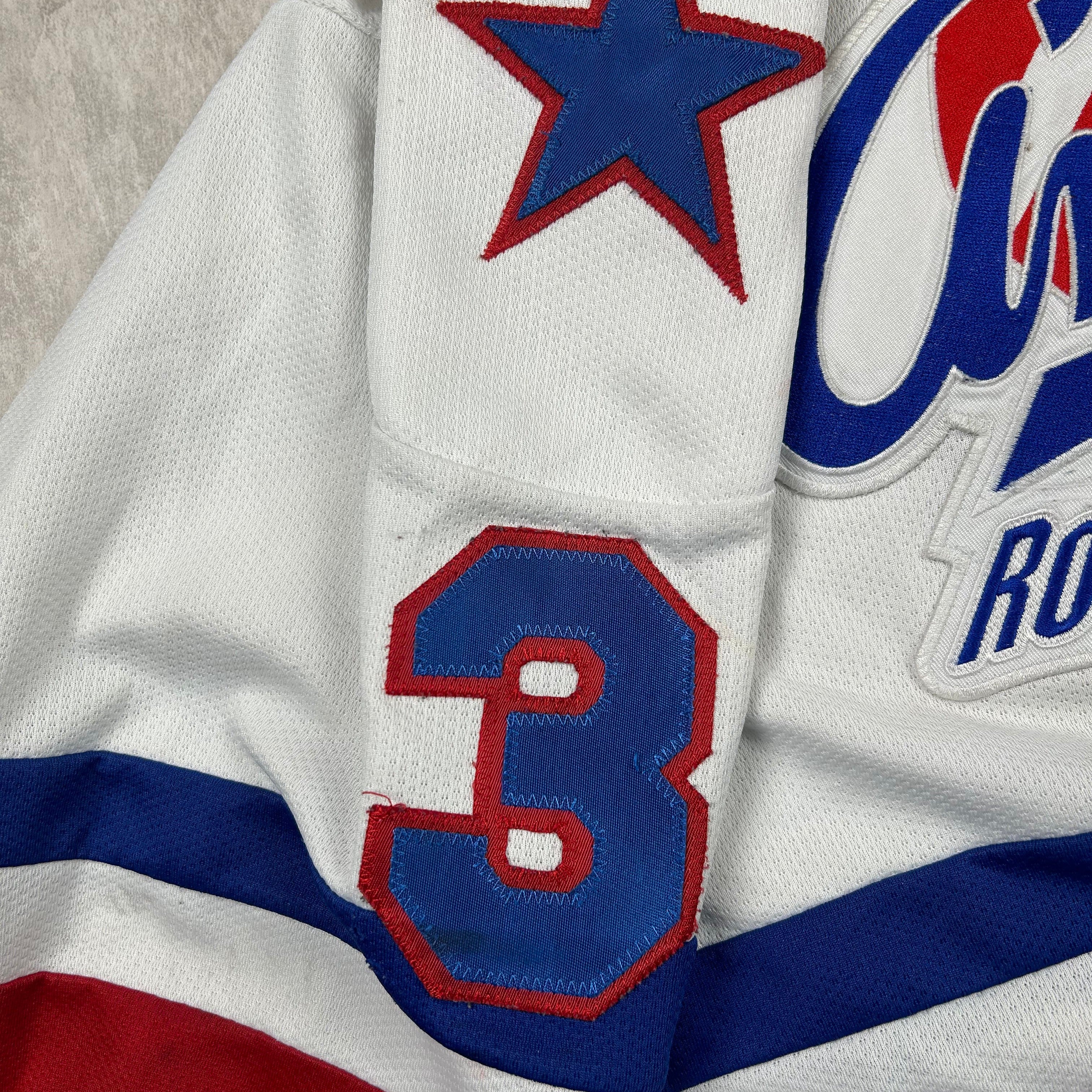 Support your favorite team with our Rochester NY Americans Amerks Hockey Jersey. This red, white, and blue AHL jersey, featuring #3, is perfect for young fans in youth size S. Show your Amerks pride in style on and off the ice.