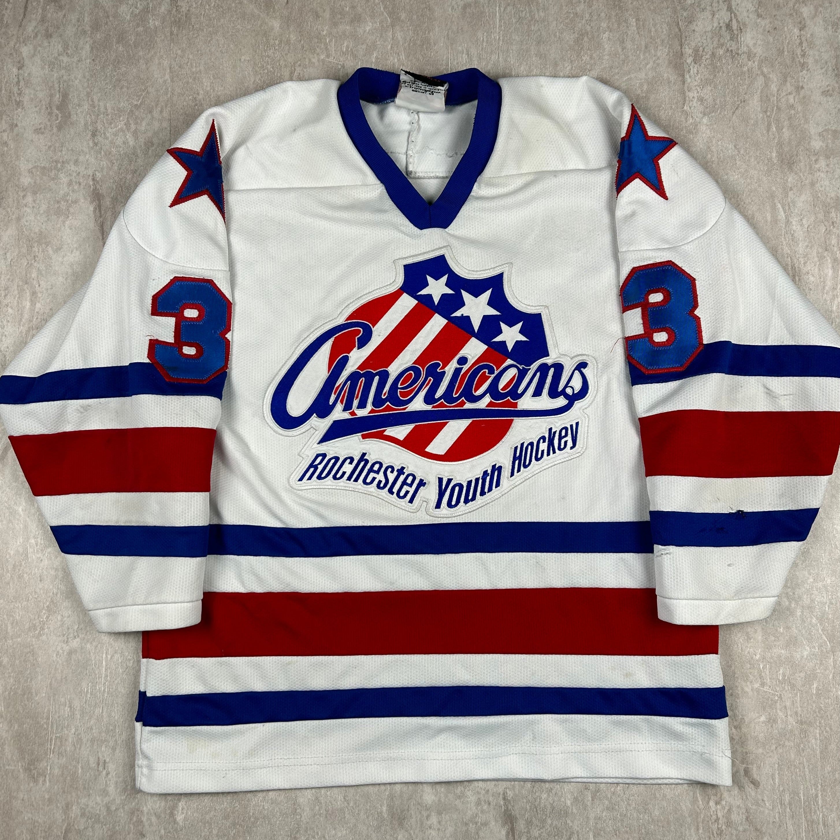 Rochester NY Americans Amerks Hockey Jersey Red White Blue AHL #3 Youth Size S