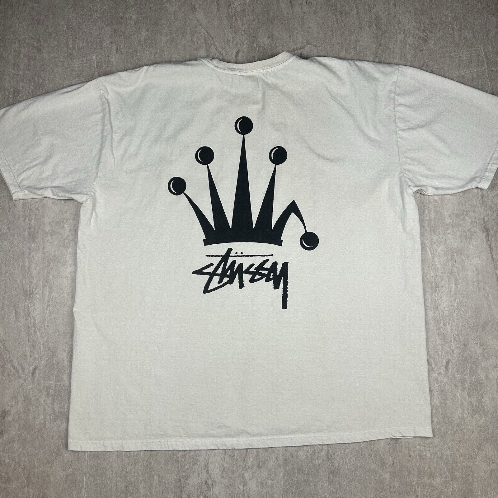 Stussy Regal Crown White T-Shirt Short Sleeve Double Sided Men’s Size 2XL