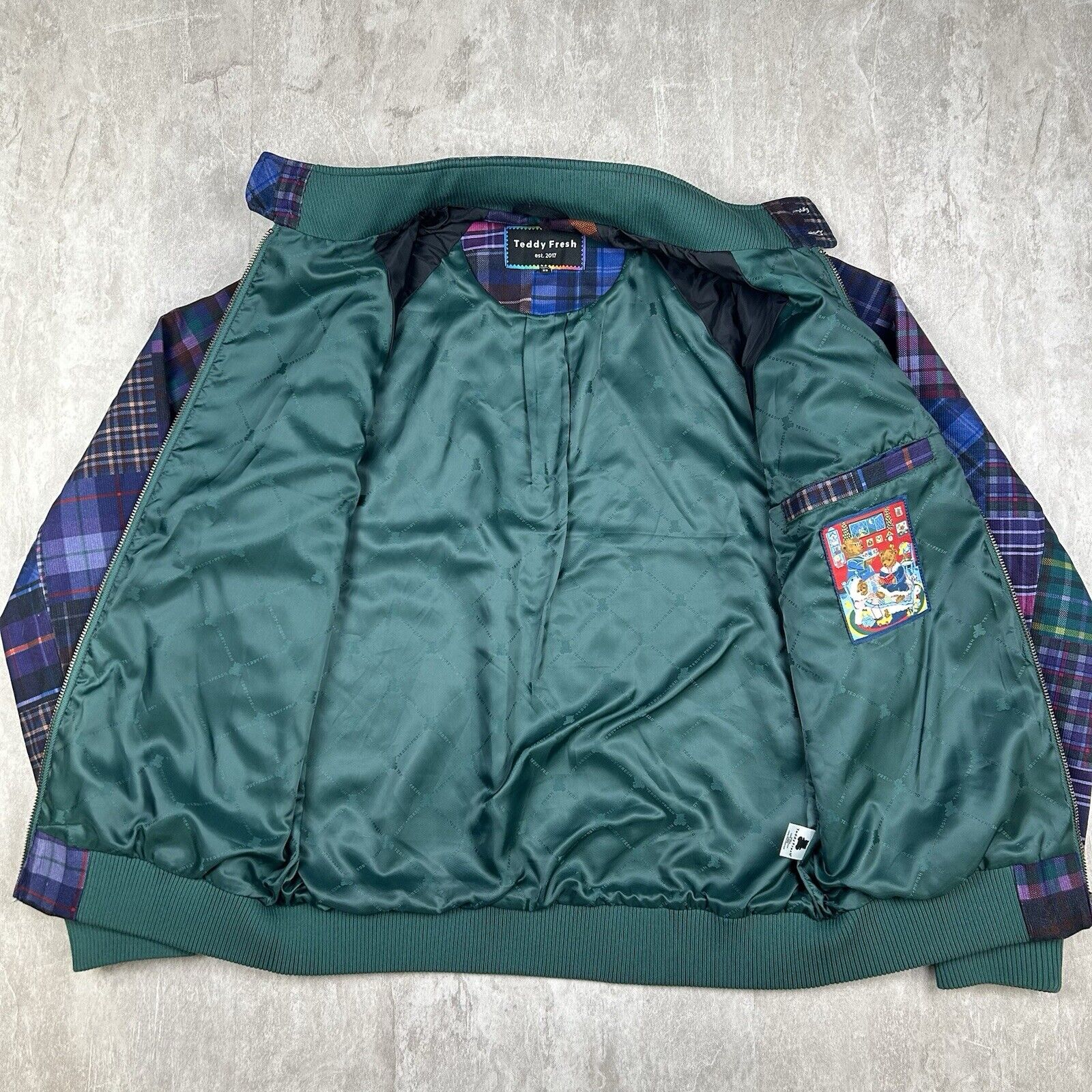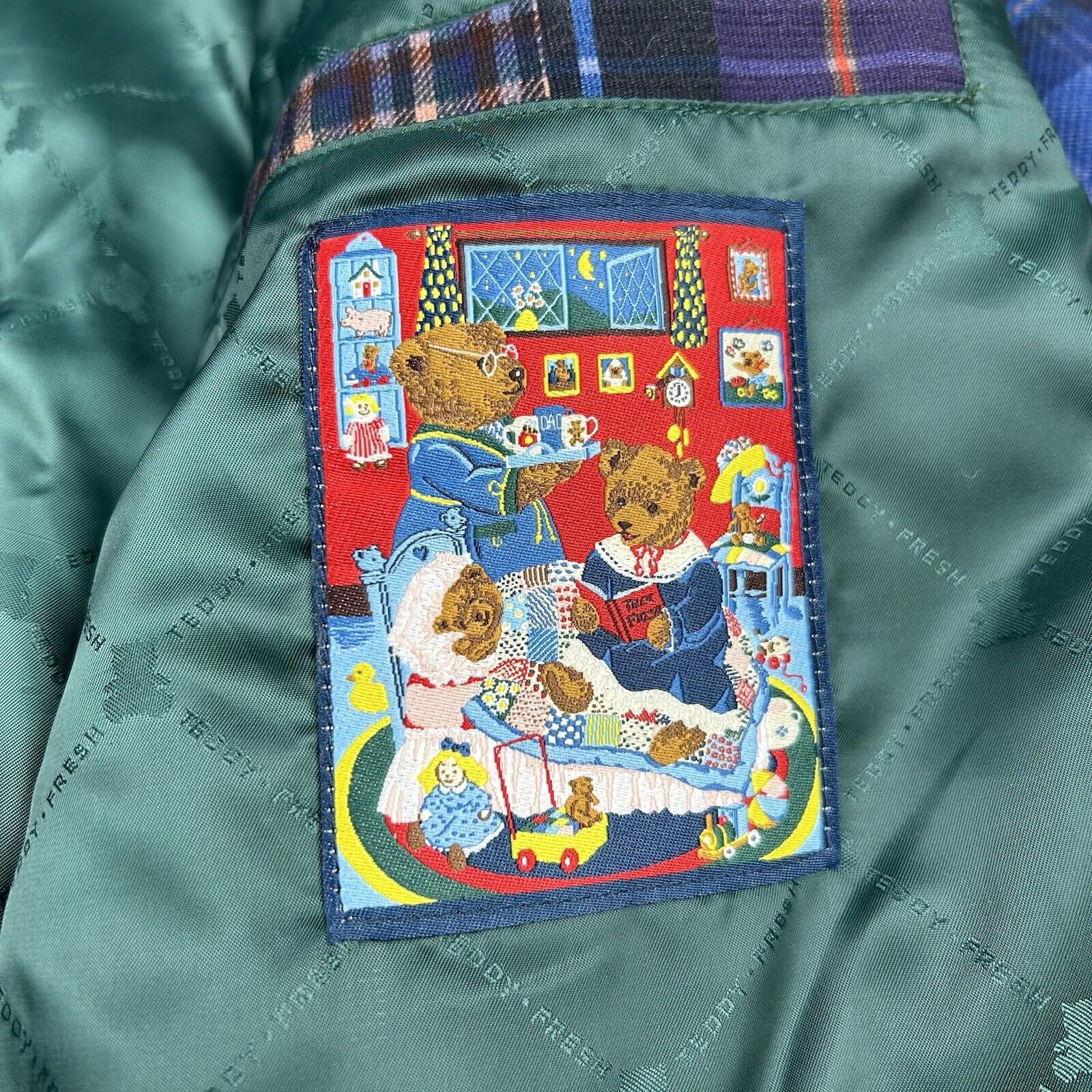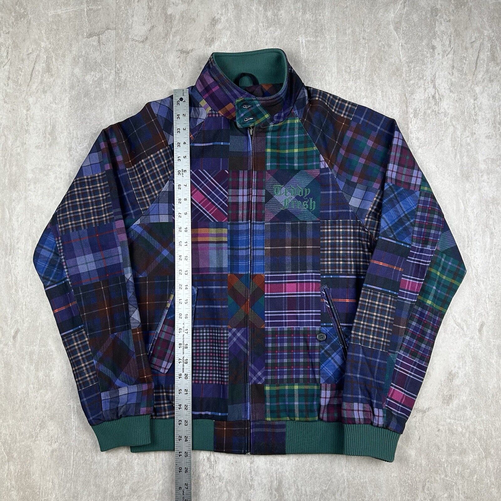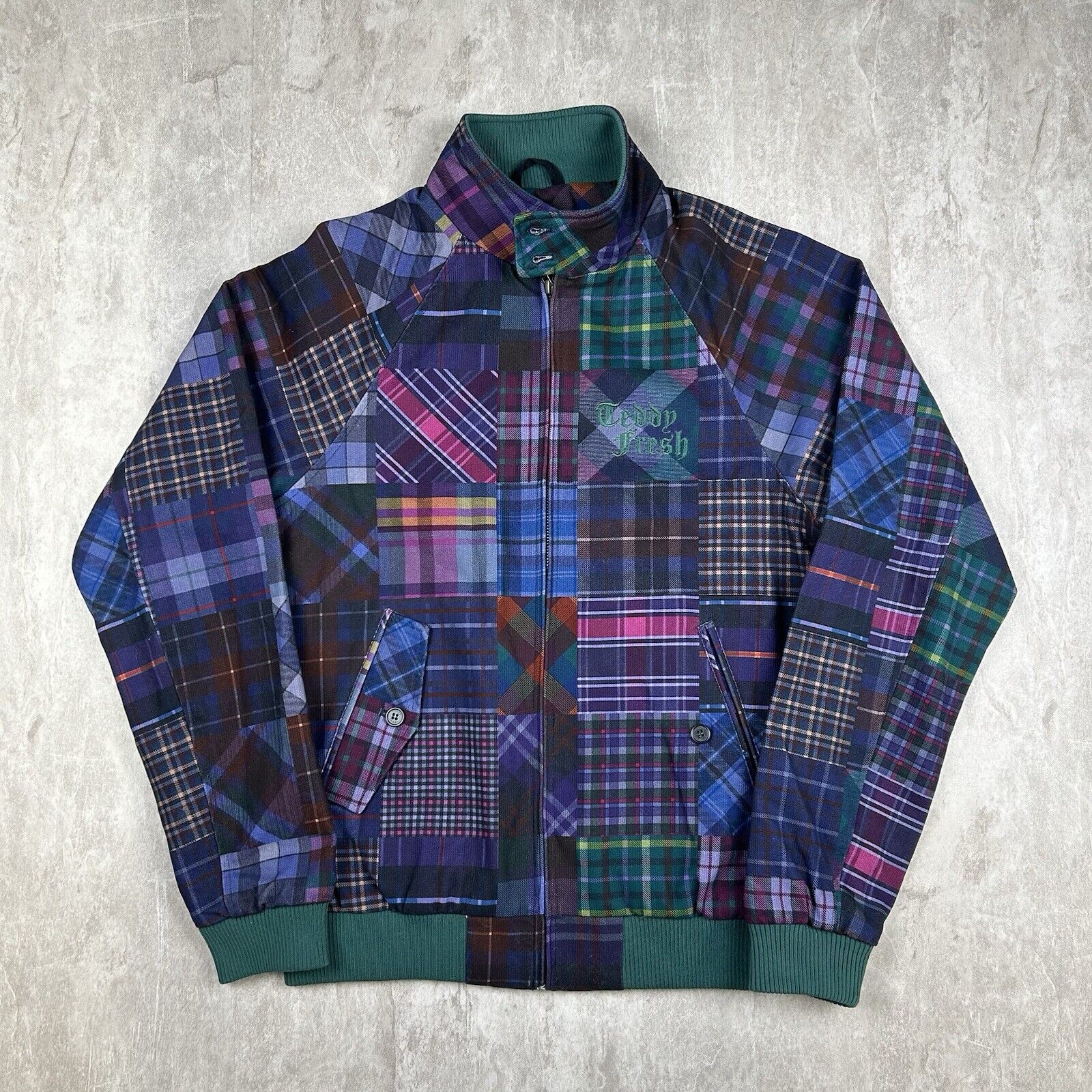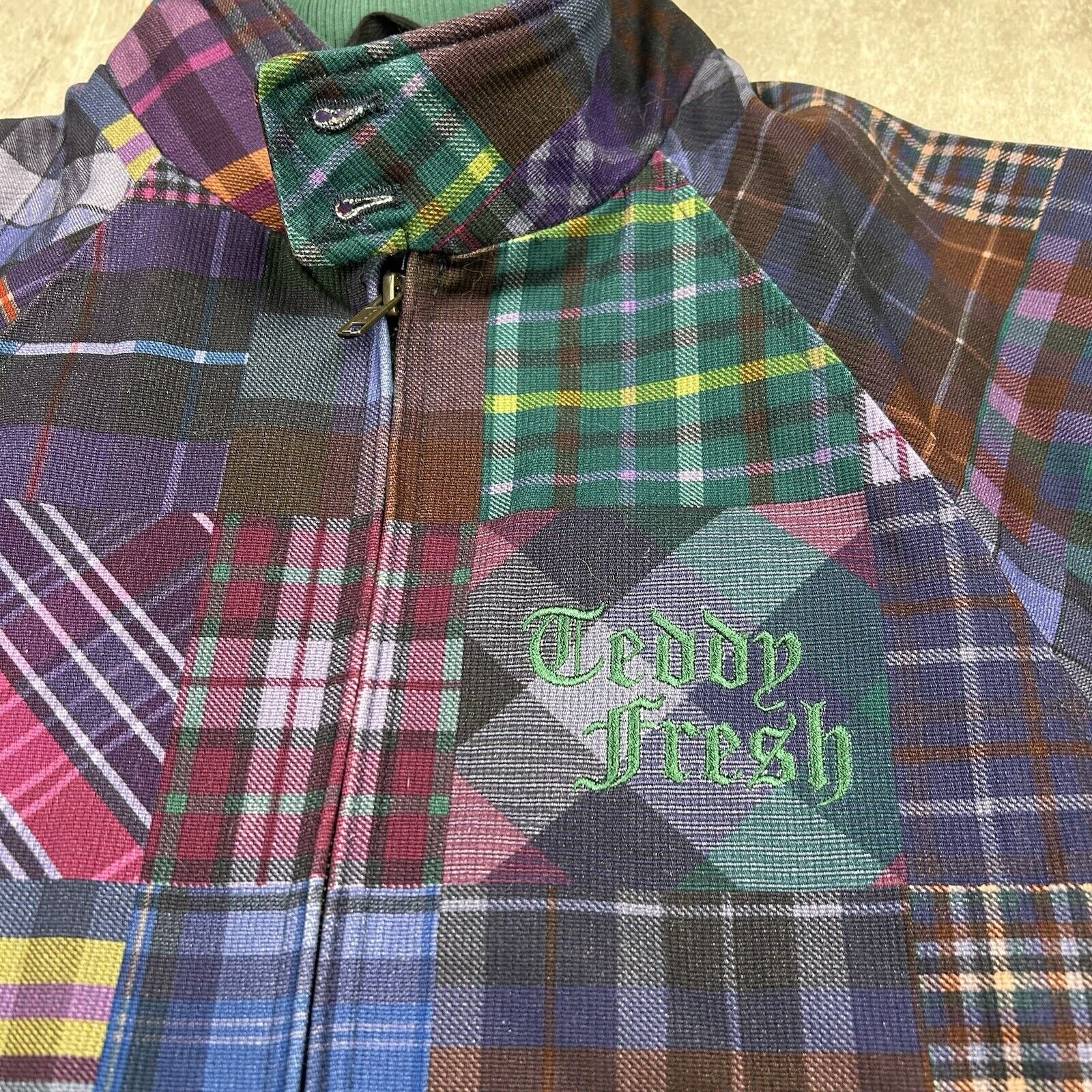 Teddy Fresh Patchwork Plaid Jacket Corduroy Multicolor Grandpa Men’s Size XS