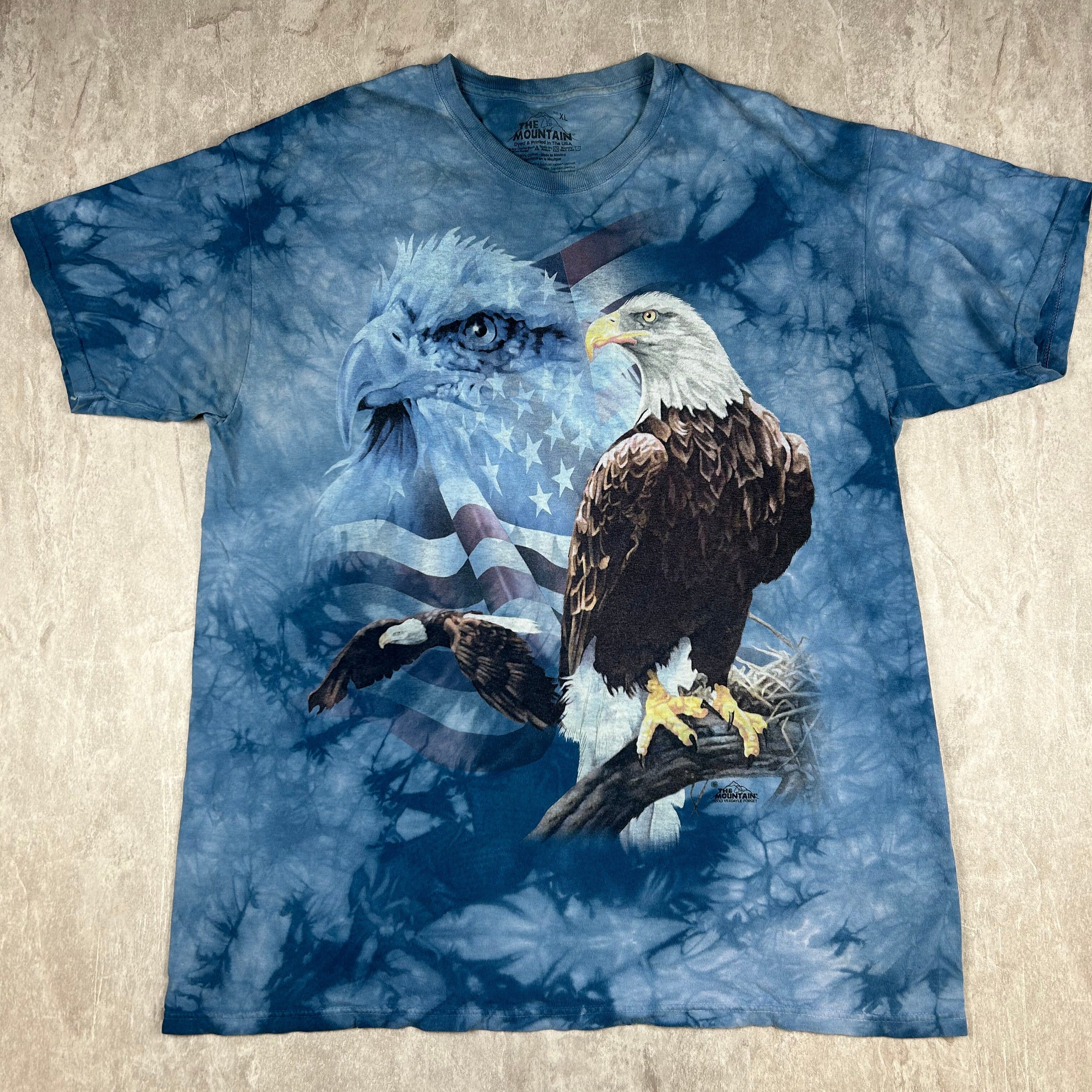 Show your patriotic pride with The Mountain Blue American Bald Eagle T-Shirt. Made in the USA in 2013, this men's XL tee features a stunning bald eagle graphic. Perfect for nature lovers and proud Americans, add this iconic piece to your collection today!