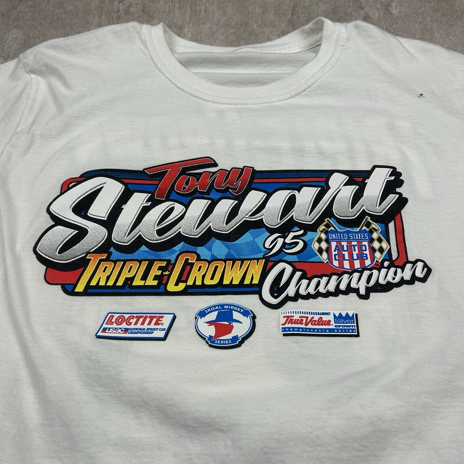 Tony Stewart NASCAR Triple Crown Champion 95 White T-Shirt Men’s Size Unknown