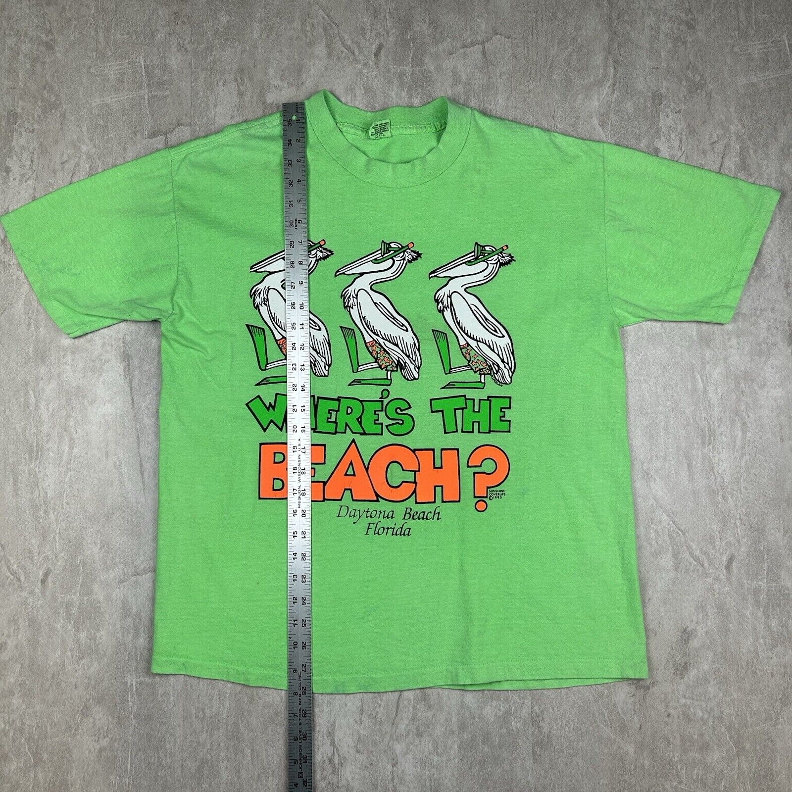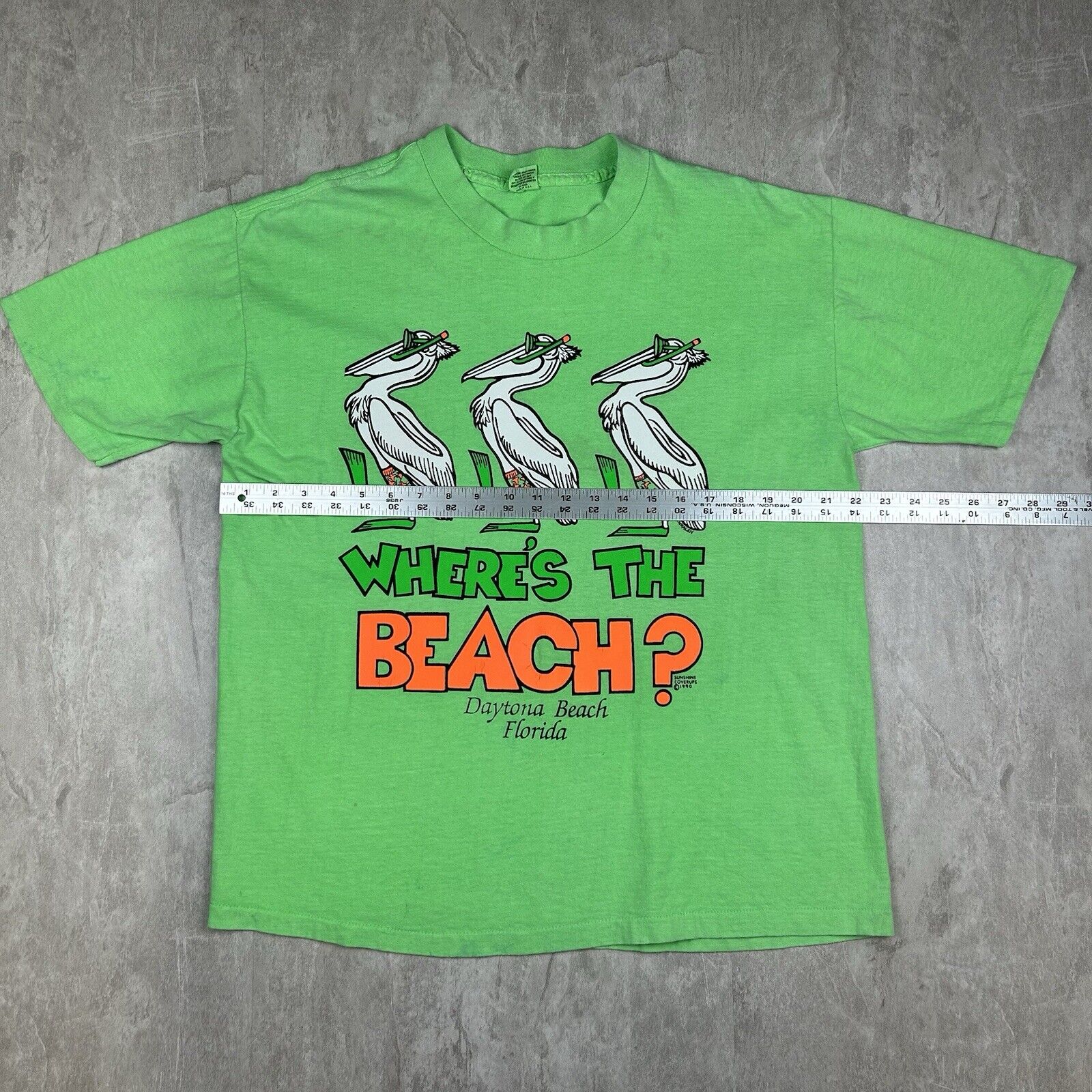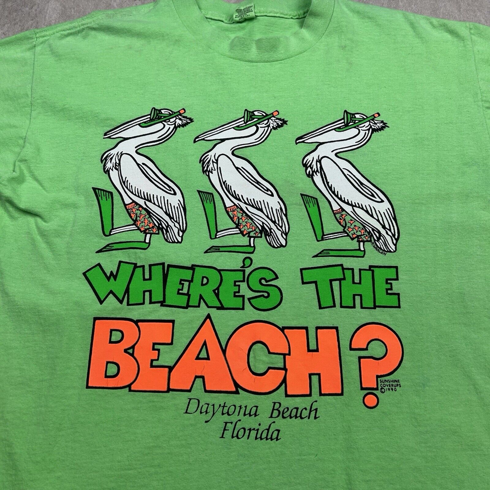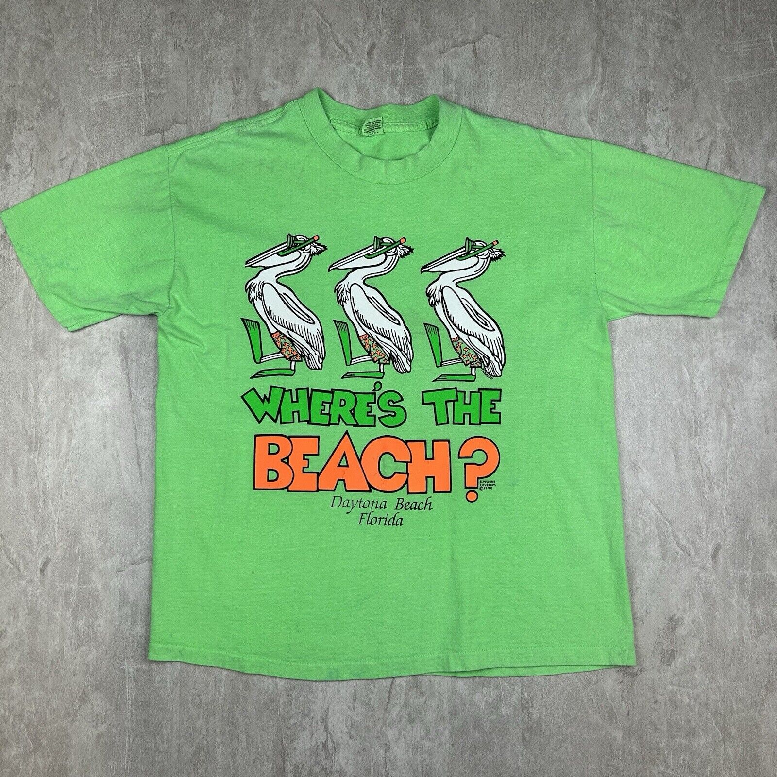 Vintage 1990 Daytona Beach FL “Where’s The Beach?” Green T-Shirt Men’s Size XL