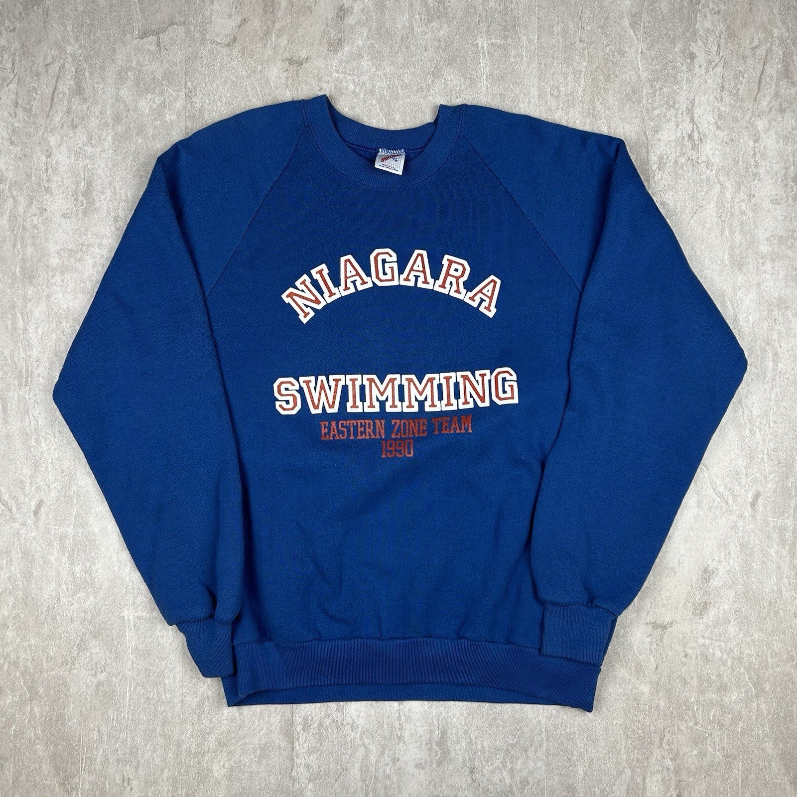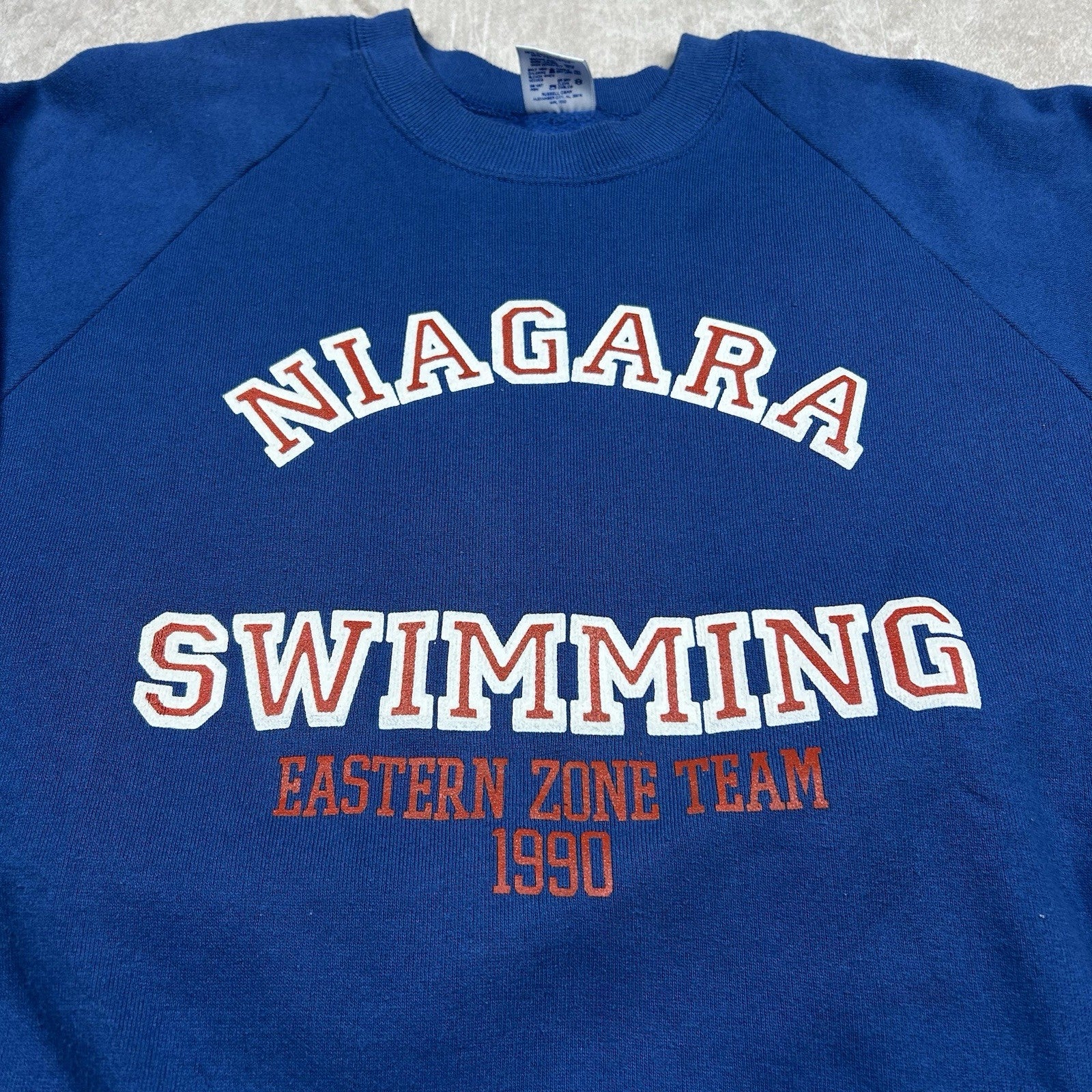 Vintage 1990 Niagara Swimming Eastern Team Crewneck Sweatshirt Blue Mens Size XL