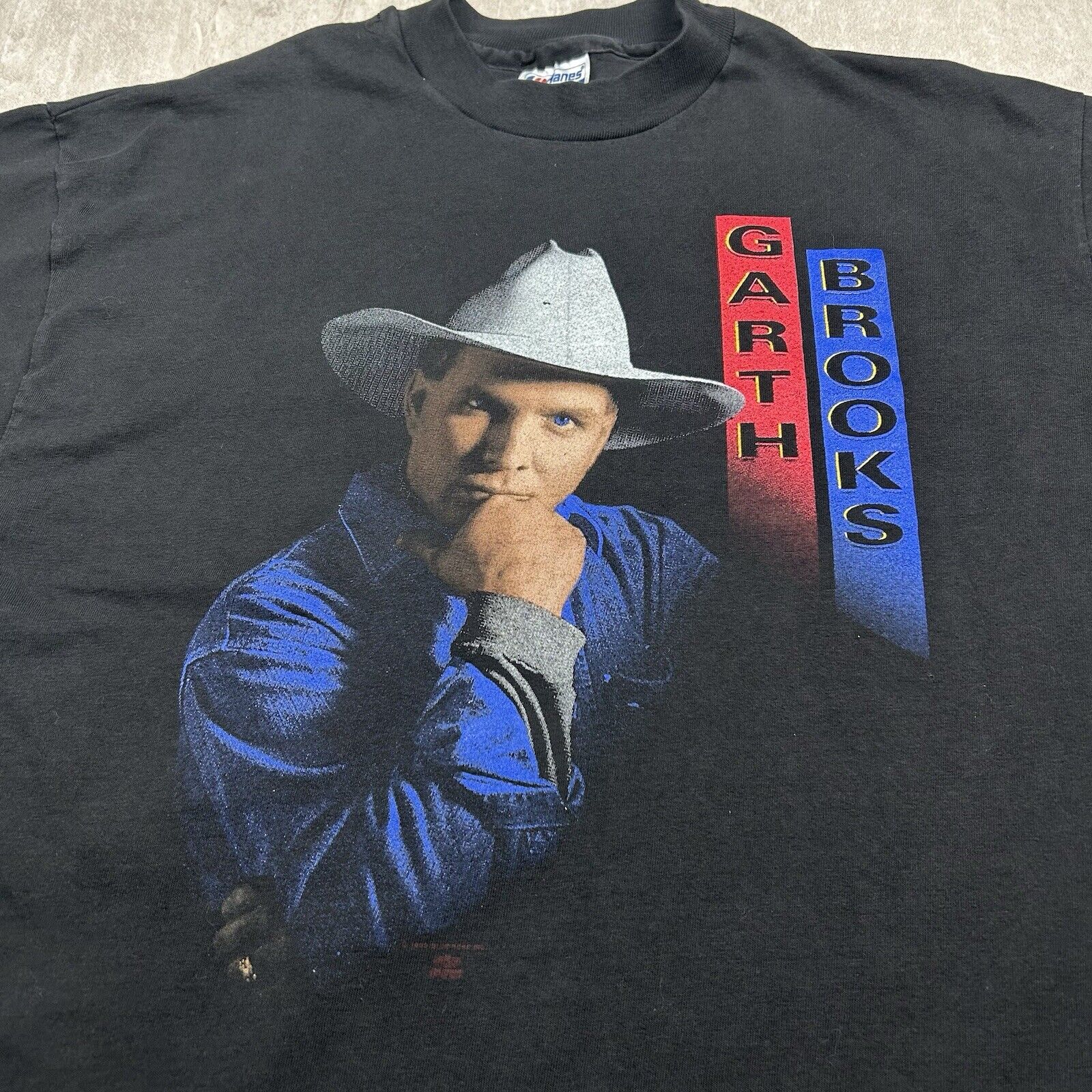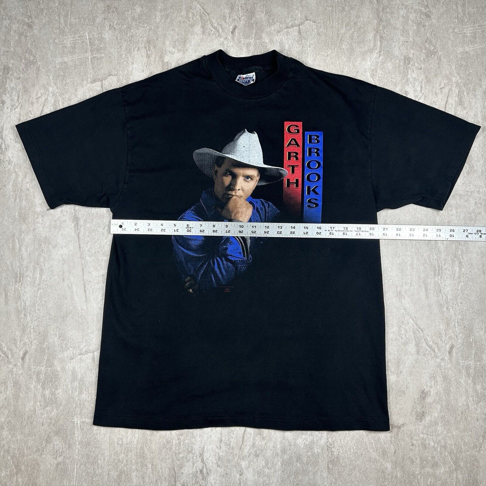 This vintage 1992 Garth Brooks country tour T-shirt in Men's Size L captures the energy of the legendary 90s tour. Made in the USA with a classic black design and bold graphics, it's a perfect piece for Garth Brooks fans and collectors of vintage country music apparel. A true gem from an iconic era in country music!