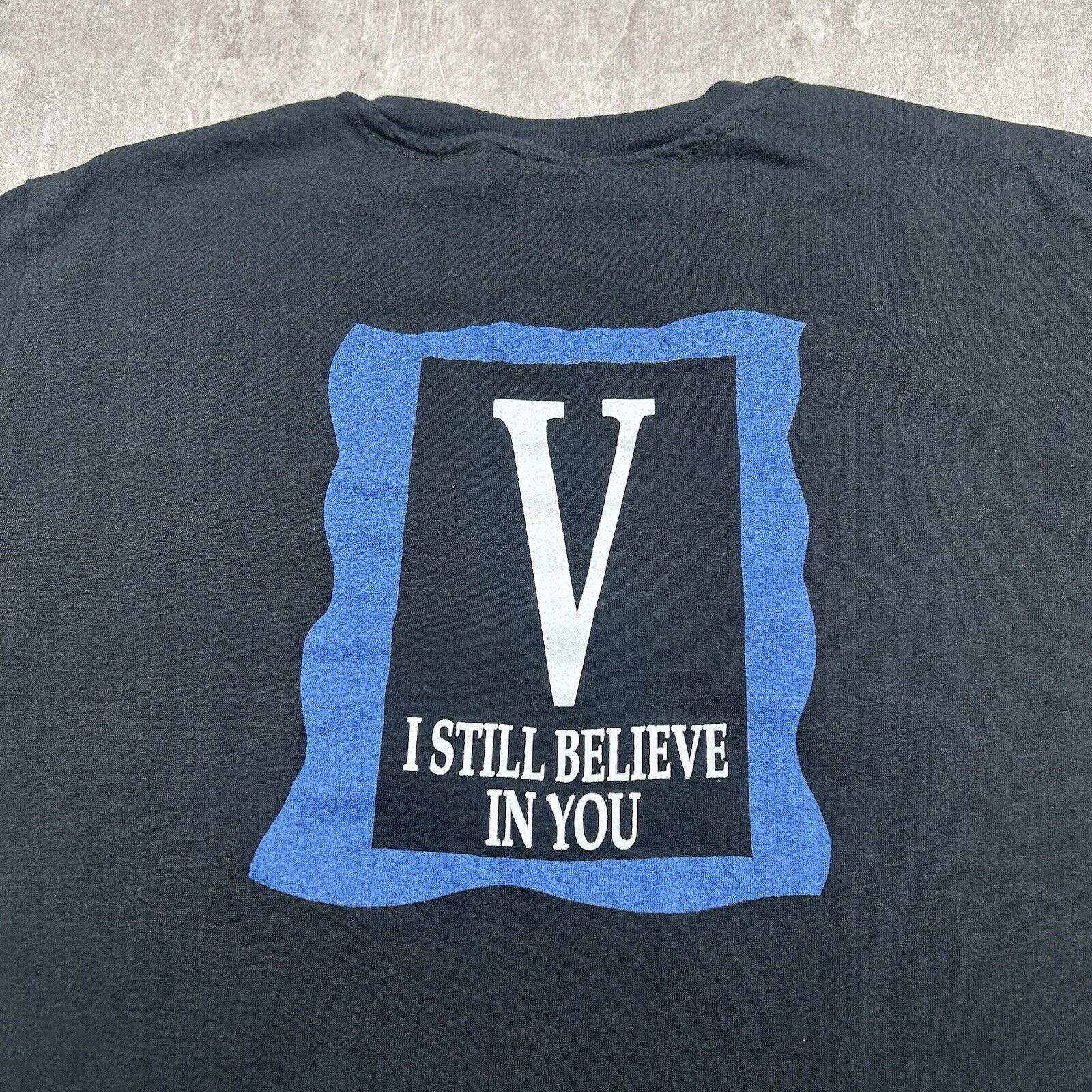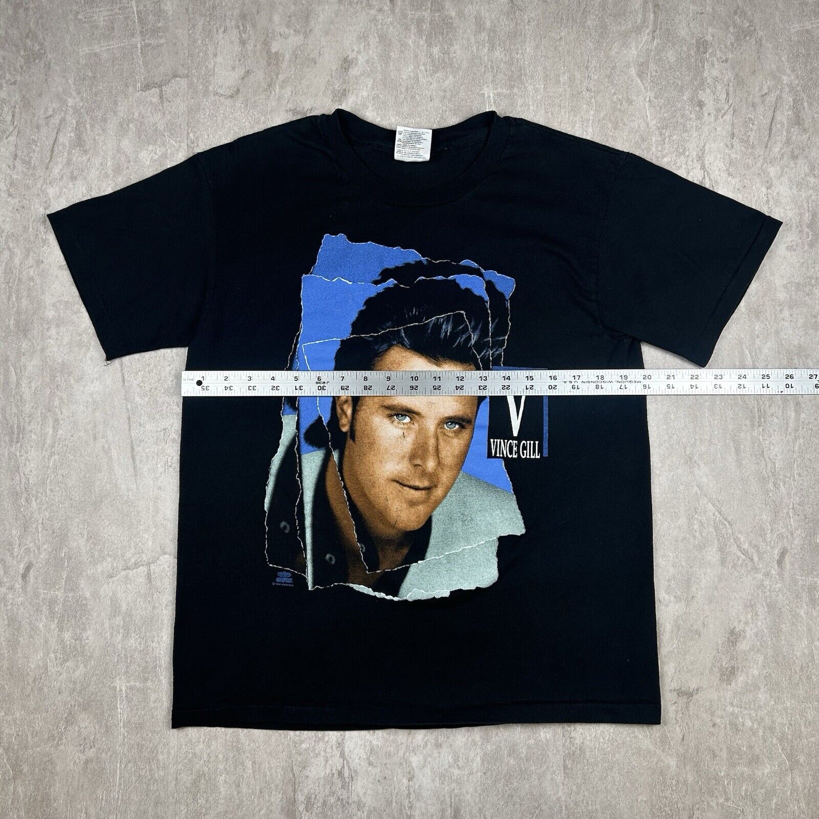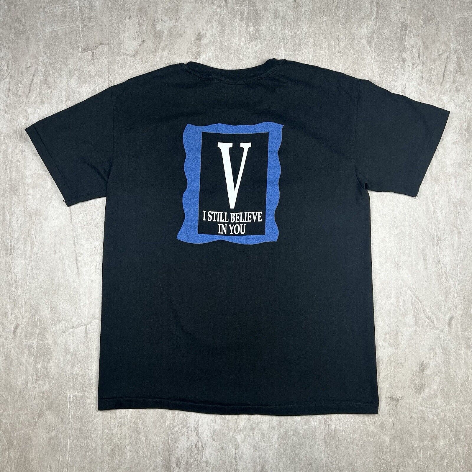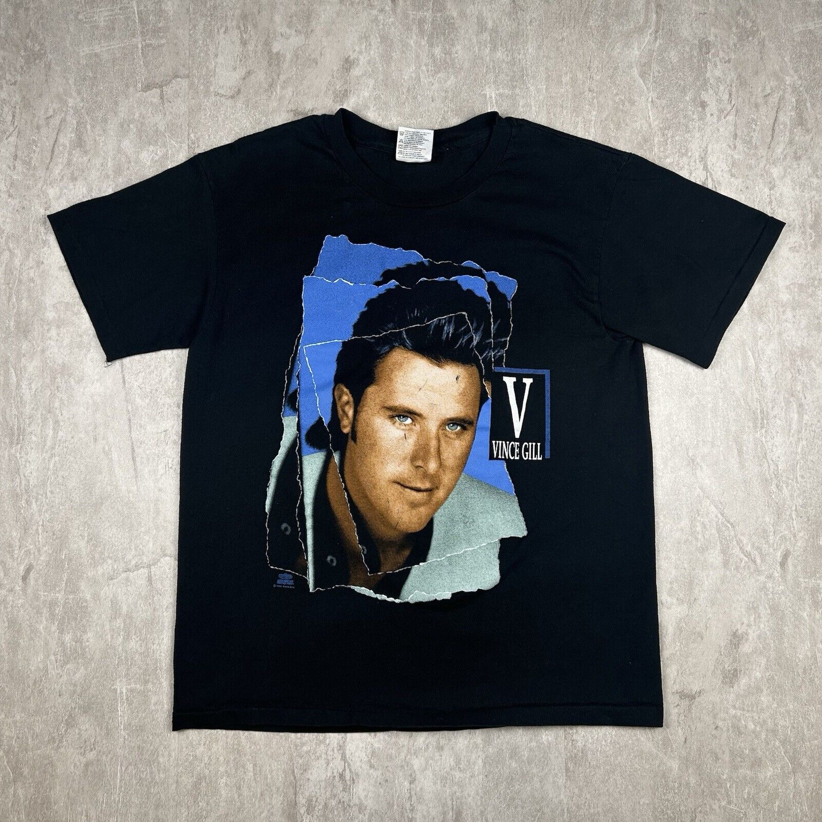 This vintage 1992 Vince Gill T-shirt in Men's Size L commemorates the "I Still Believe In You" tour, featuring concert graphics on a classic black tee. Ideal for fans of the country music star and collectors of 90s tour memorabilia, this shirt captures a memorable era in Vince Gill's career. A nostalgic piece for any country music enthusiast!