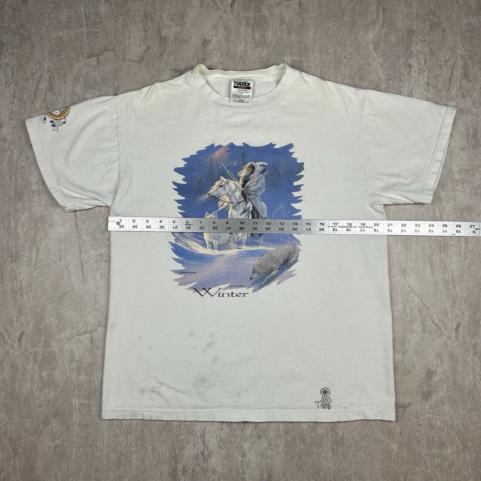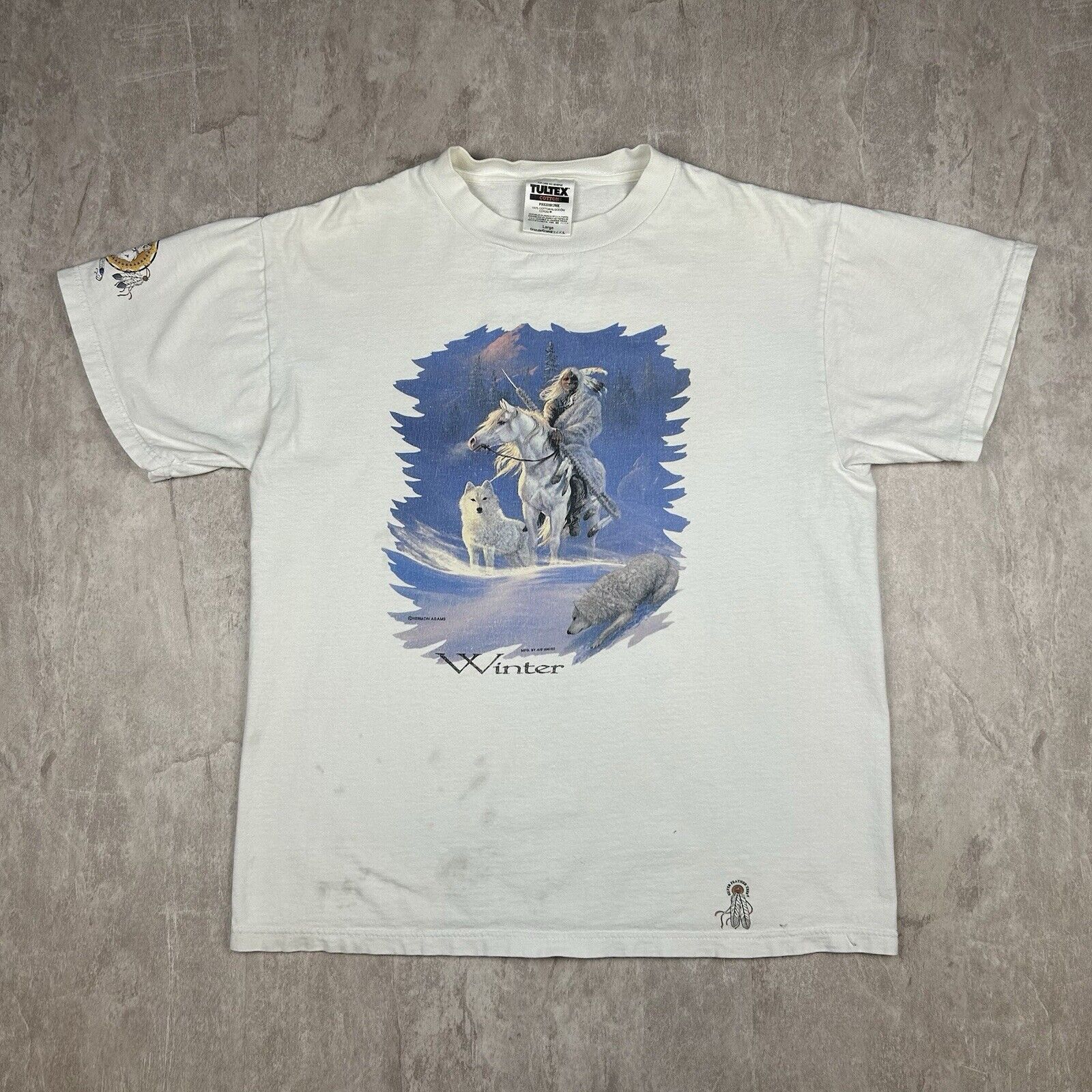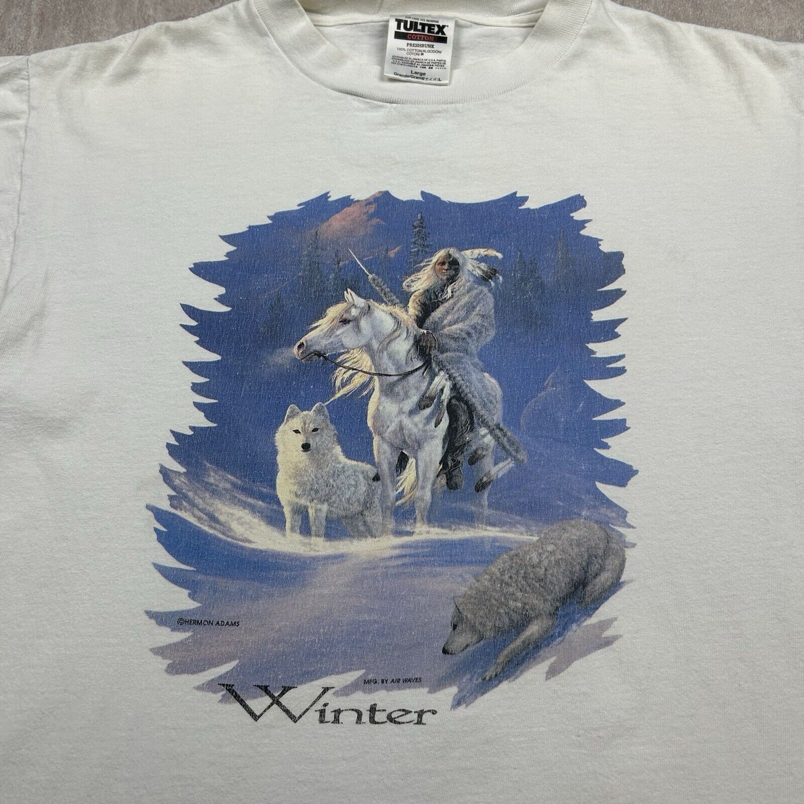 Vintage 1993 Hermon Adams Winter Print Limited Edition White T-Shirt Mens Size L