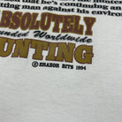 This vintage 1994 "Absolute Hunting" tee captures the thrill of the chase with bold outdoor graphics and retro charm. White cotton with single-stitch detail, in classic Men's Size L.