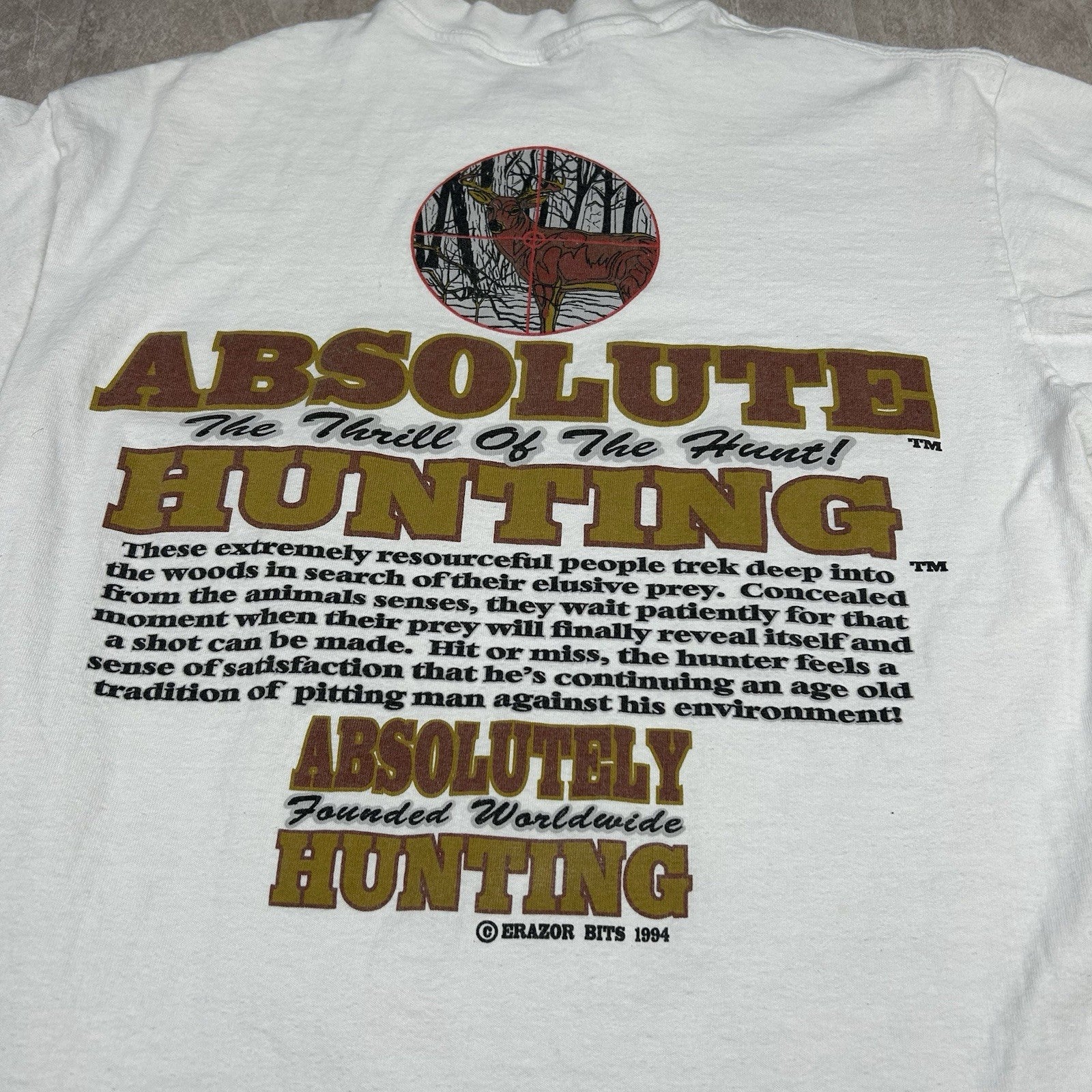 Vintage 1994 Absolute Hunting Thrill Of The Hunt White T-Shirt Men’s Size L
