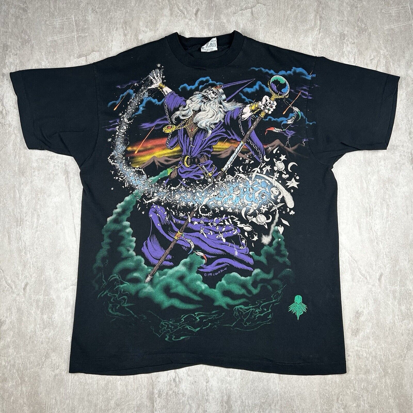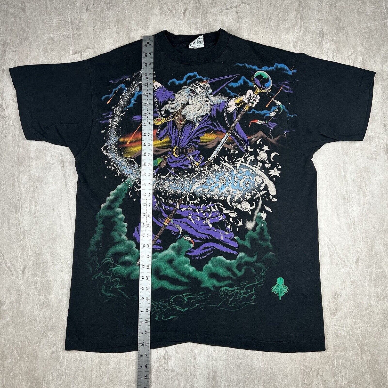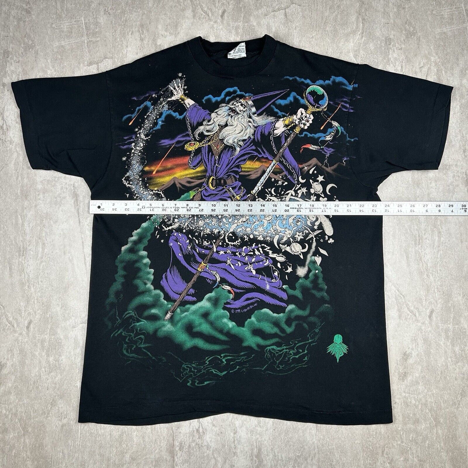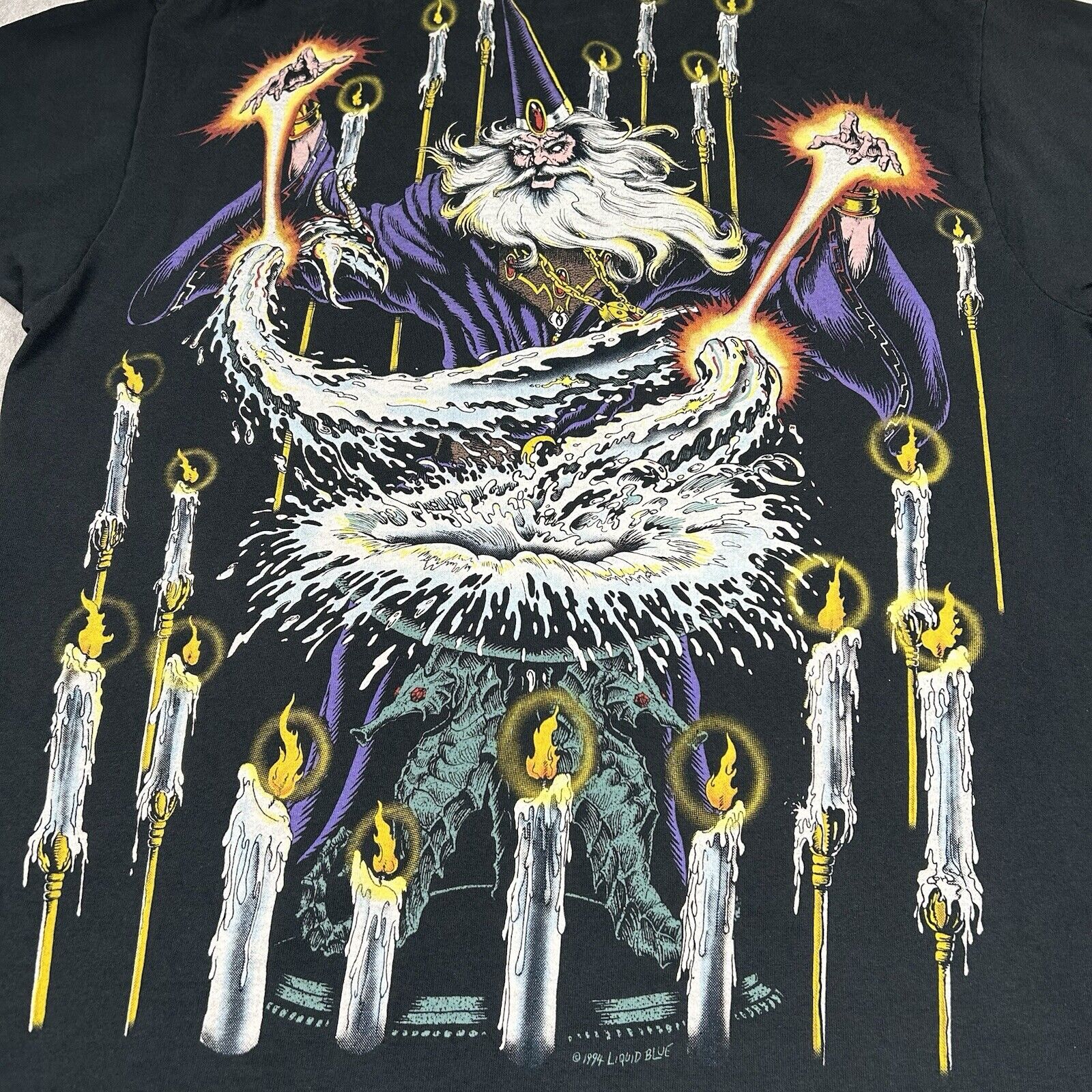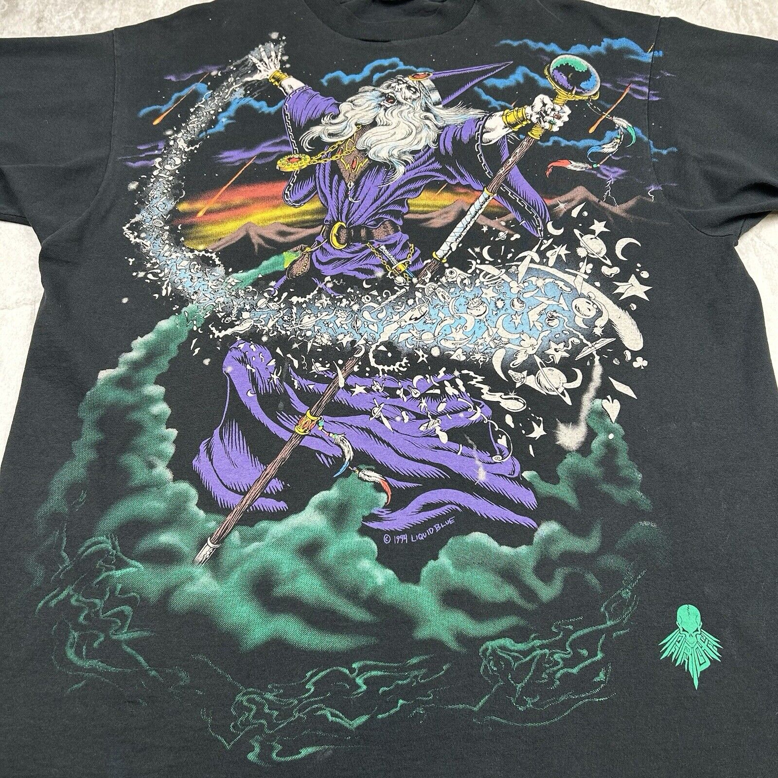 Vintage 1994 Liquid Blue Wizard T-Shirt AOP Double Sided Graphic Men’s Size XL
