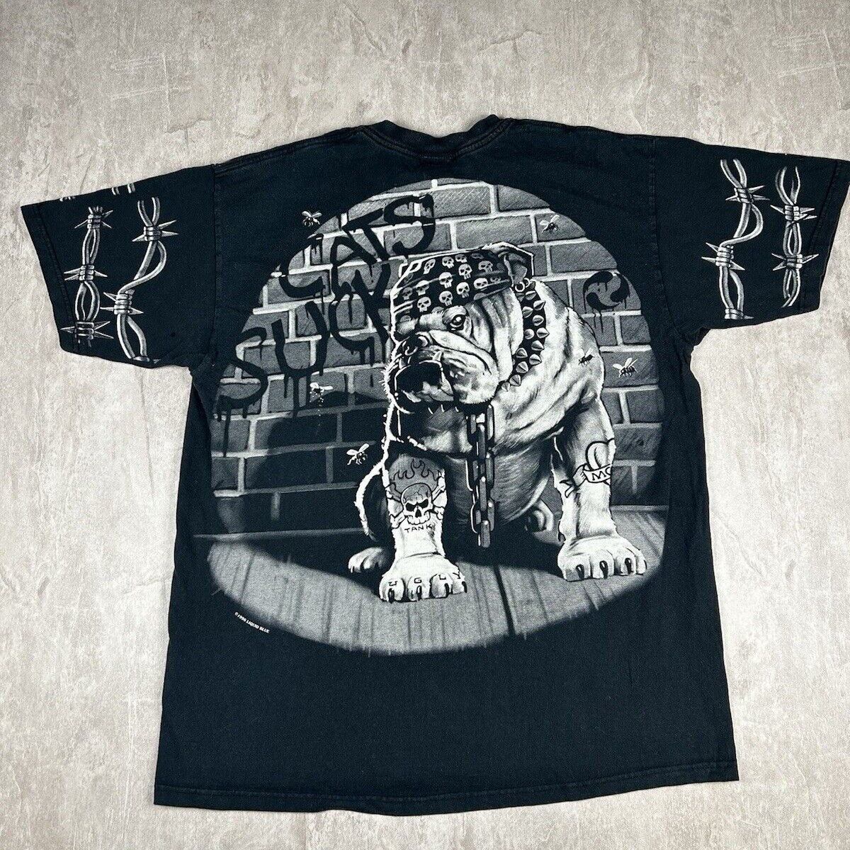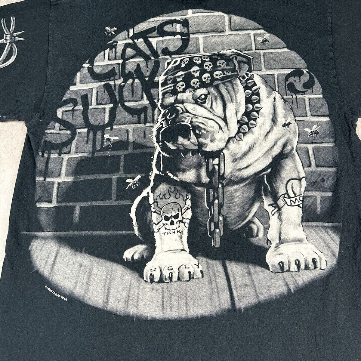 Vintage 1996 Liquid Blue Black T-Shirt Bull Dog Gangster Cats Suck Men’s Size XL