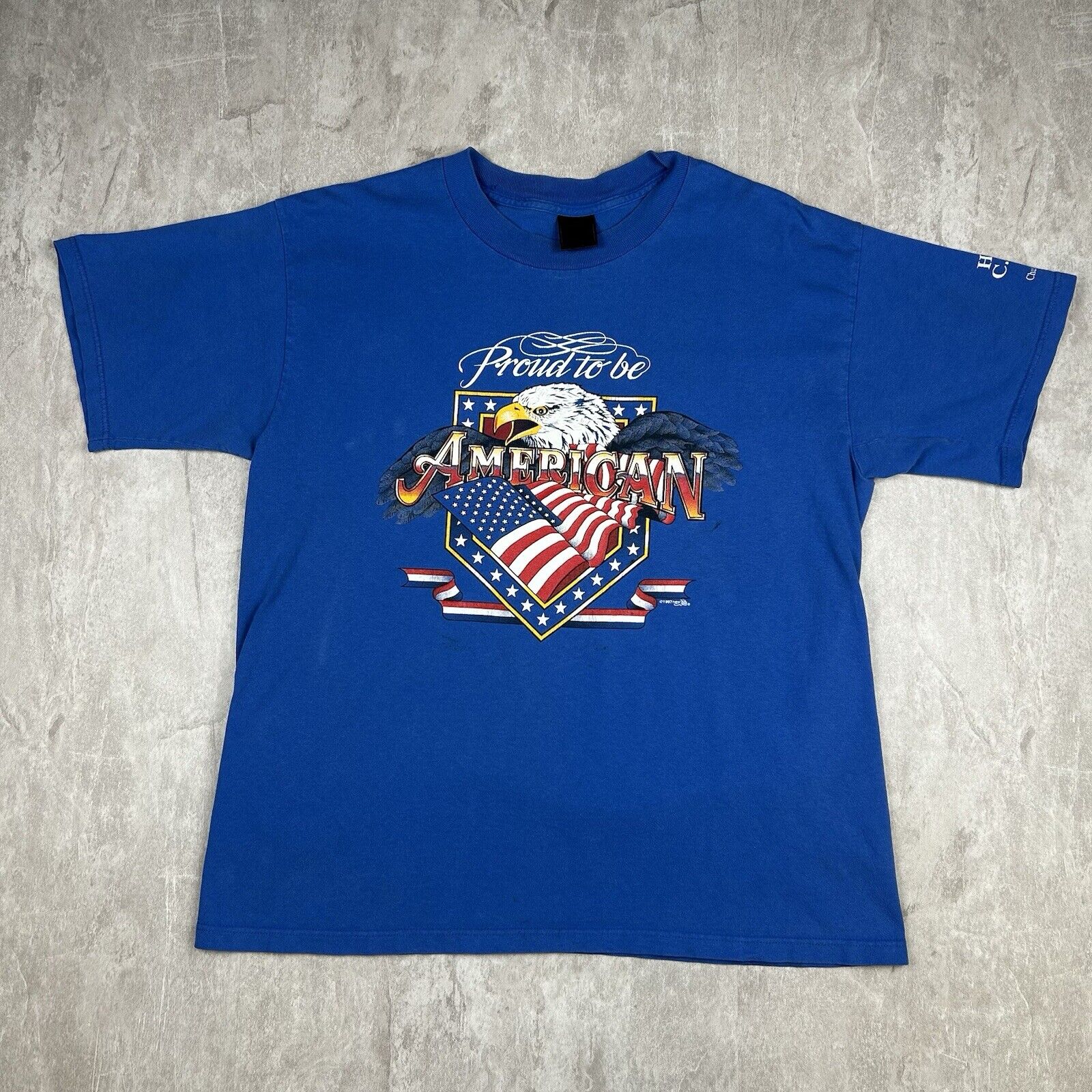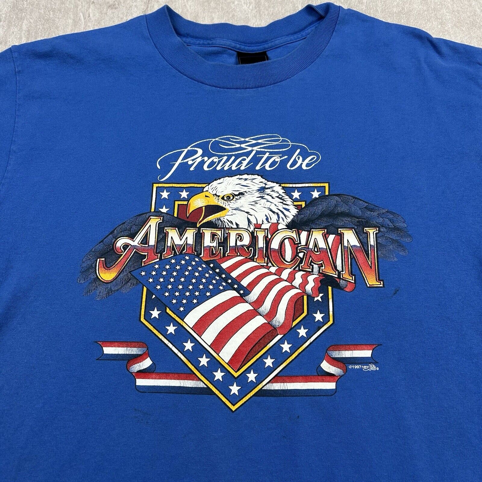 Vintage 1997 Proud to be American Eagle Flag T-Shirt Blue Men’s Size Unknown