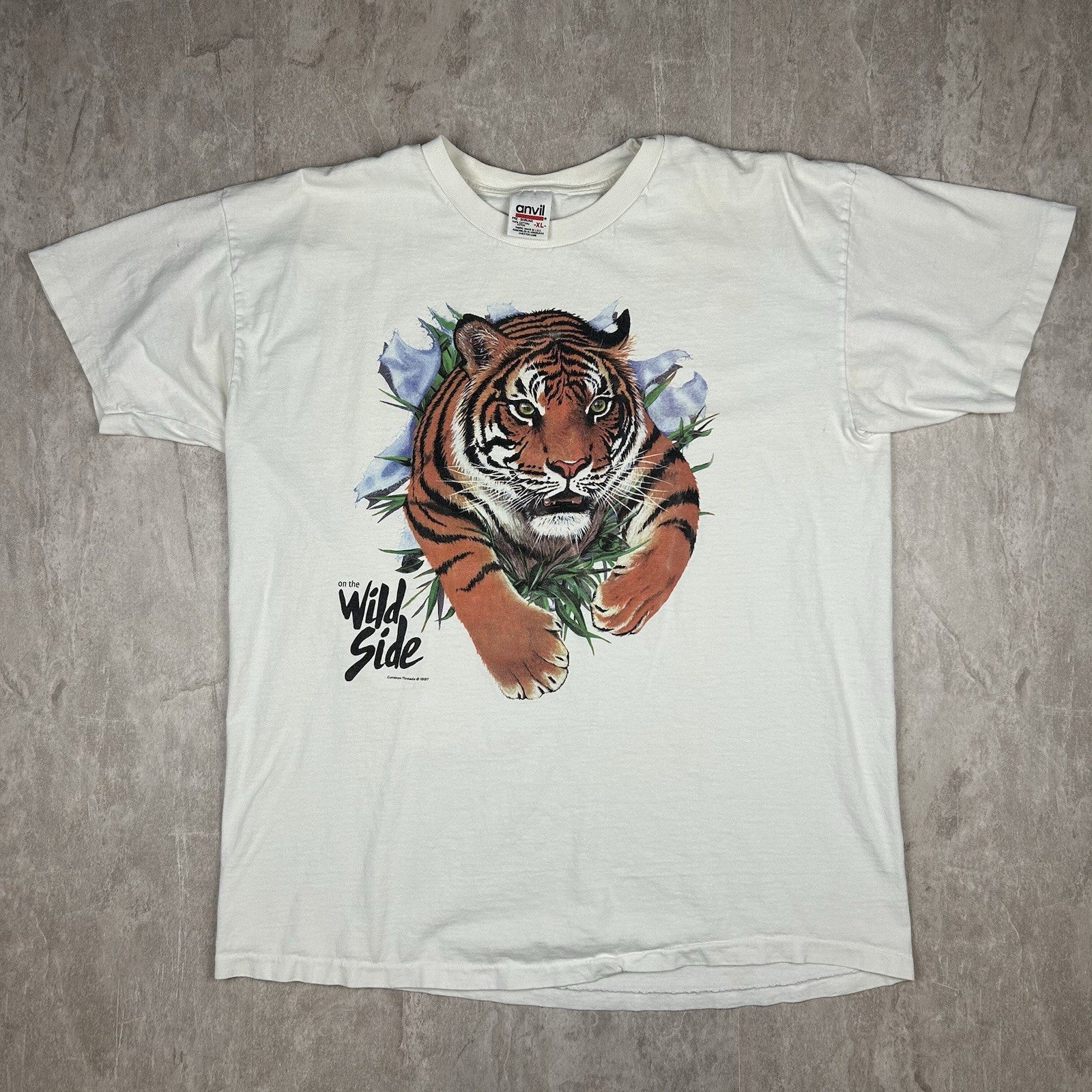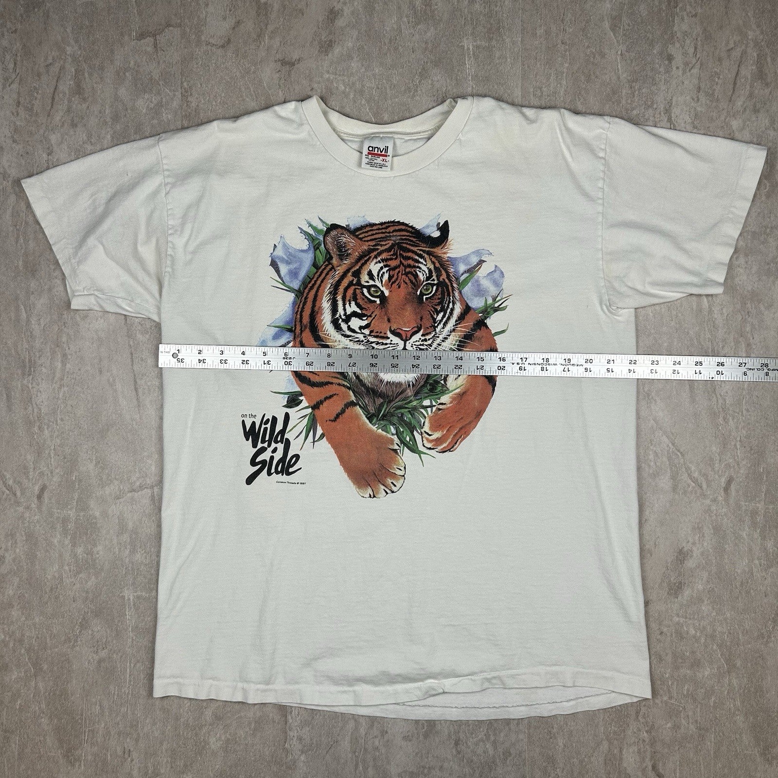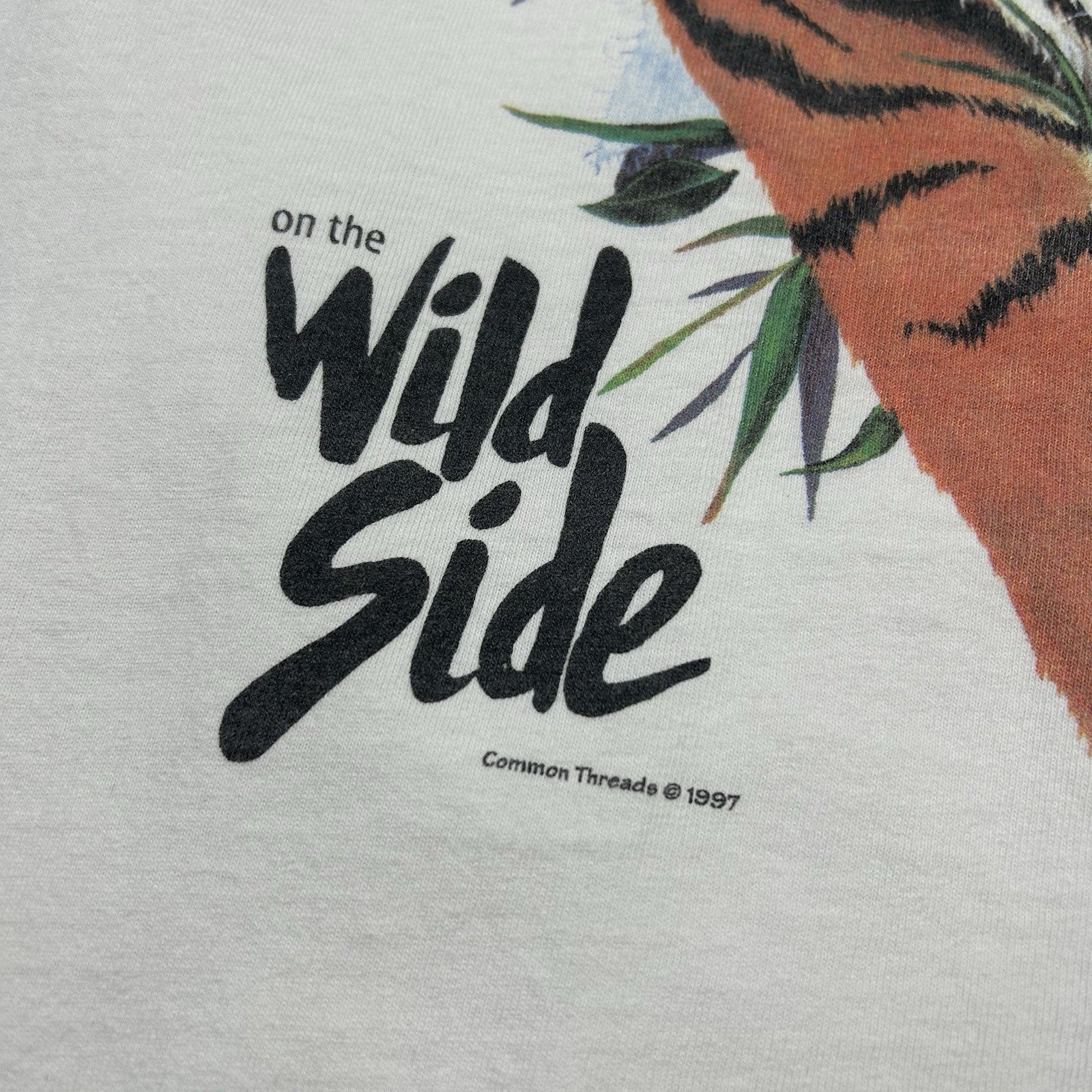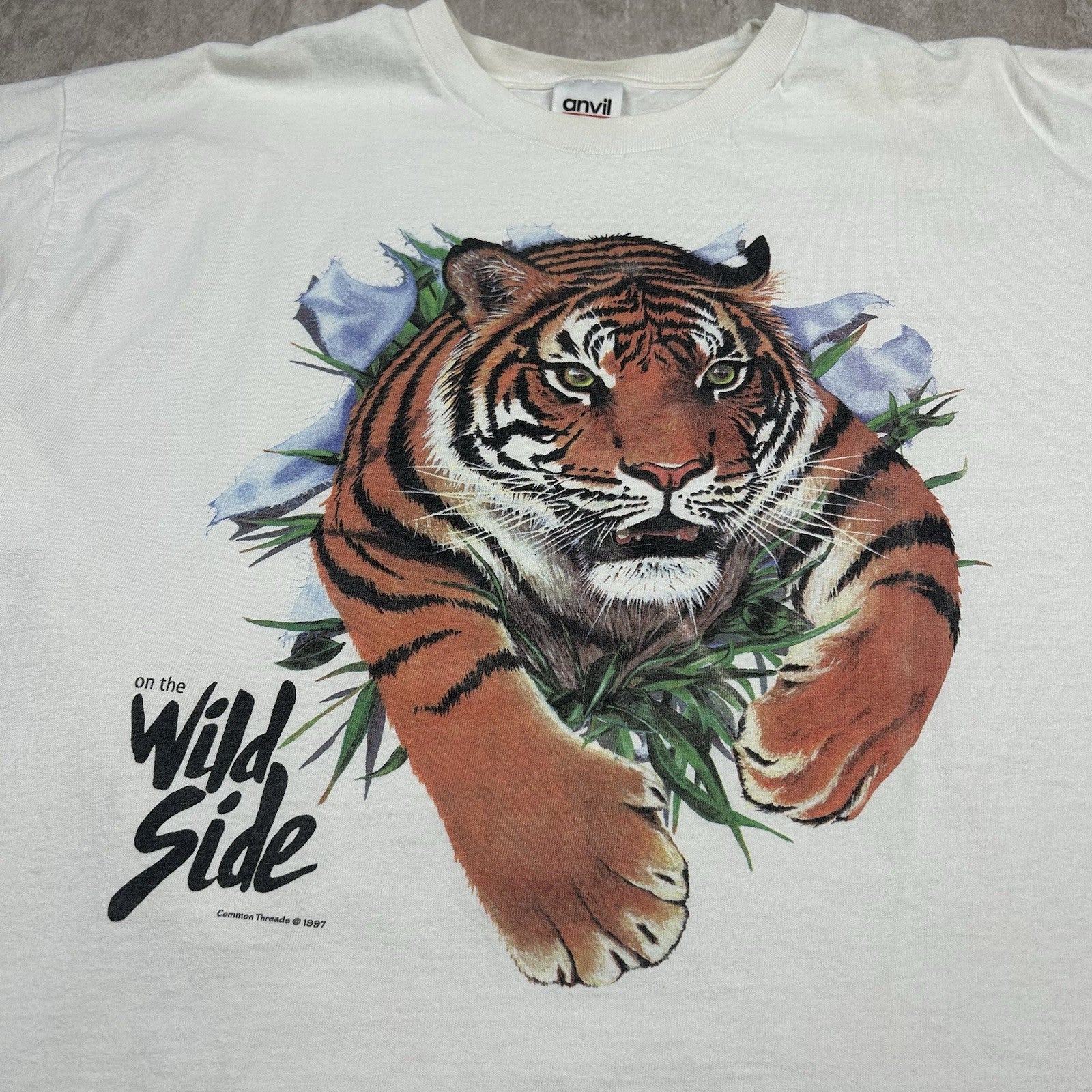 Vintage 1997 Tiger Face Graphic White T-Shirt Common Threads Men’s Size XL
