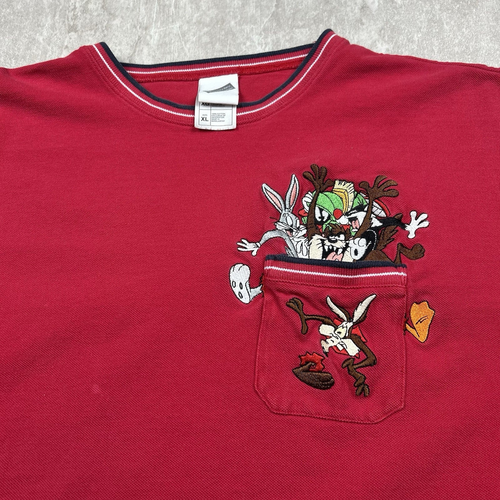 Vintage 2000 Looney Tunes Embroidered Pocket T-Shirt Taz Bugs Men’s Size XL
