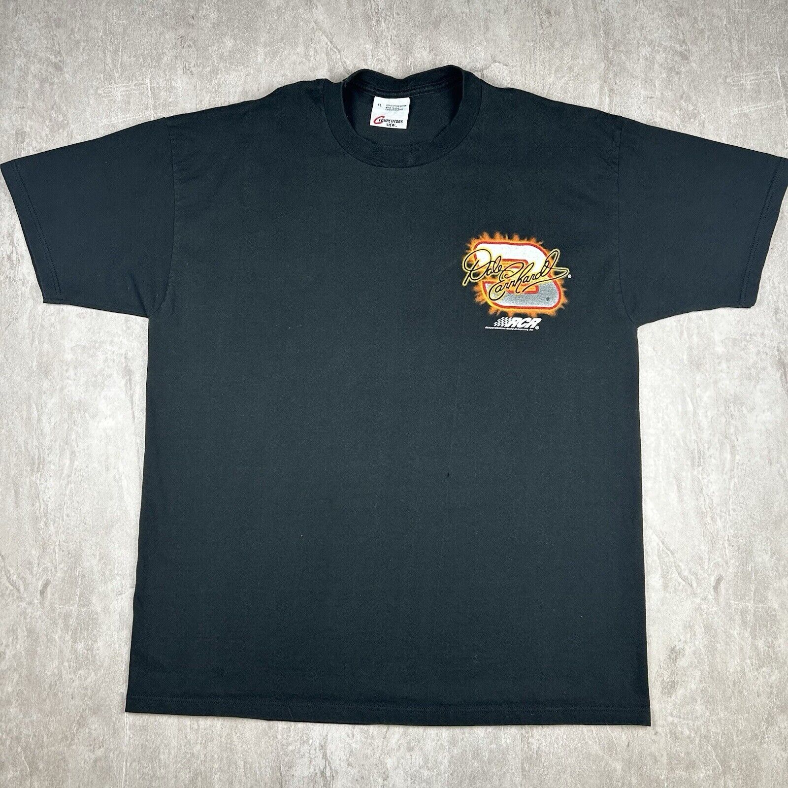 This vintage 2001 Dale Earnhardt Man In Black NASCAR T-shirt in Men's Size XL pays tribute to the legendary #3 driver with a bold graphic design. Perfect for fans of "The Intimidator," this tee captures the spirit of classic NASCAR and is a must-have for any motorsport collector. A true piece of racing history!