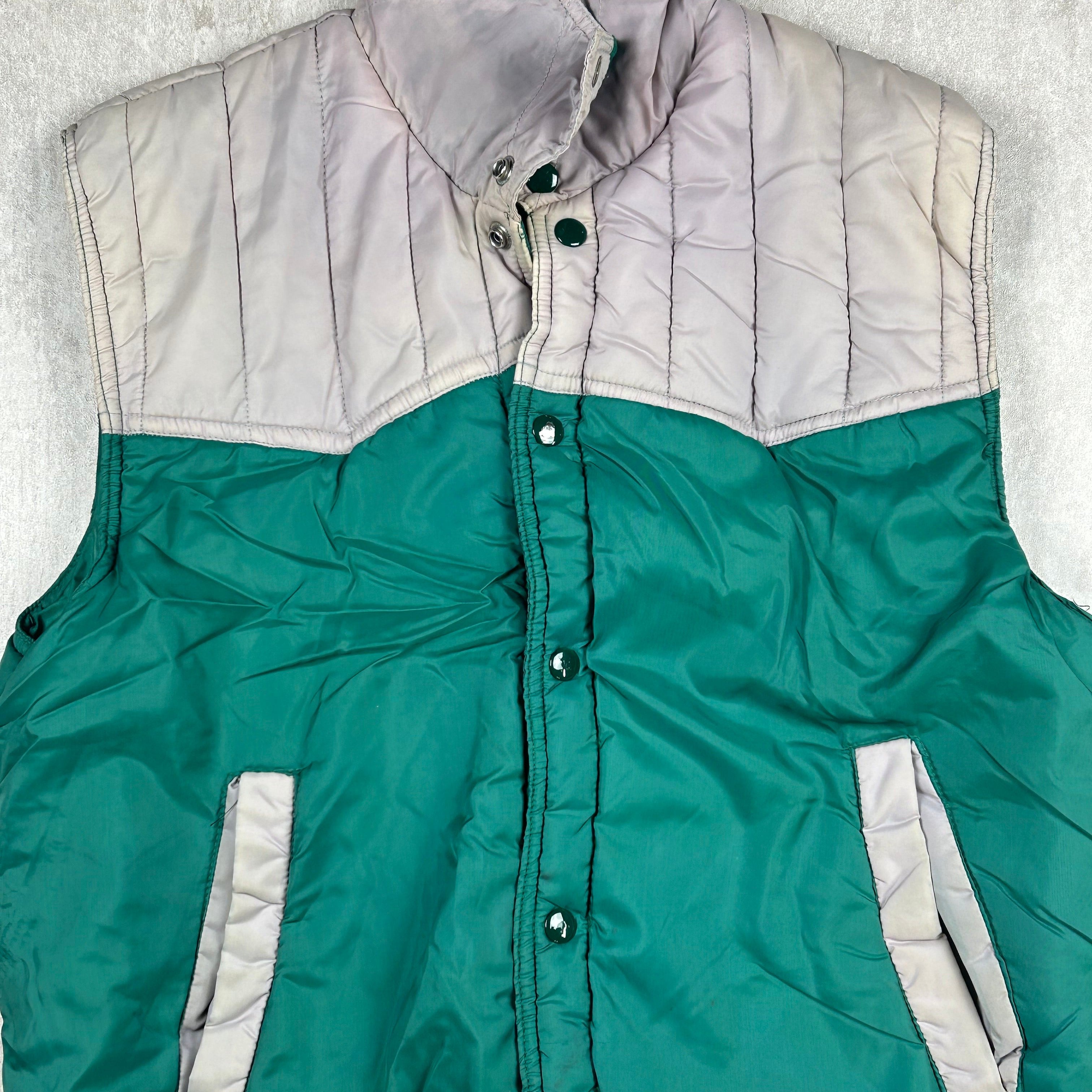 Vintage 70s Fruit of the Loom Puff Puffer Ski Snow Vest Coat Green Men’s Size M