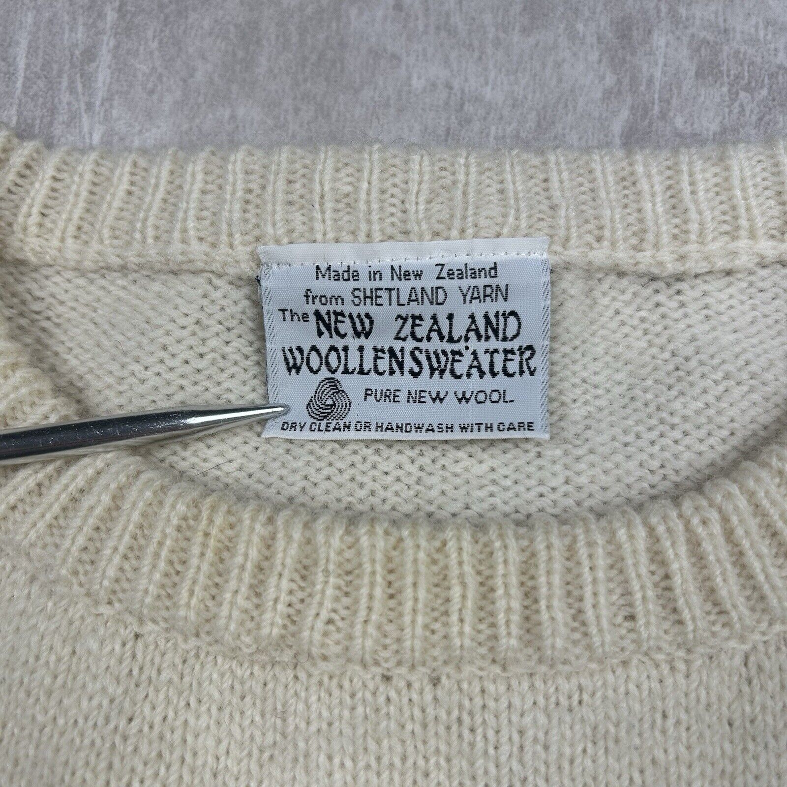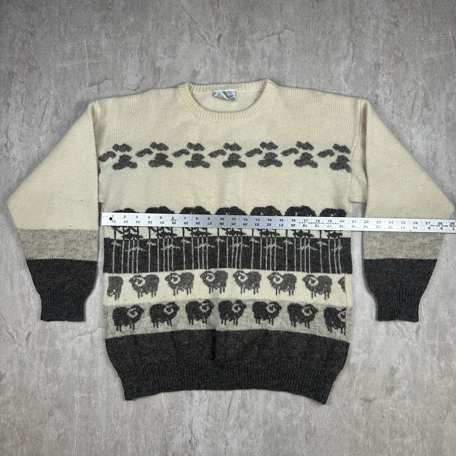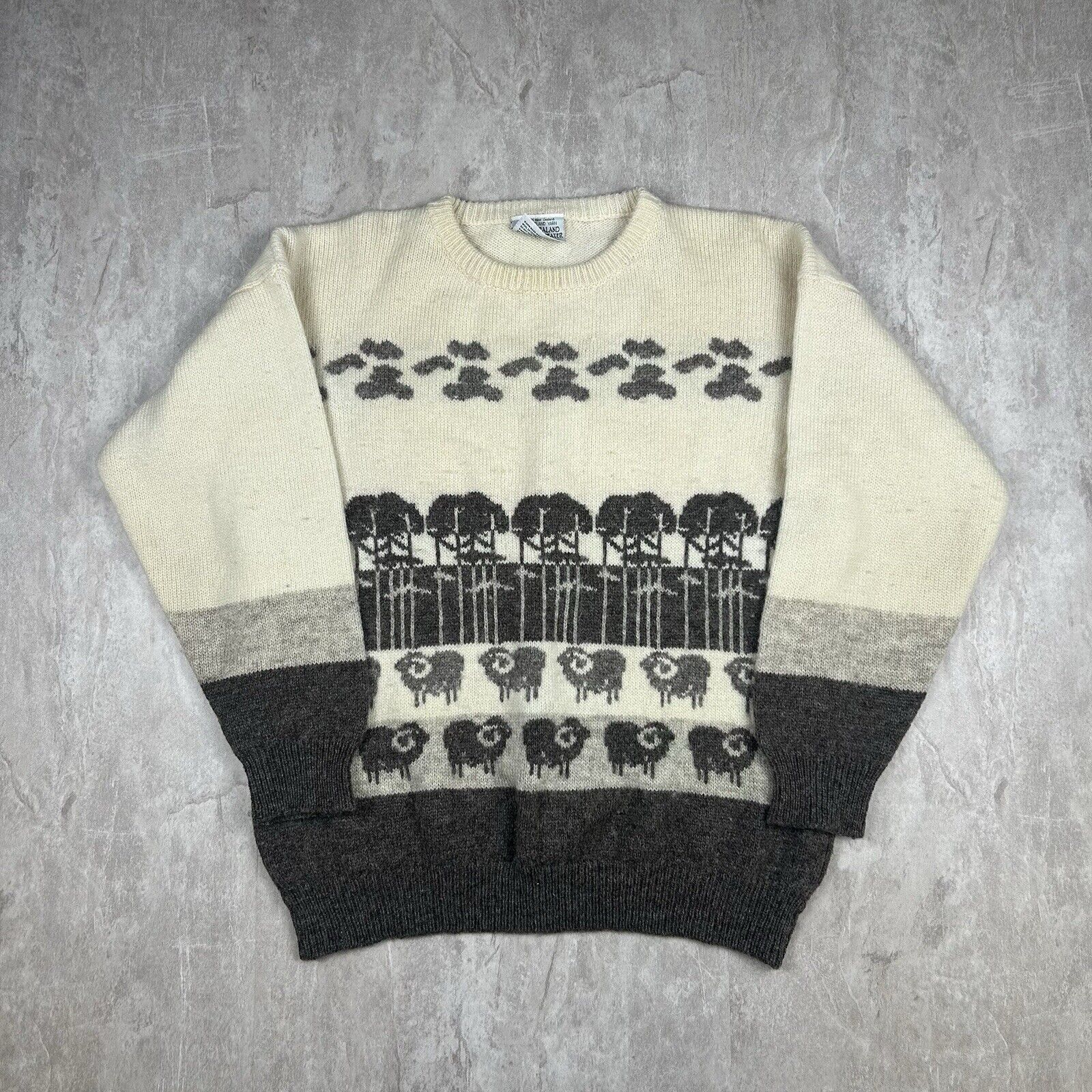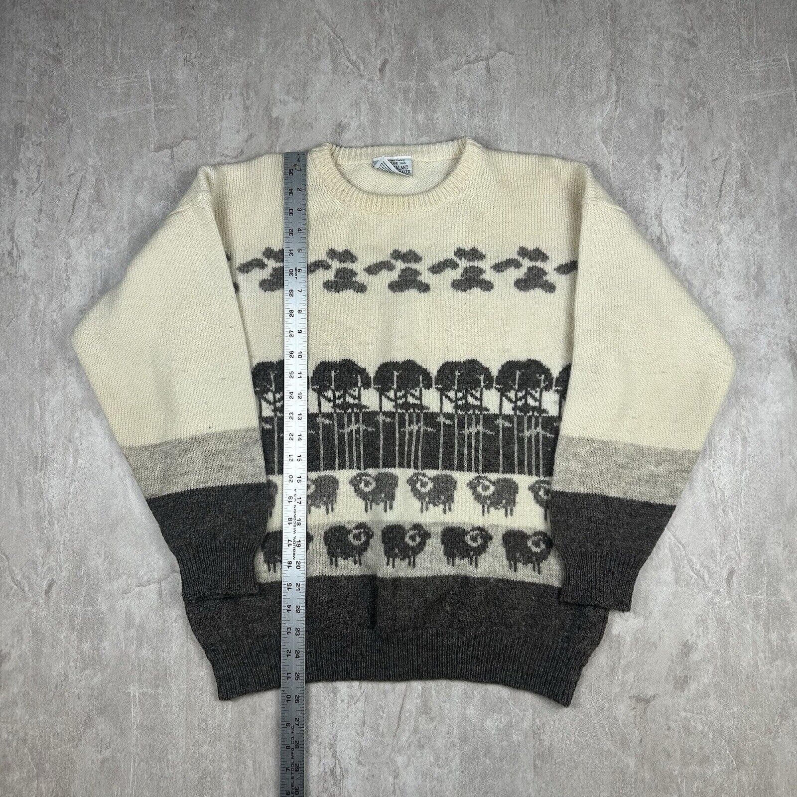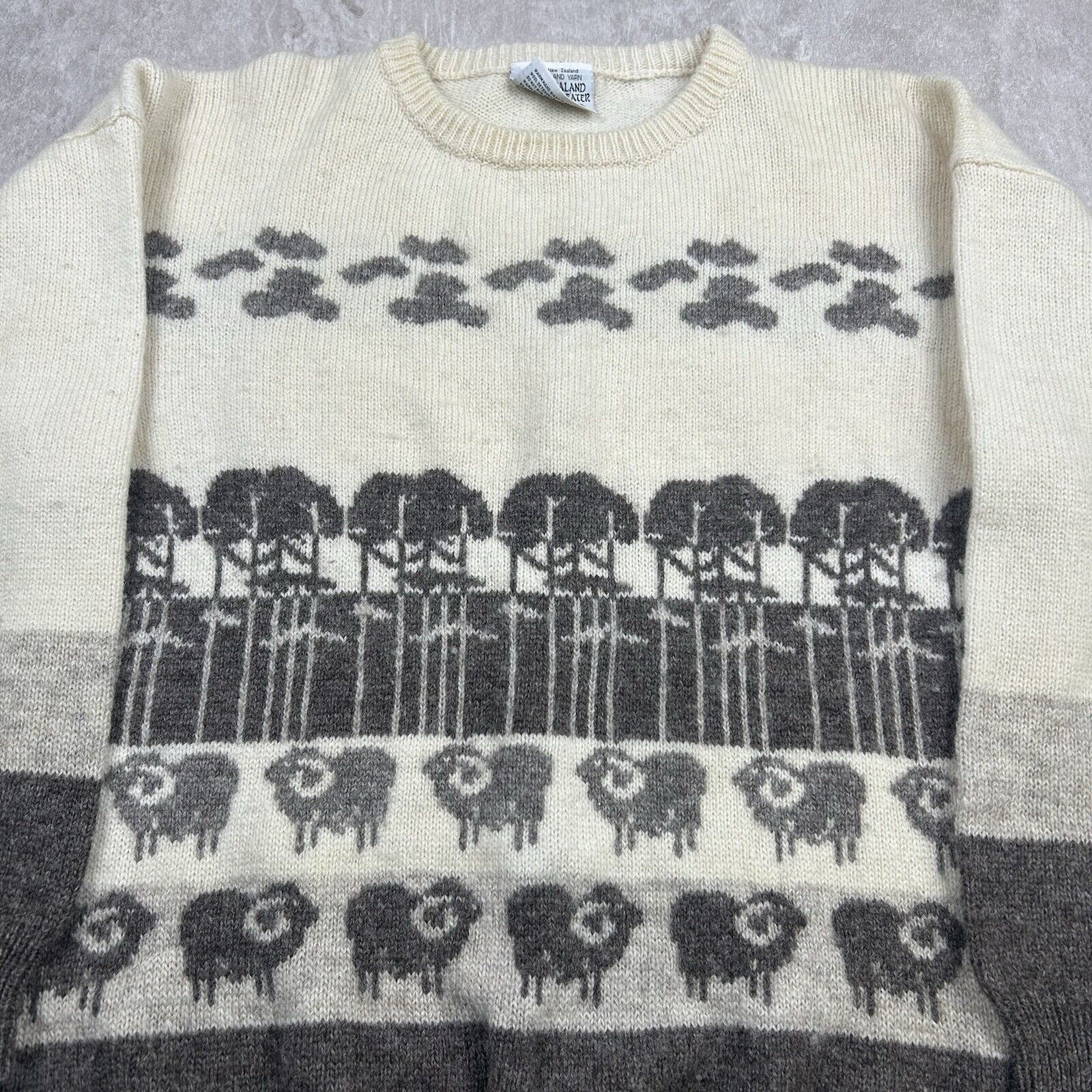 Vintage 70s New Zealand Lamb Sheep Sweater White Wool Women’s Size M