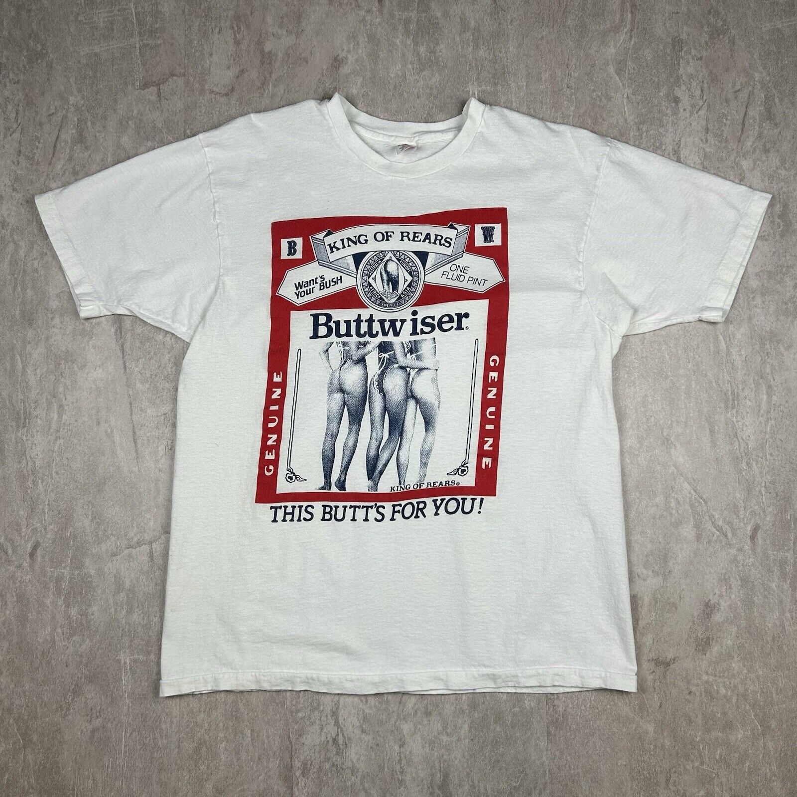 Vintage 80s Budweiser Bud Buttwiser King of Rears White T-Shirt Men’s Size XL