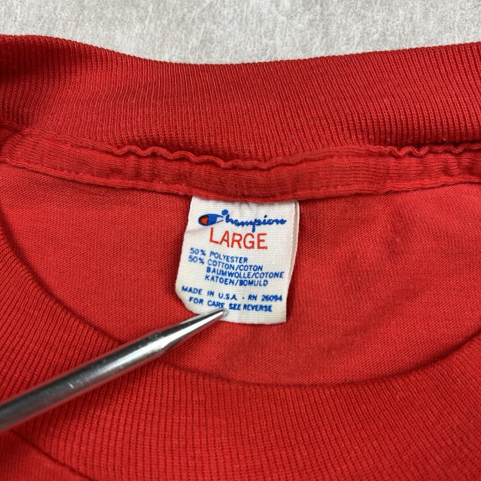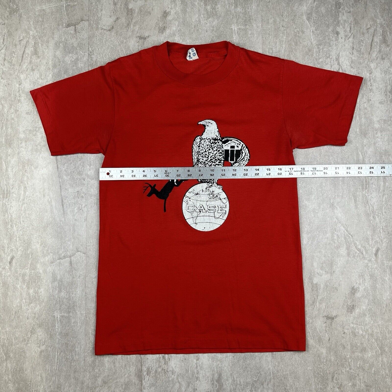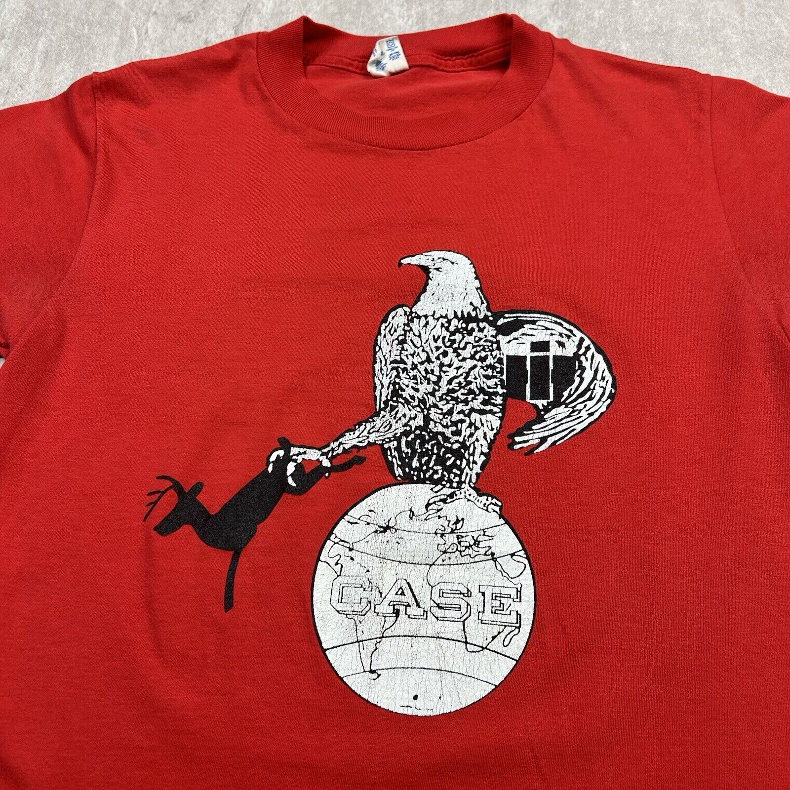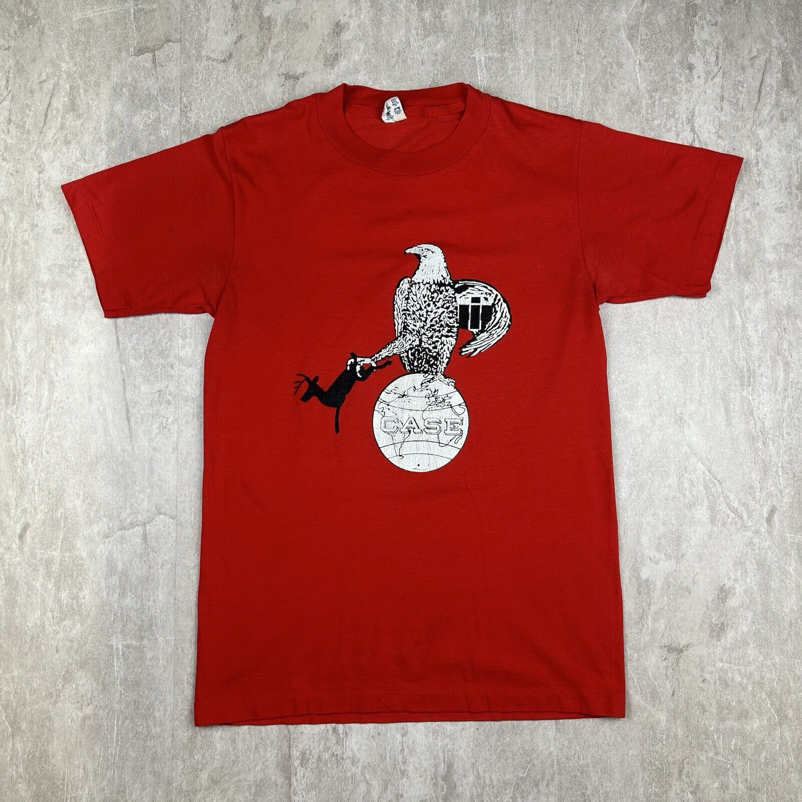 This Vintage 80s Champion T-Shirt in size L features a unique Army/Military CASE Eagle and Reindeer graphic. Made in the USA with classic Champion quality, it's a standout piece for vintage military and Americana enthusiasts.