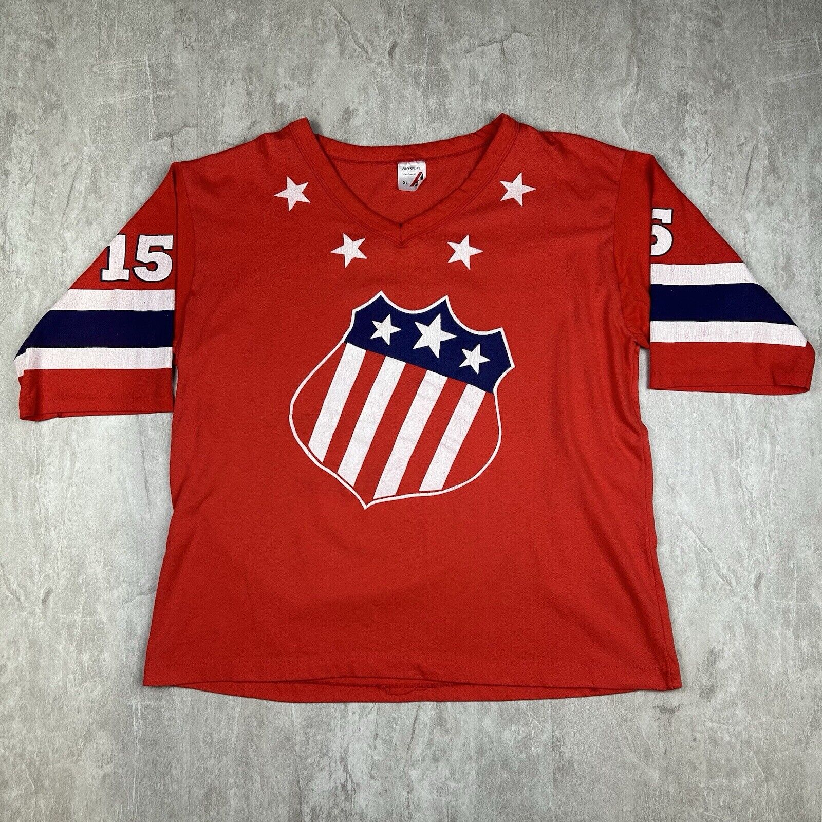 This Vintage 80s Rochester Americans Shirt in size XL features the classic red design with the iconic AHL hockey team logo. A perfect piece for fans of the Rochester Americans or collectors of vintage hockey memorabilia.