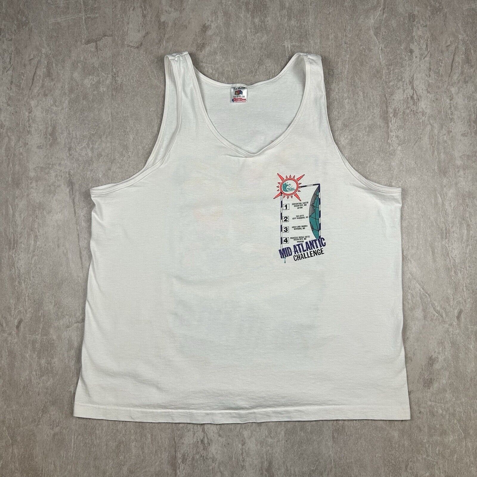 This vintage 90s 1993 Kawasaki Mid Atlantic Challenge tank top in Men's Size XL features bold graphics commemorating the Maryland event. Made from soft cotton, this classic tank offers a relaxed fit perfect for summer or motorsport enthusiasts. A great find for fans of vintage racing apparel and Kawasaki memorabilia!