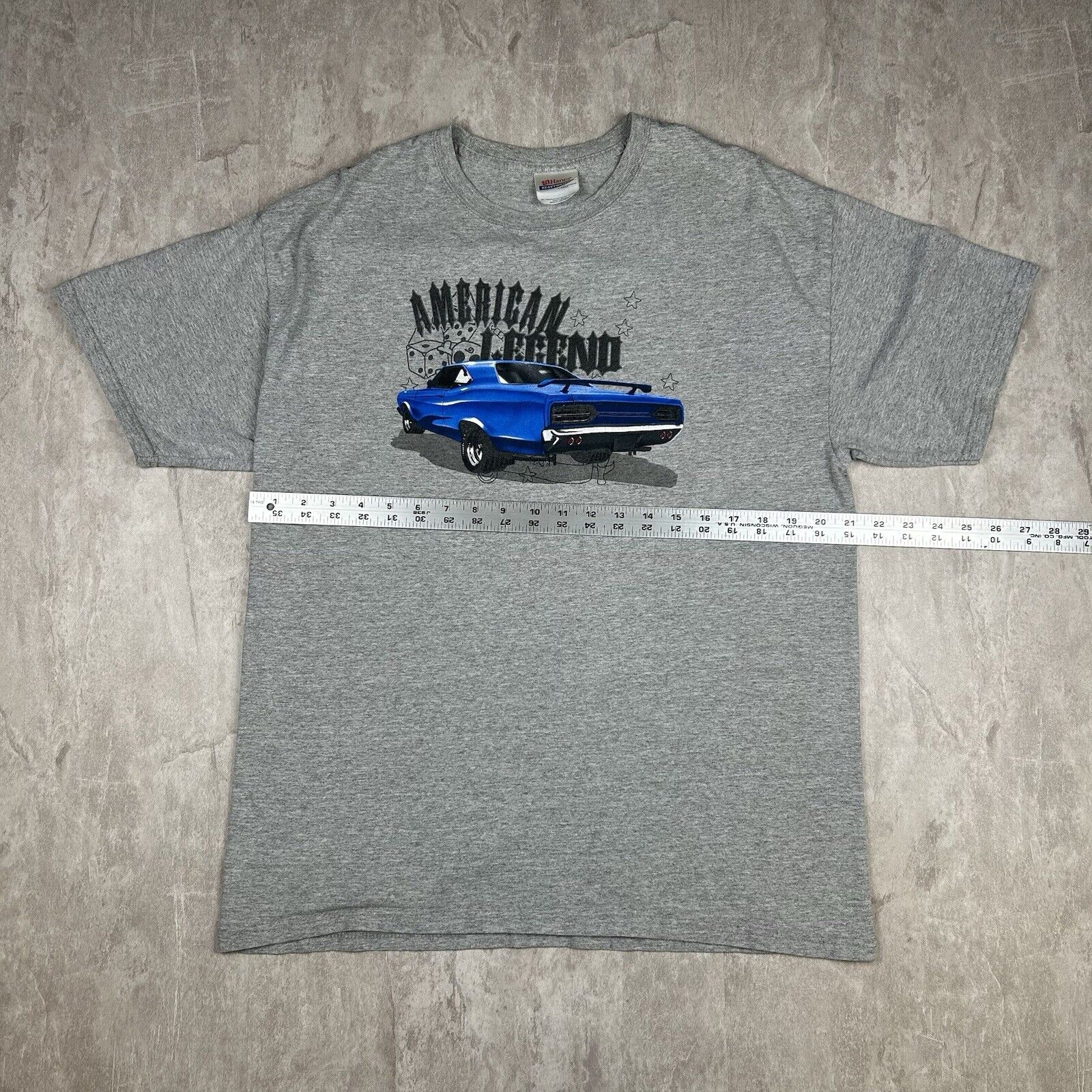 Fuel your passion for racing with this Vintage 90s American Legend Car Racing T-Shirt. In gray and made by Hanes Heavy, this men's size L tee captures the spirit of classic American cars, making it a perfect addition for car enthusiasts and lovers of vintage motorsports.
