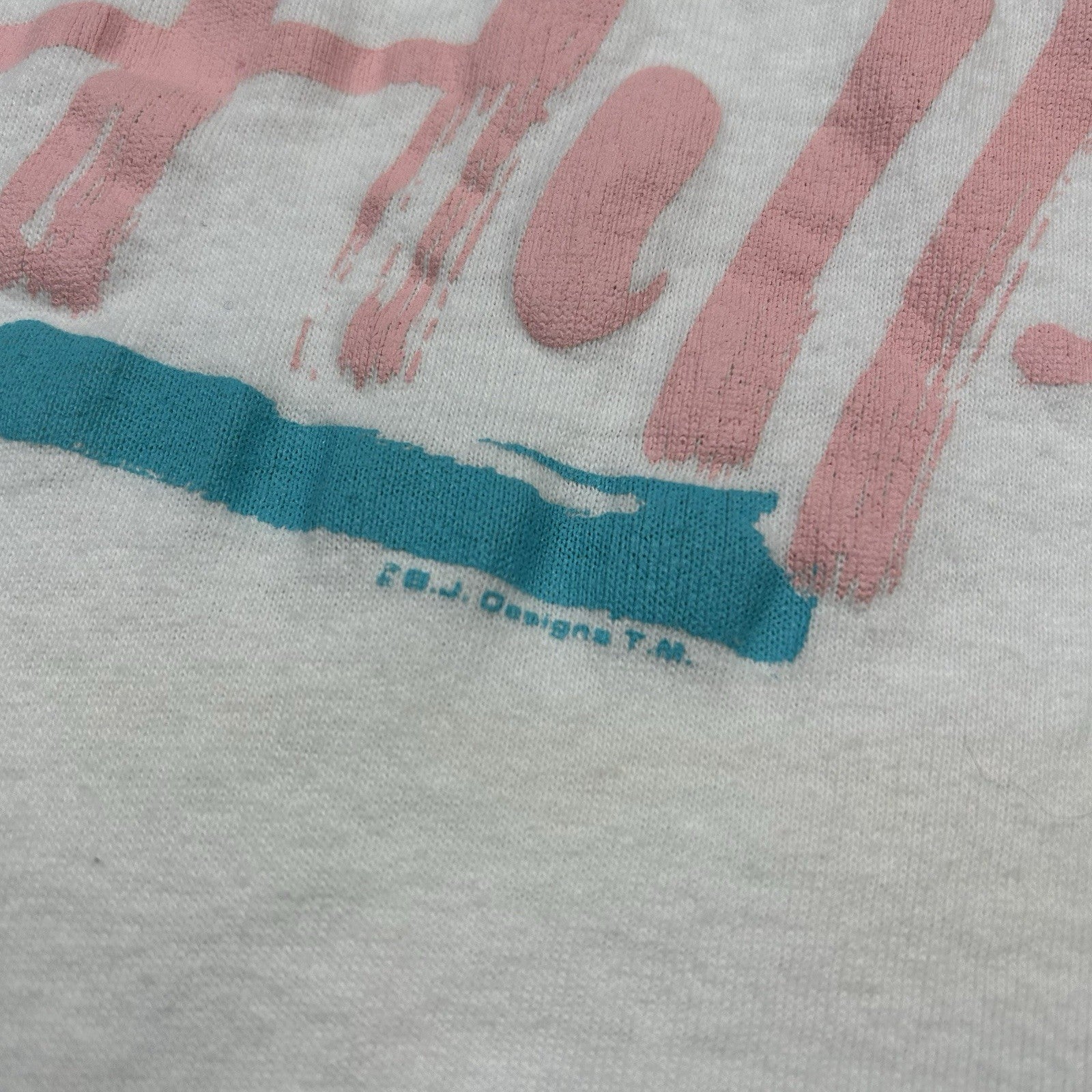 Channel laid-back California vibes with this vintage 90s Beverly Hills tee by BJ Designs. Made on a classic Russell Athletic blank, it features pastel graphic charm and soft-worn comfort. Women's size M.