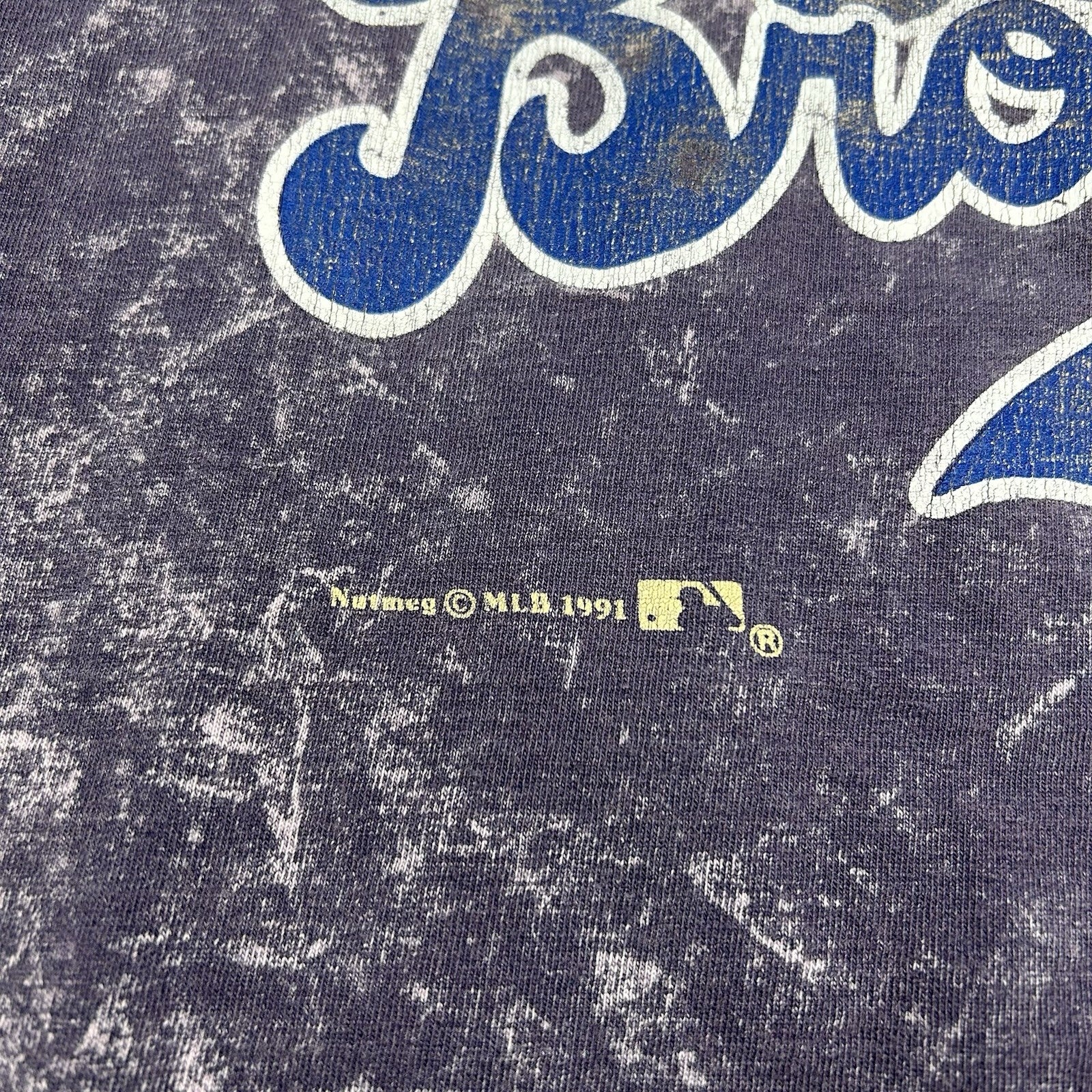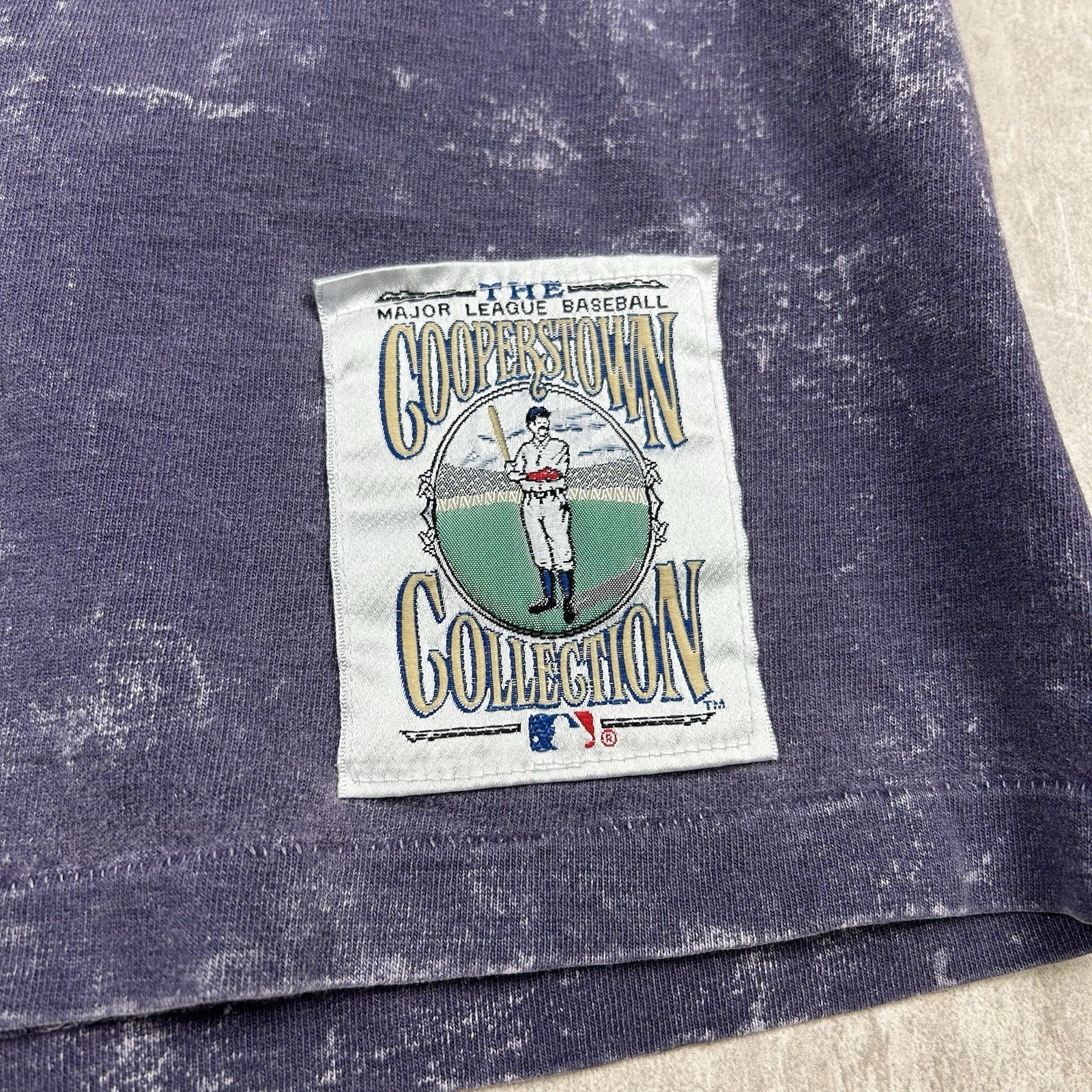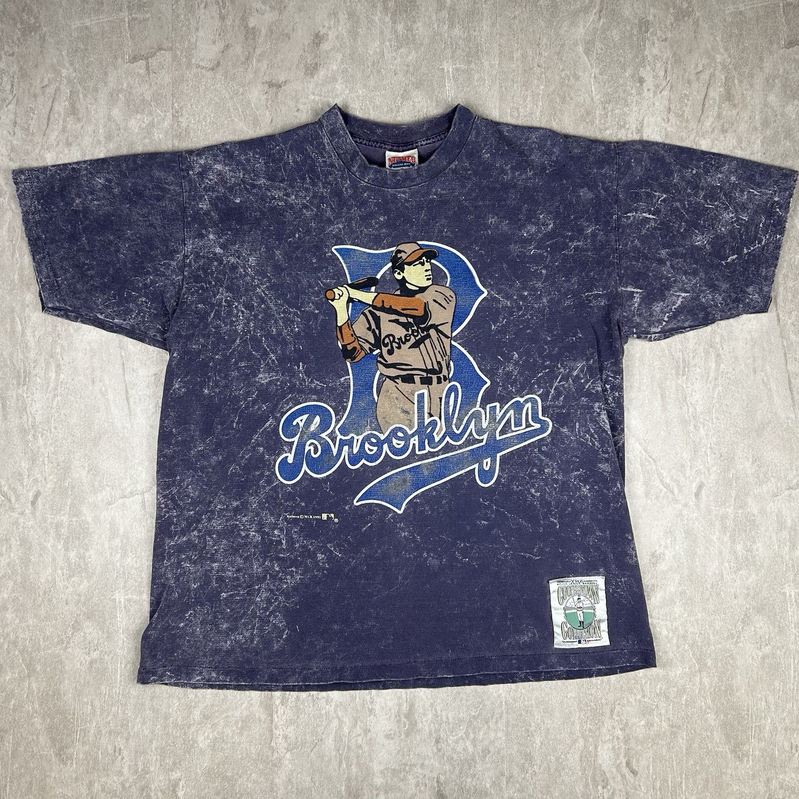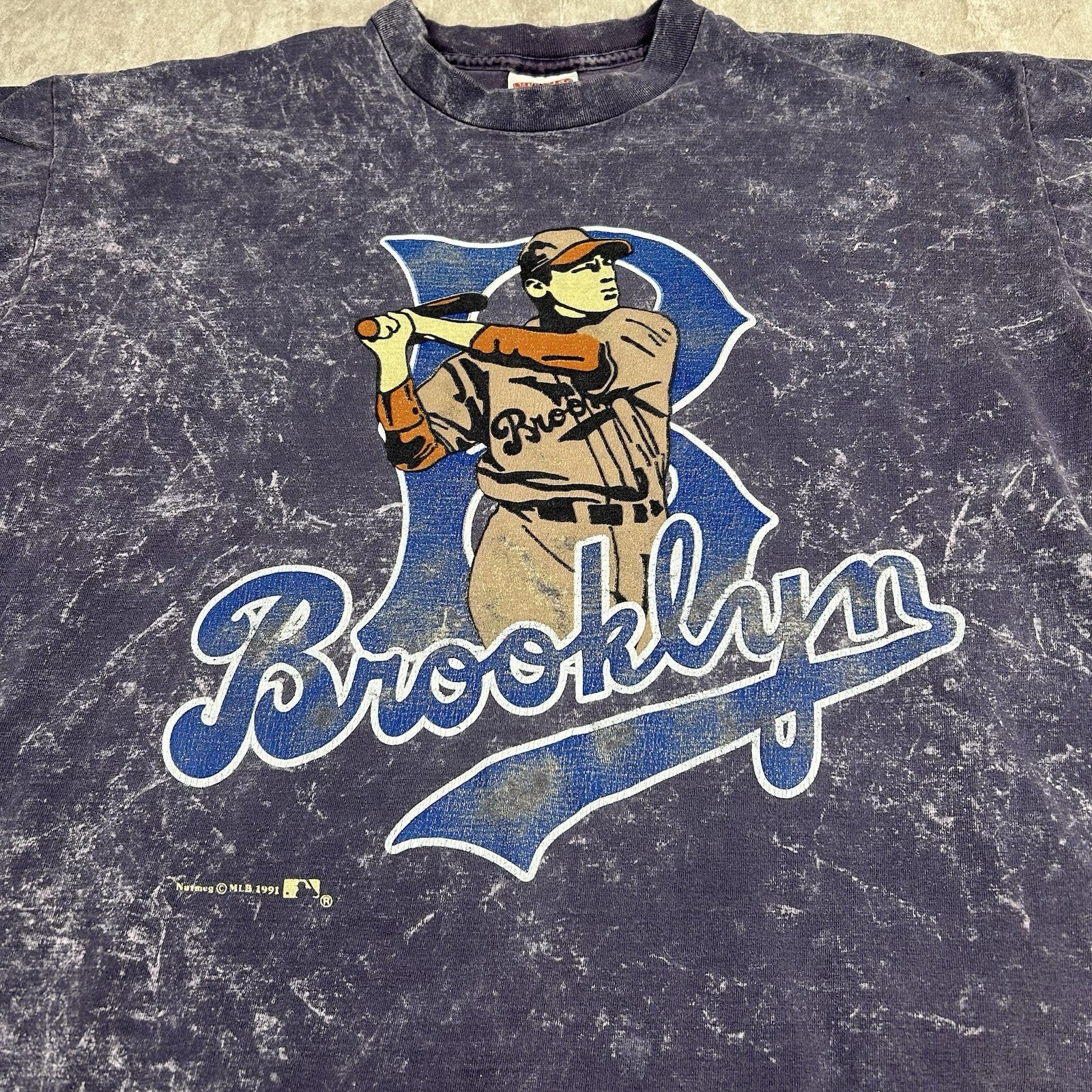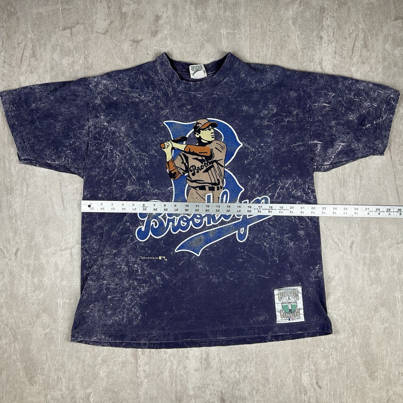 This vintage 90s Brooklyn Dodgers T-shirt features a unique purple colorway and classic Cooperstown Collection graphics. A standout piece for baseball fans and vintage sportswear collectors. Men's size XL.