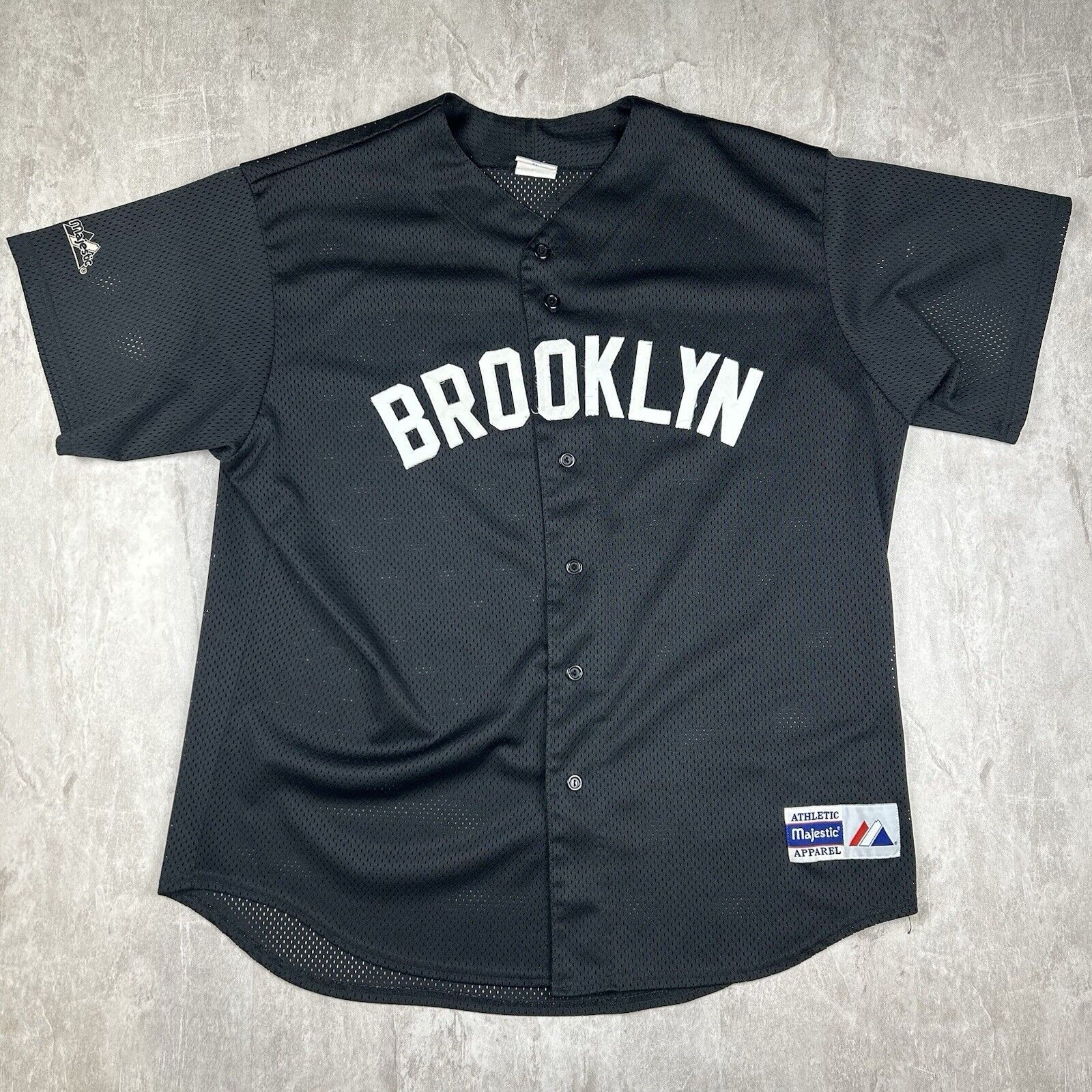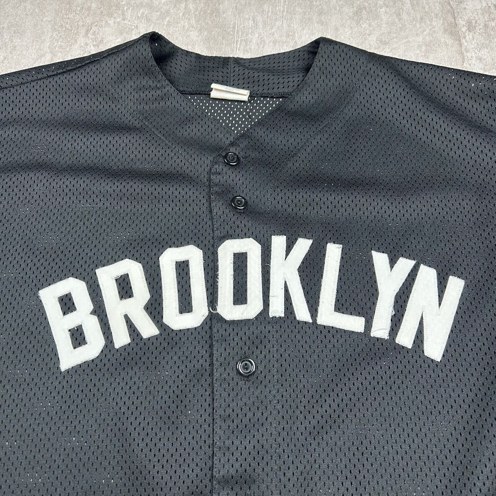 Vintage 90s Brooklyn NY Baseball Jersey Black Poly Shirt Men’s Size XL