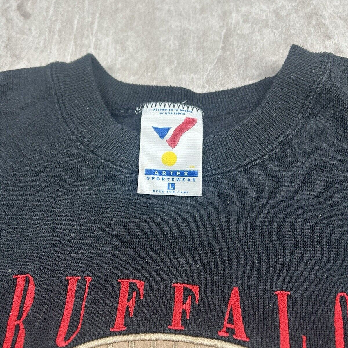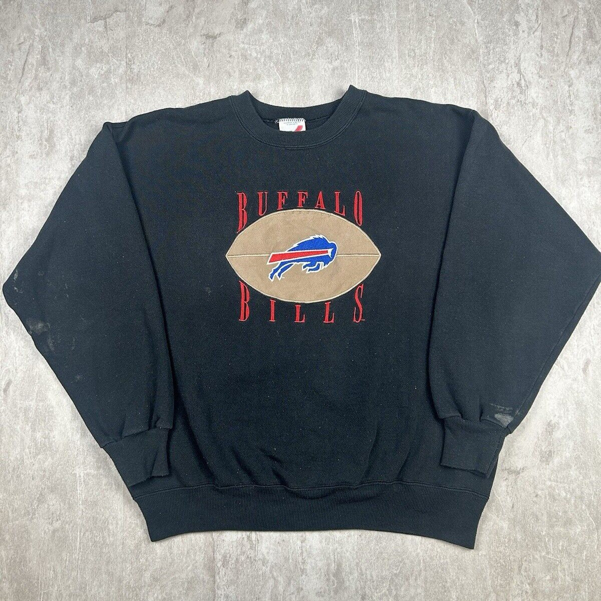 Vintage 90s Buffalo Bills Crewneck Sweatshirt Black Football Logo Men’s Size L