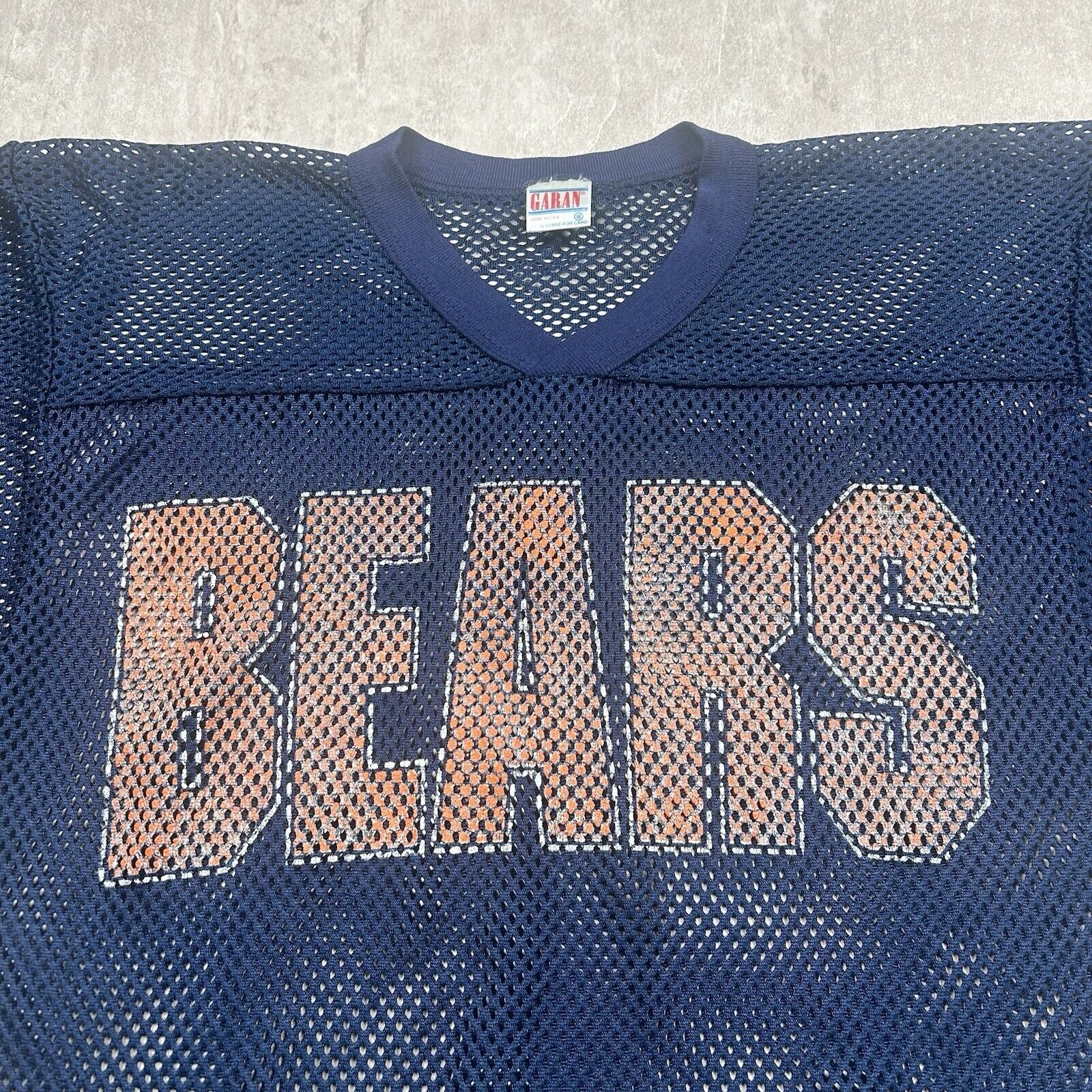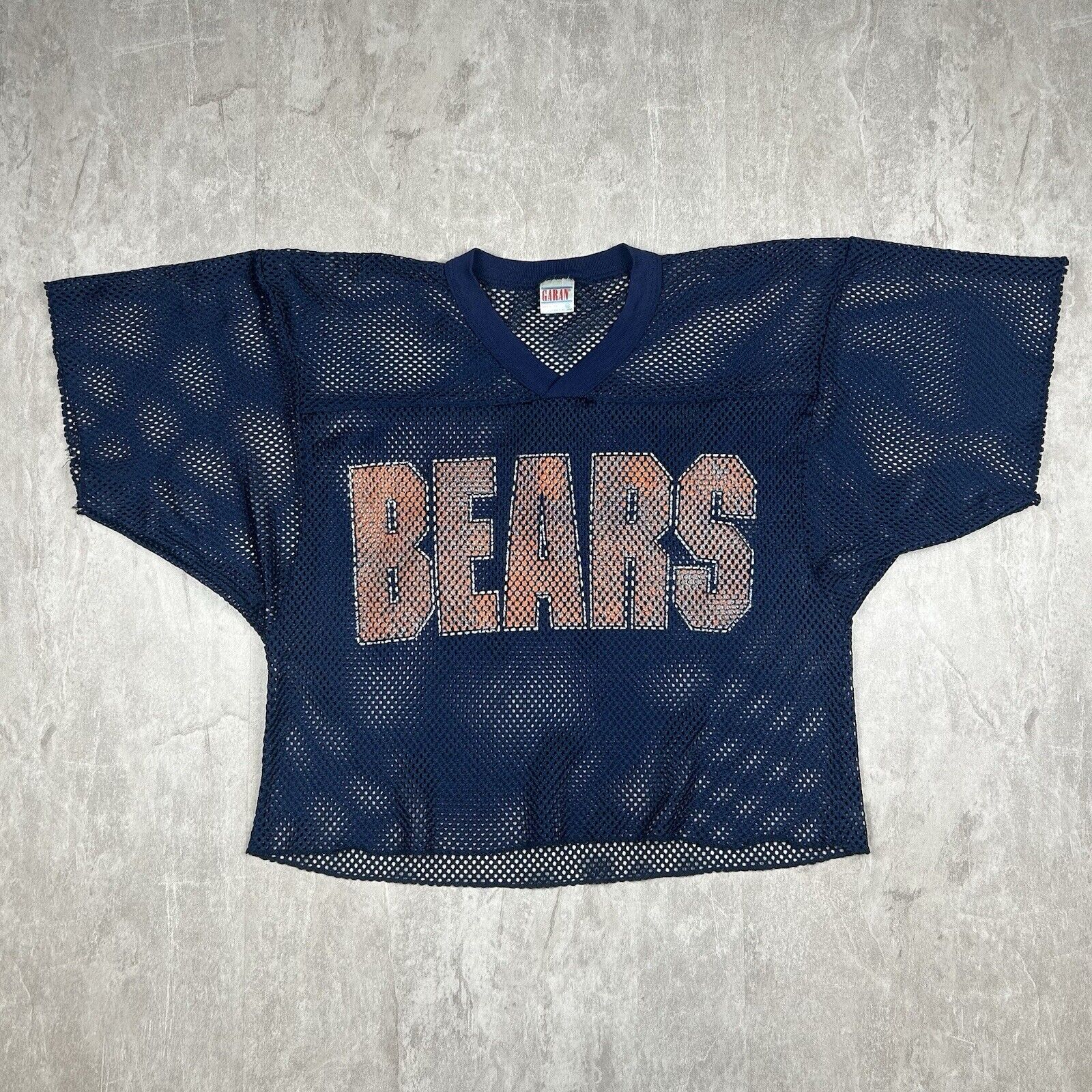 This Vintage 90s Chicago Bears Cropped Mesh Practice Jersey by Garan, size M, features a bold design with breathable mesh fabric. Made in the USA, it's a unique piece for Bears fans and collectors of retro NFL apparel.