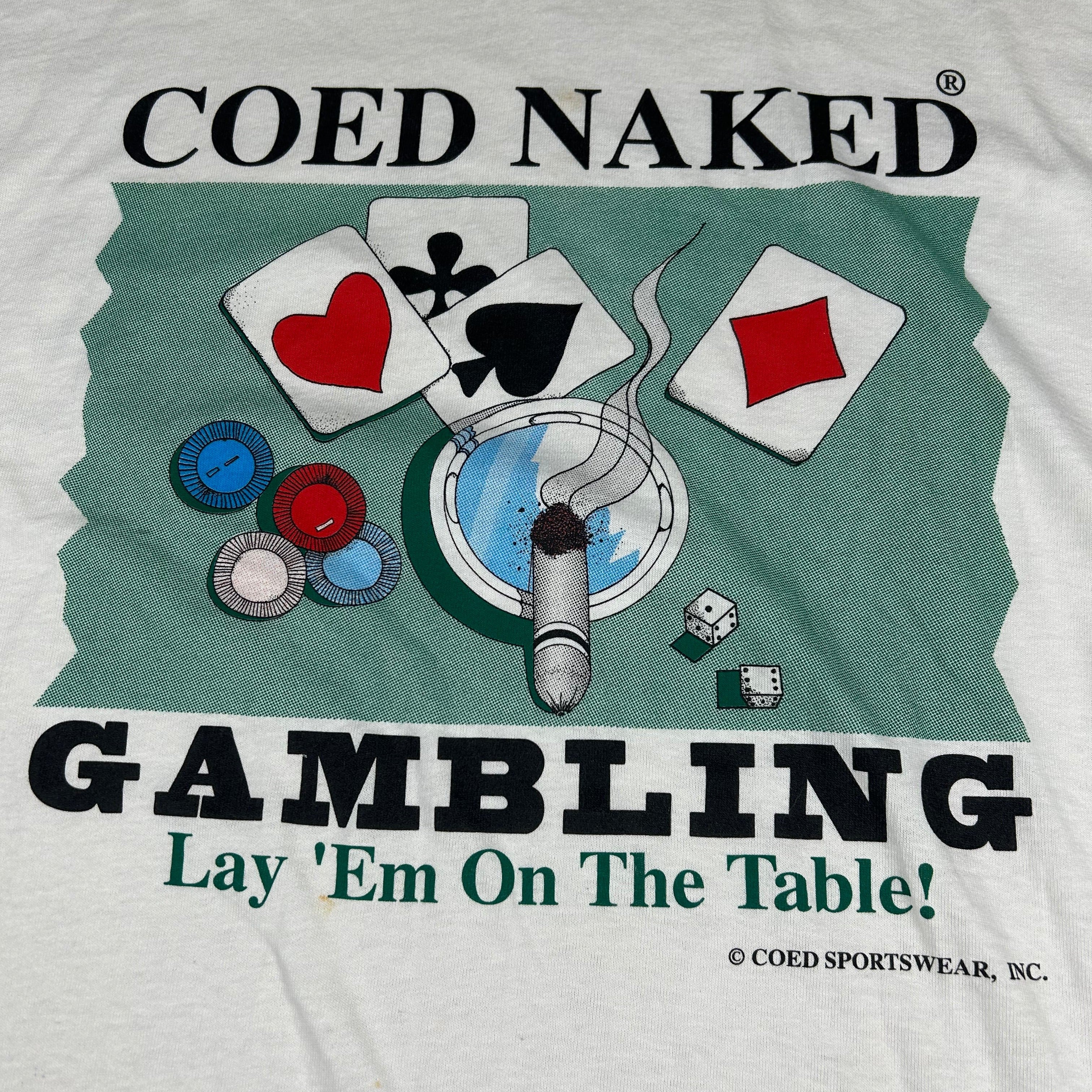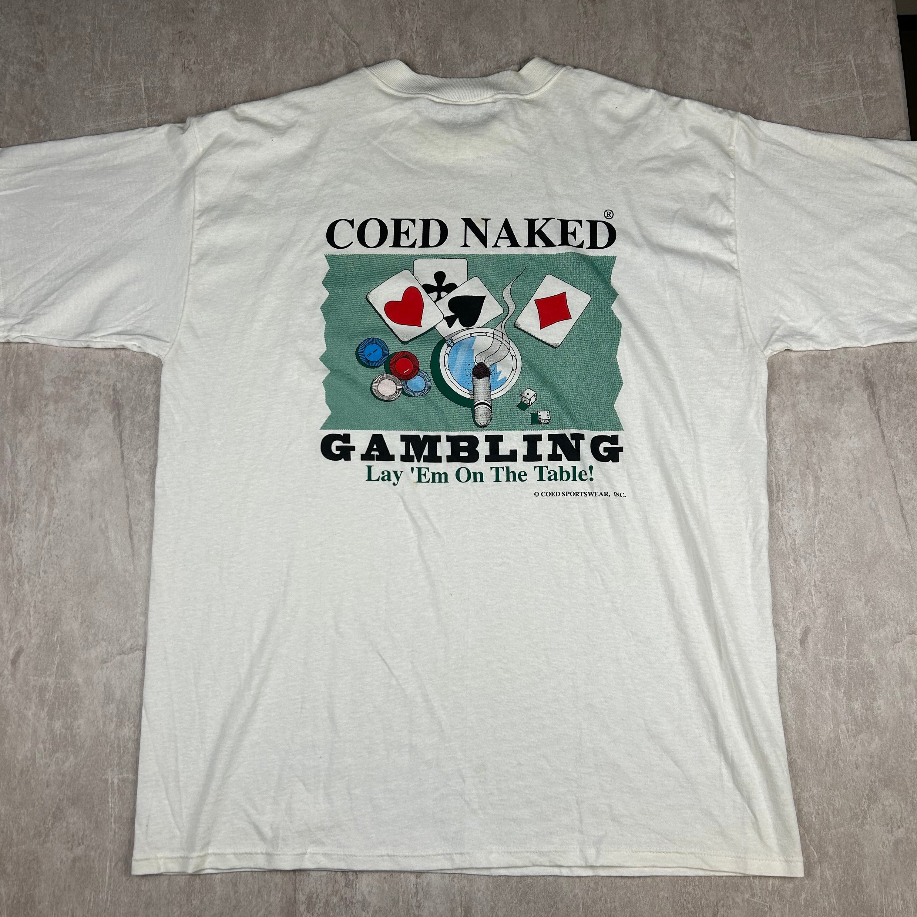 Vintage 90s Coed Naked Gambling "Lay ‘Em On The Table" T-Shirt Men’s Size 2XL