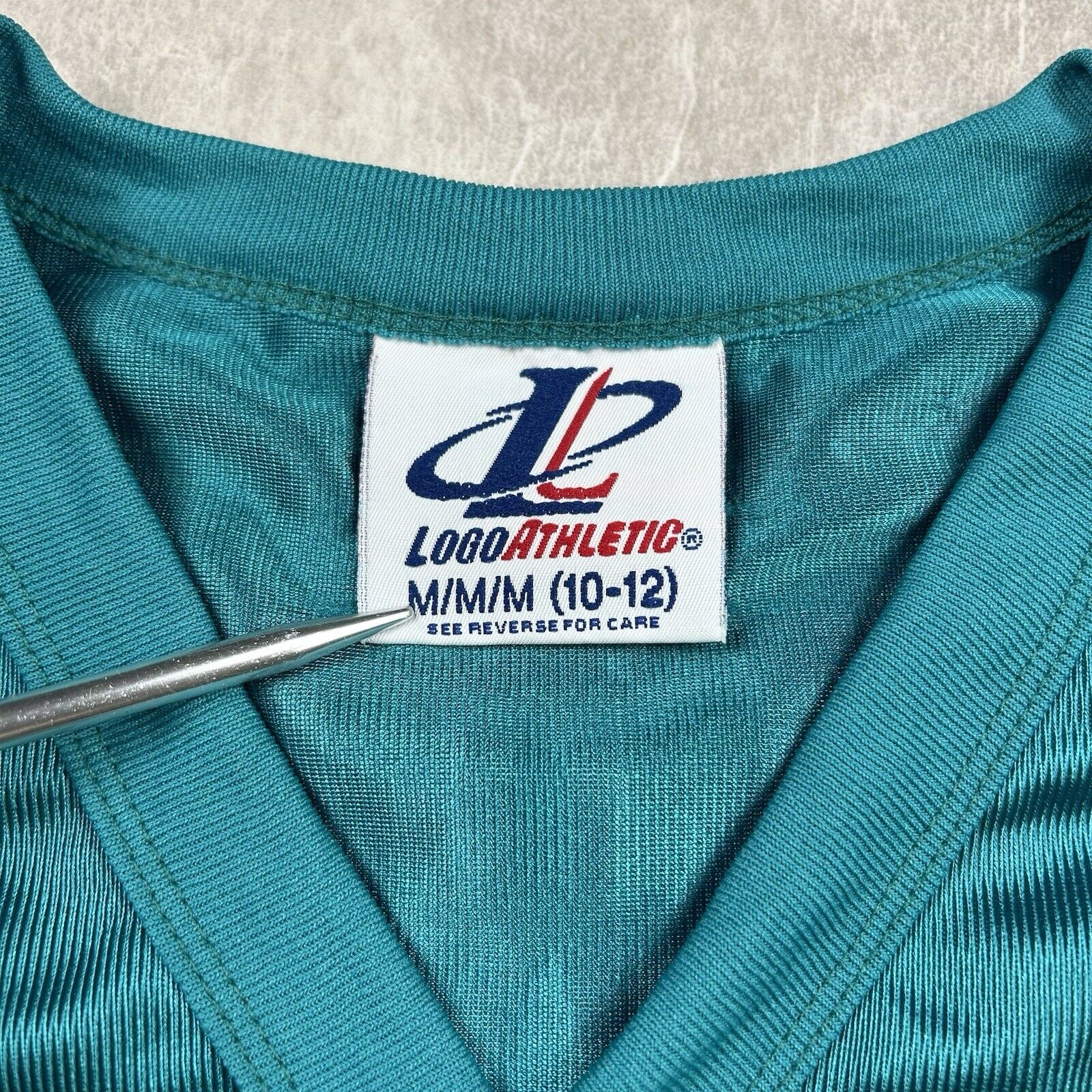 Show your love for a football legend with this Vintage 90s Dan Marino Miami Dolphins Jersey. Made by Logo Athletic, this youth size M jersey features Marino's iconic number in classic Dolphins teal. A must-have for any fan or collector, it's the perfect way to celebrate one of the greatest quarterbacks in NFL history.