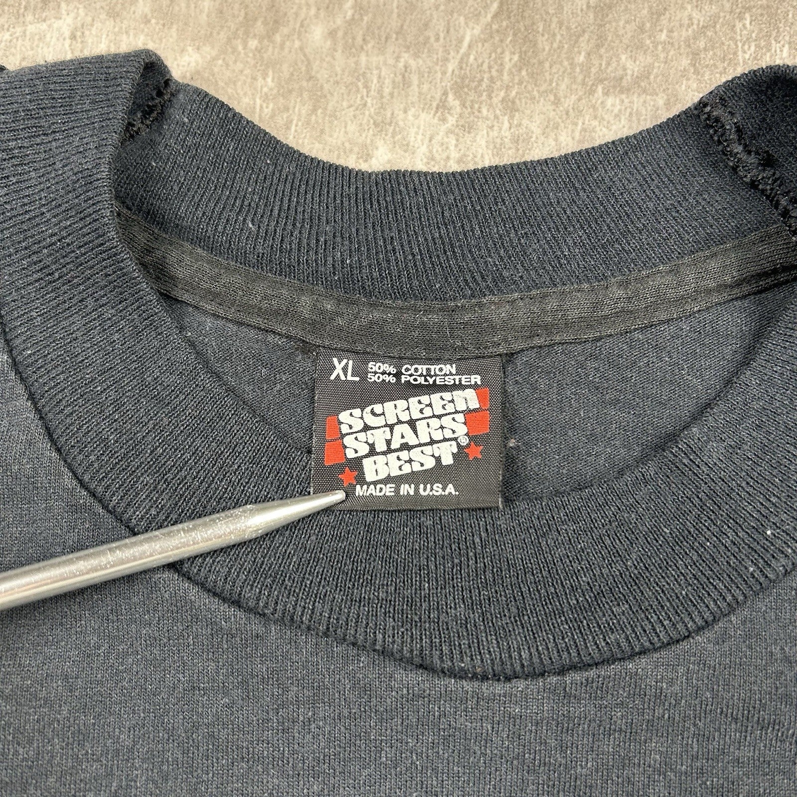 This vintage 90s Elvis Presley Graceland T-shirt features a classic graphic honoring the King of Rock ‘n' Roll and his iconic home. Made in the USA, it's a must-have for Elvis fans and vintage collectors. Men's size XL.