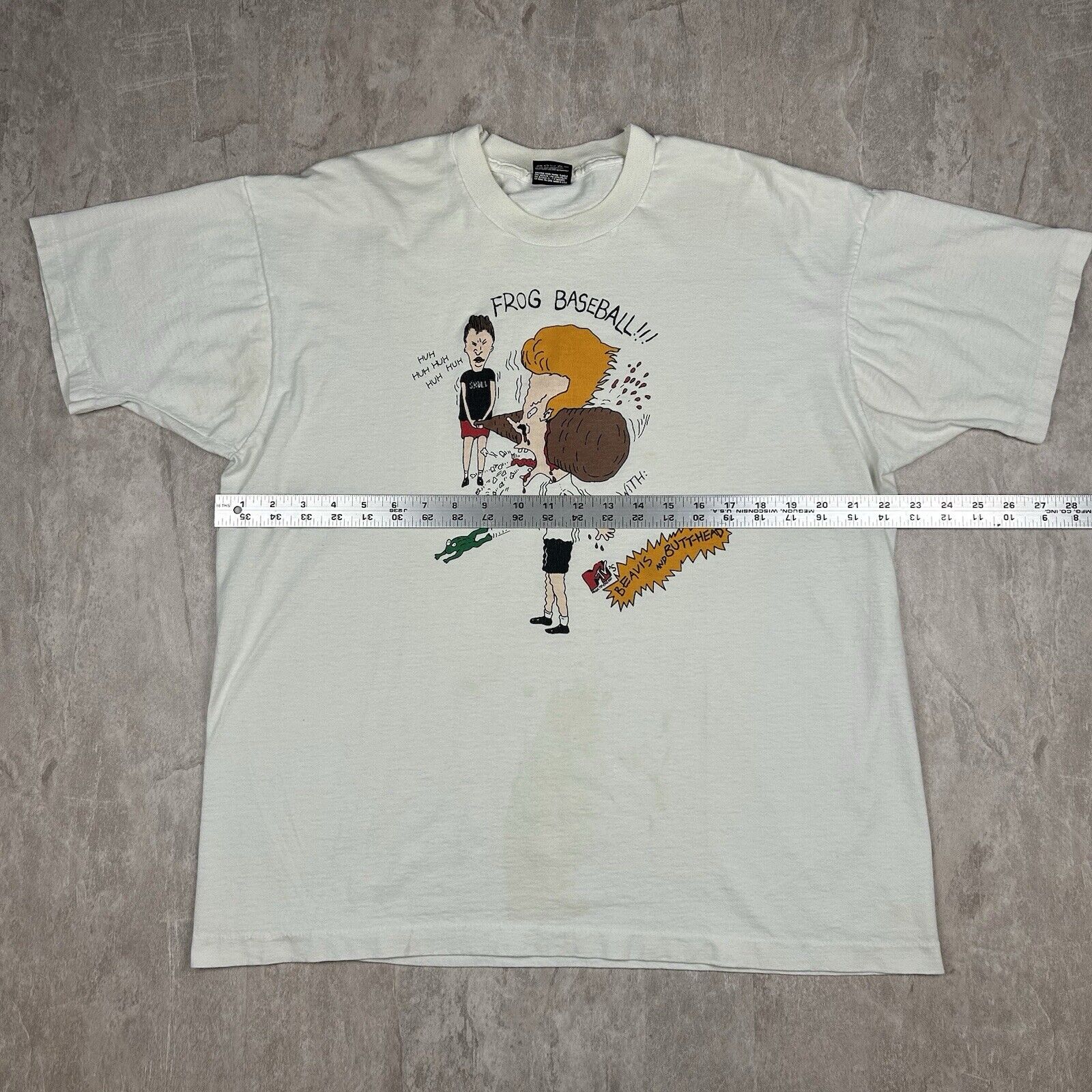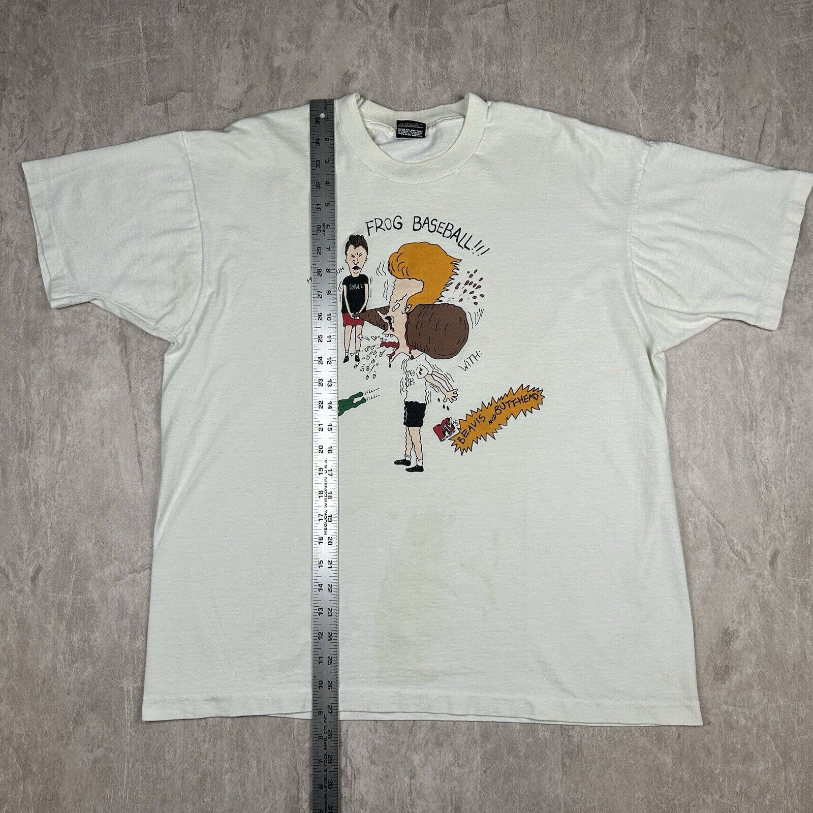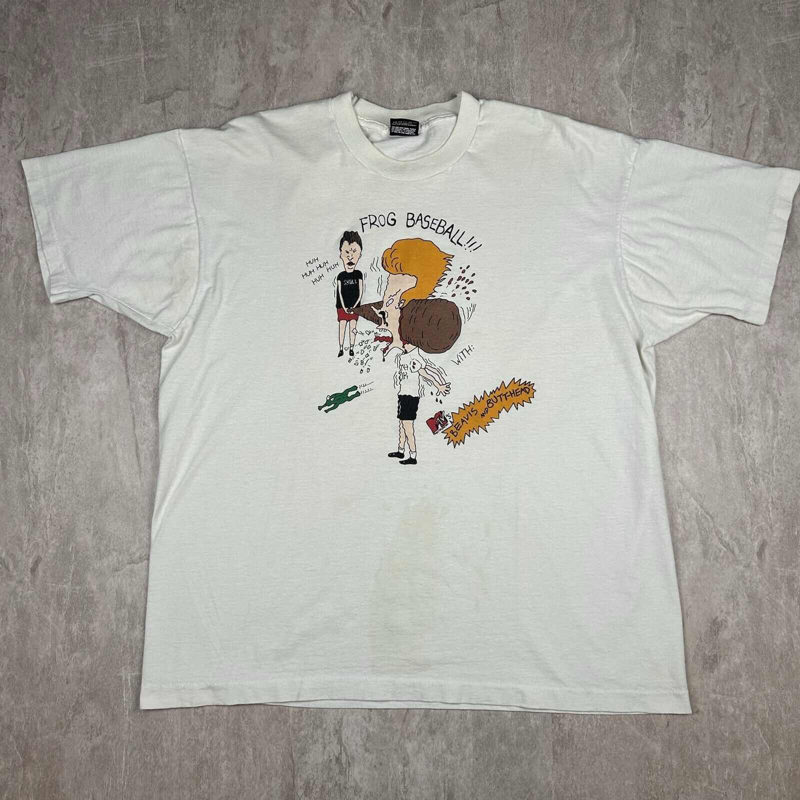 Vintage 90s Frog Baseball Beavis and Butt-Head White T-Shirt MTV Men’s Size XL