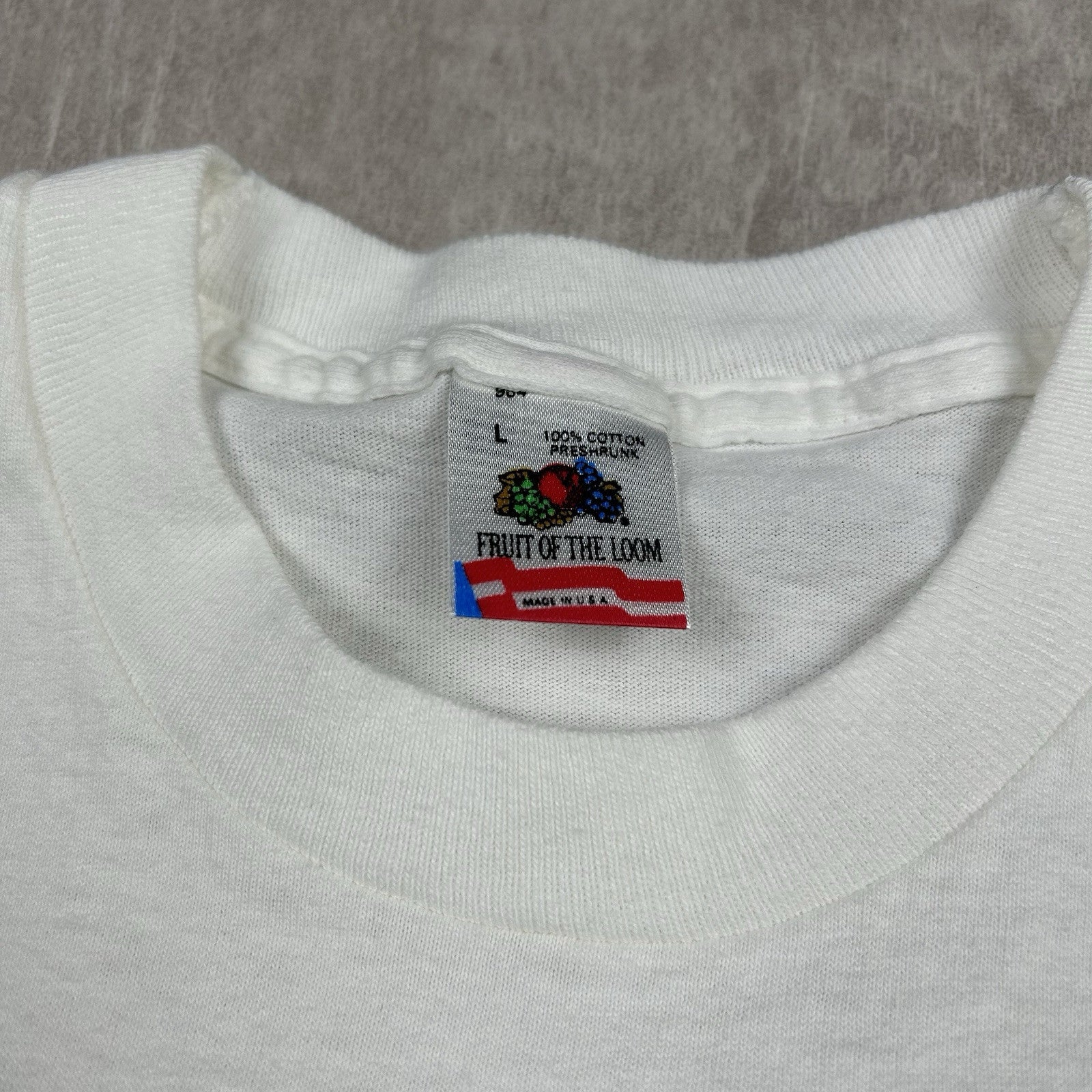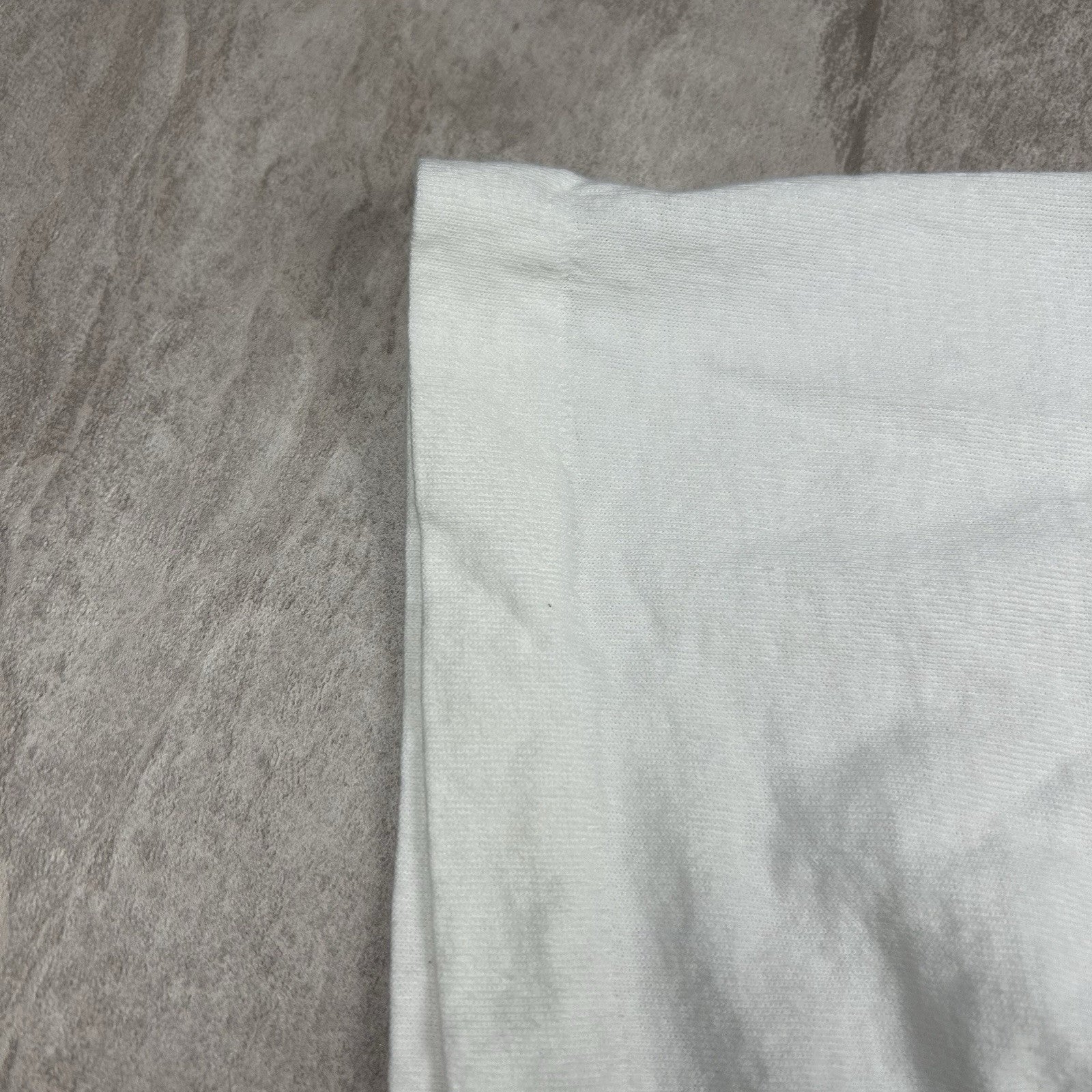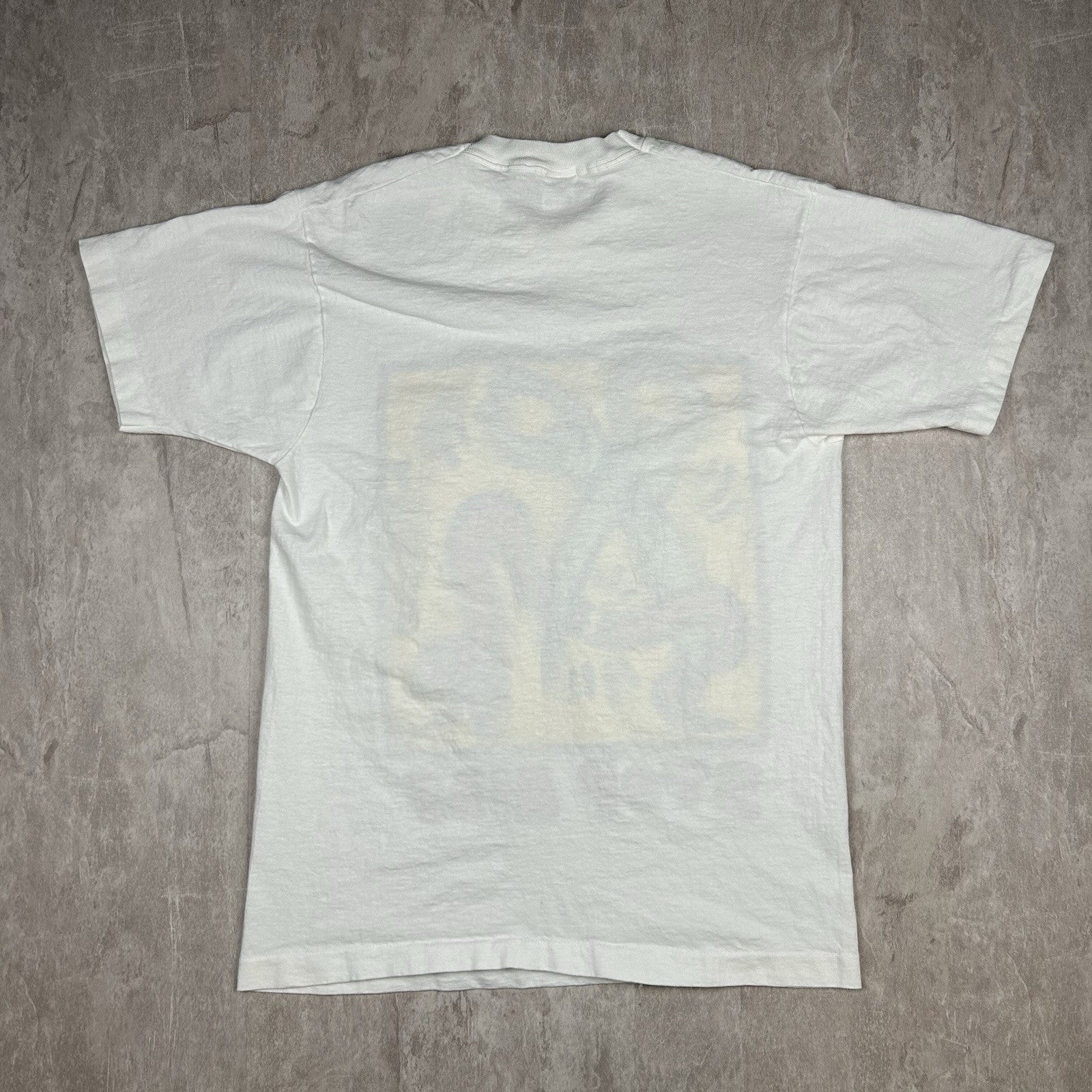 This vintage 90s Keith Haring "Stop AIDS" T-shirt features a powerful graphic from the renowned artist's public awareness campaign. With a single stitch and made in the USA, it's a unique piece of both art and activism. Men's size L.