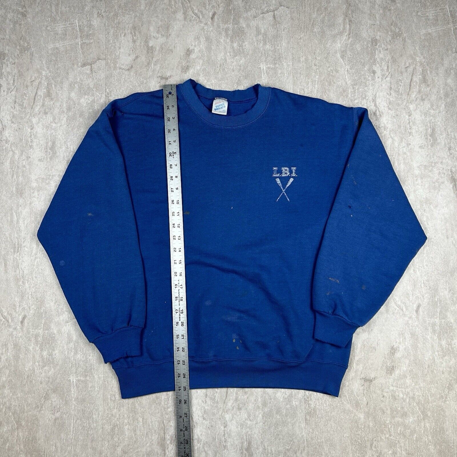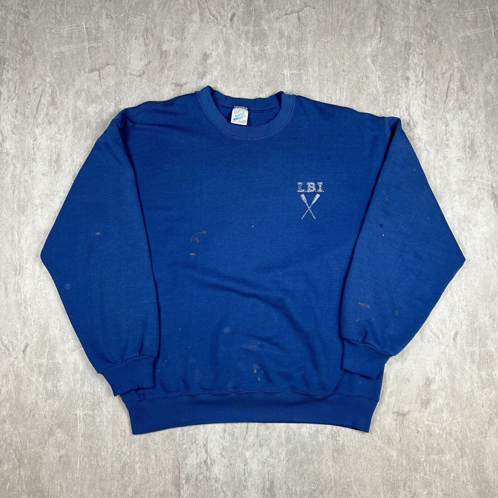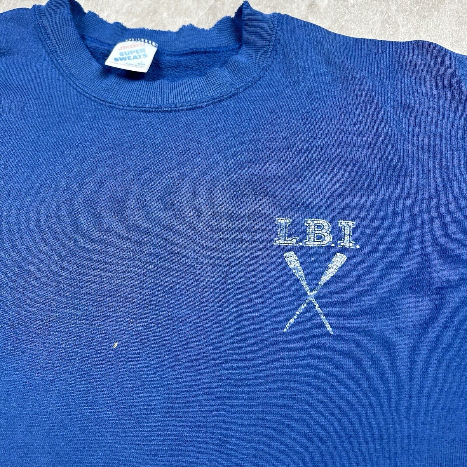 Embrace coastal vibes with this Vintage 90s Long Beach Island (LBI) Rowing Crewneck Sweatshirt. In a cool blue, this men's size L sweatshirt is perfect for representing LBI's rowing culture while staying cozy. A timeless piece for fans of the island or classic 90s style.