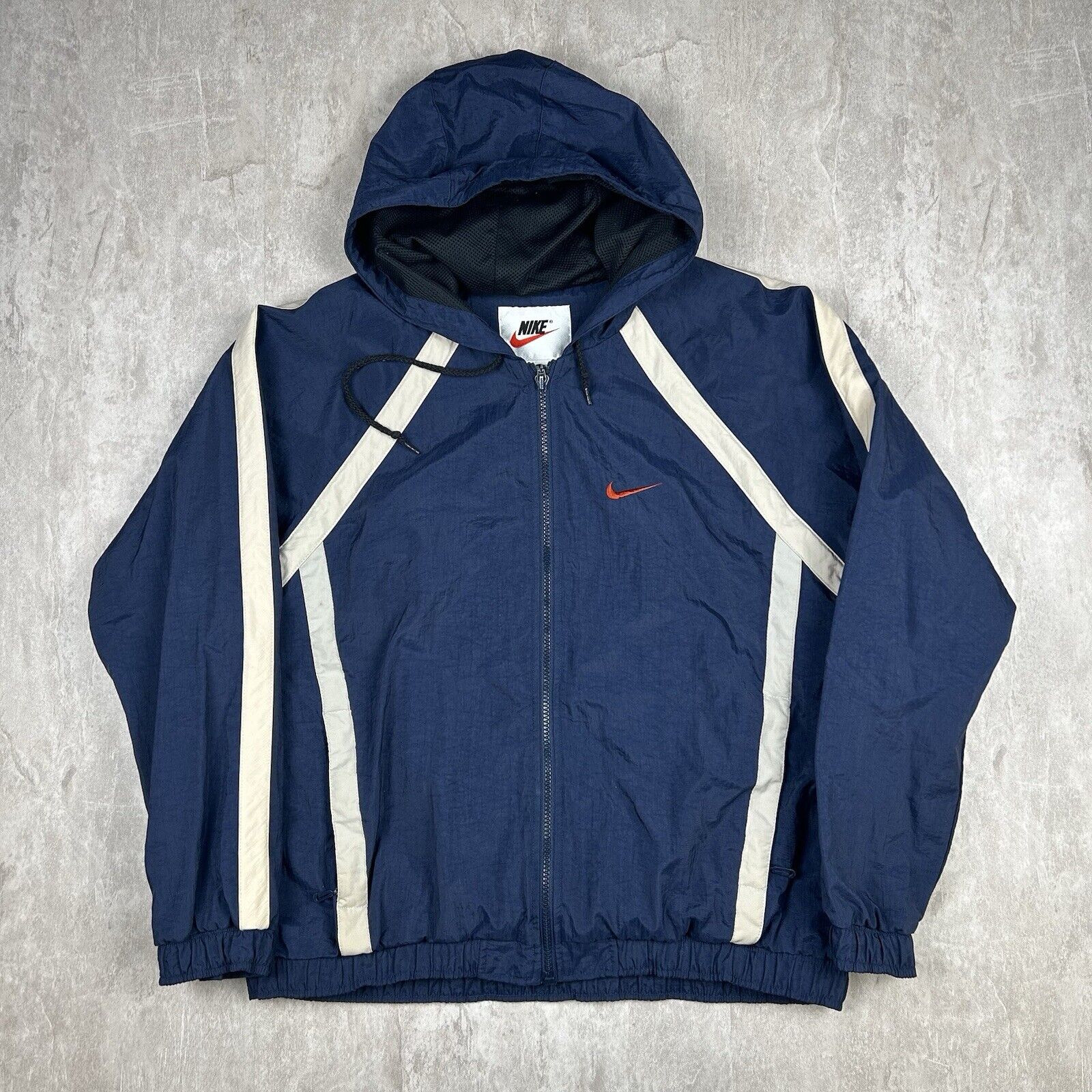 Vintage 90s Nike Jacket Windbreaker Warm Up Blue Spellout Track Men’s Size M