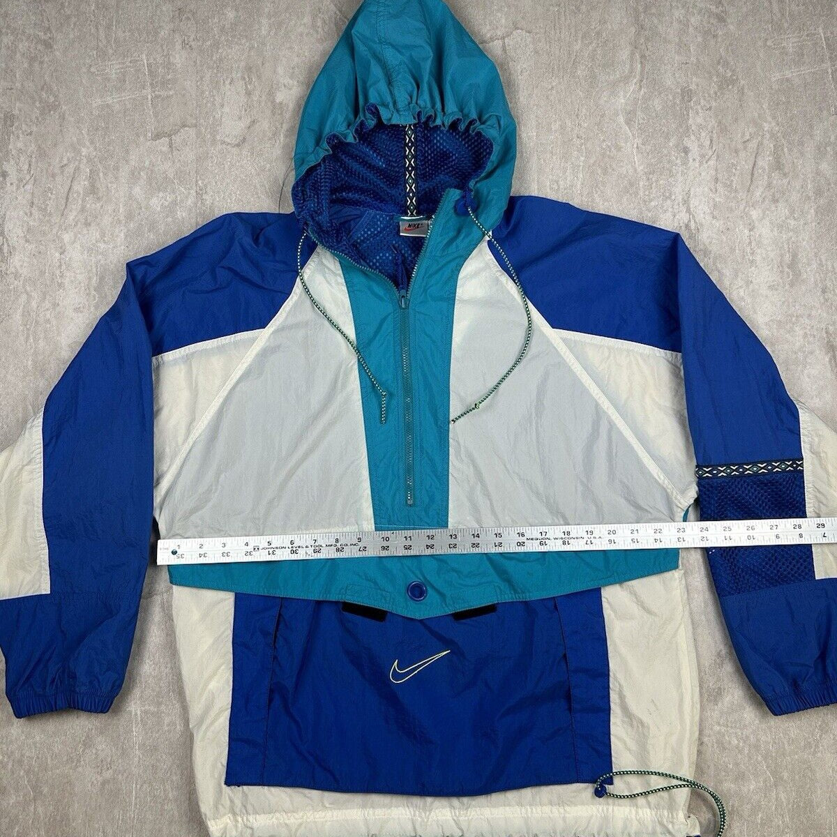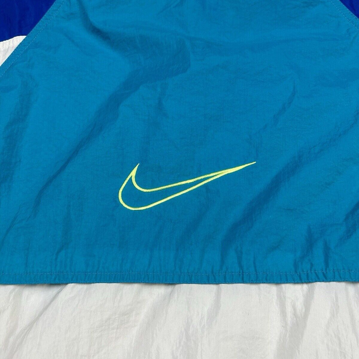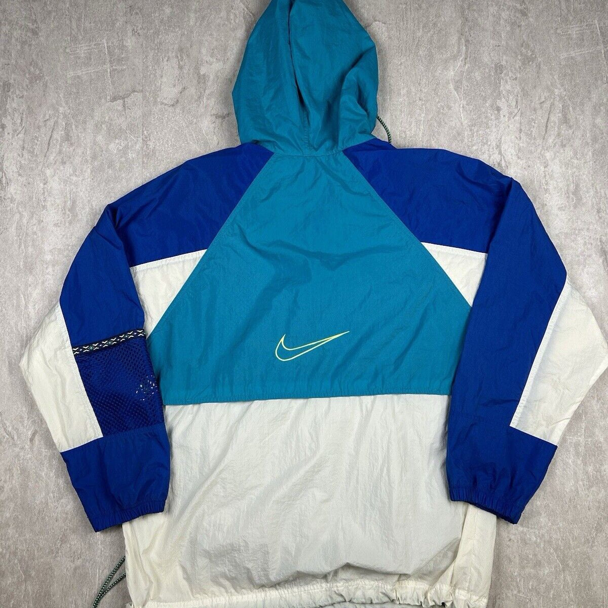 Vintage 90s Nike Windbreaker Quarter Zip Blue White Hooded Men’s Size M