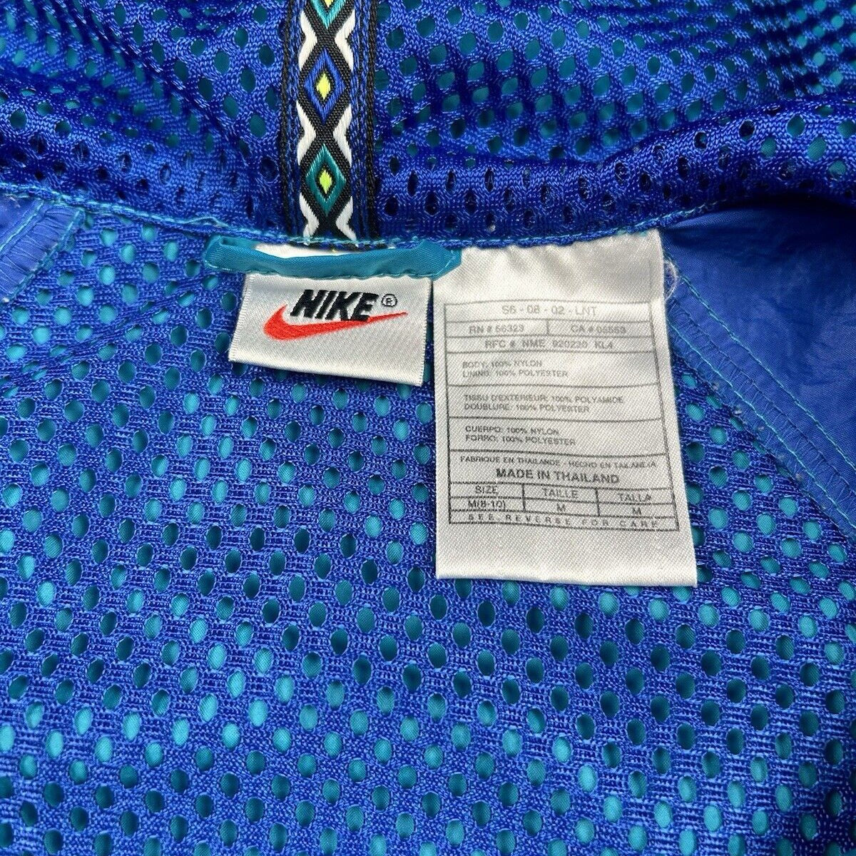 This Vintage 90s Nike Windbreaker, in men's size M, features a stylish quarter-zip design with a classic blue and white color scheme and a hood. Combining retro aesthetics with practical functionality, it's perfect for those who appreciate vintage sportswear and outdoor gear.