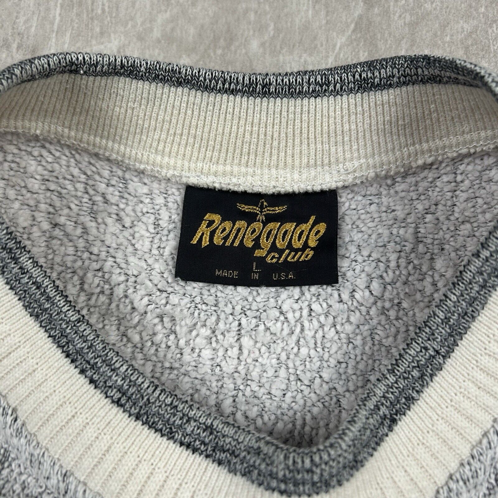 Available now is a Vintage 90's Renegade Club Sweater Sweatshirt Crewneck from Alaska, USA, Men's Size L. This classic crewneck features a timeless design that captures the rugged spirit of Alaska, perfect for those who appreciate vintage fashion and unique regional pieces. Made for comfort and style, it's a great addition to any vintage collection.