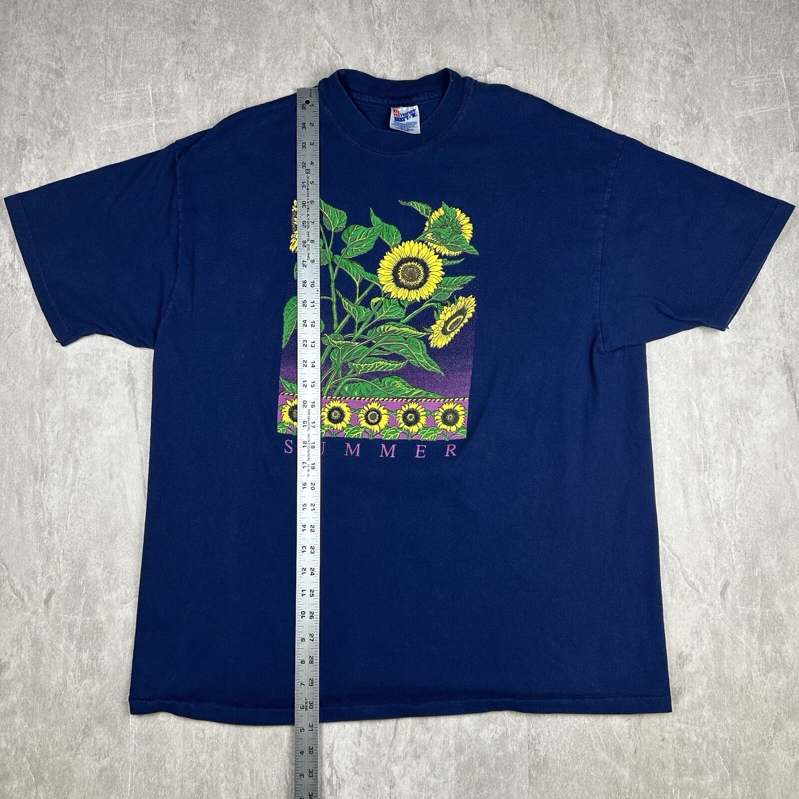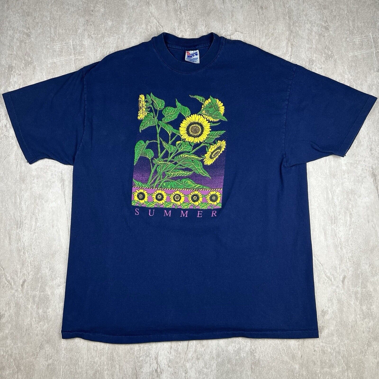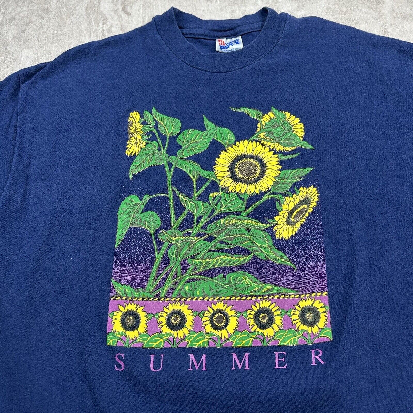 Vintage 90s Summer Sunflower T-Shirt Blue Nature Flowers Hanes Men’s Size 2XL