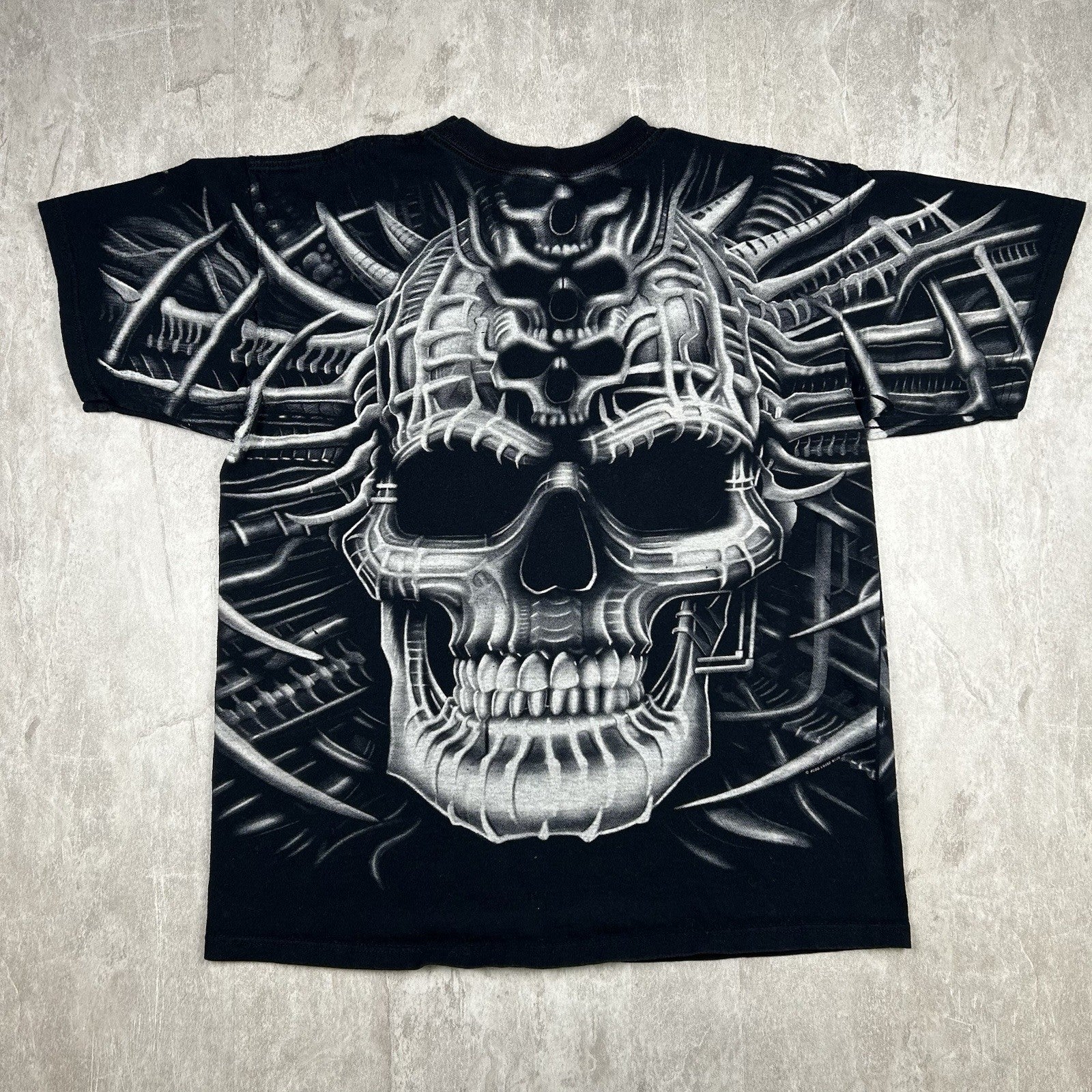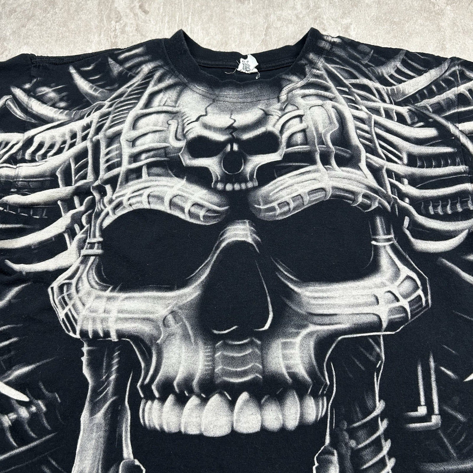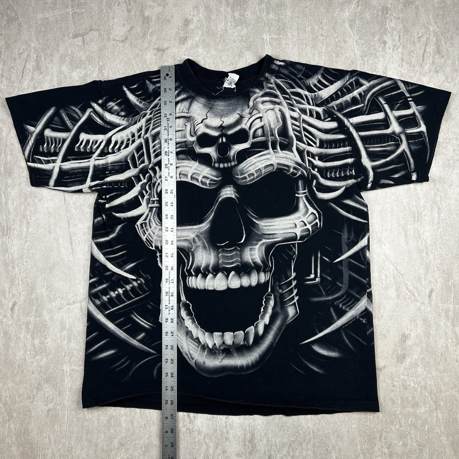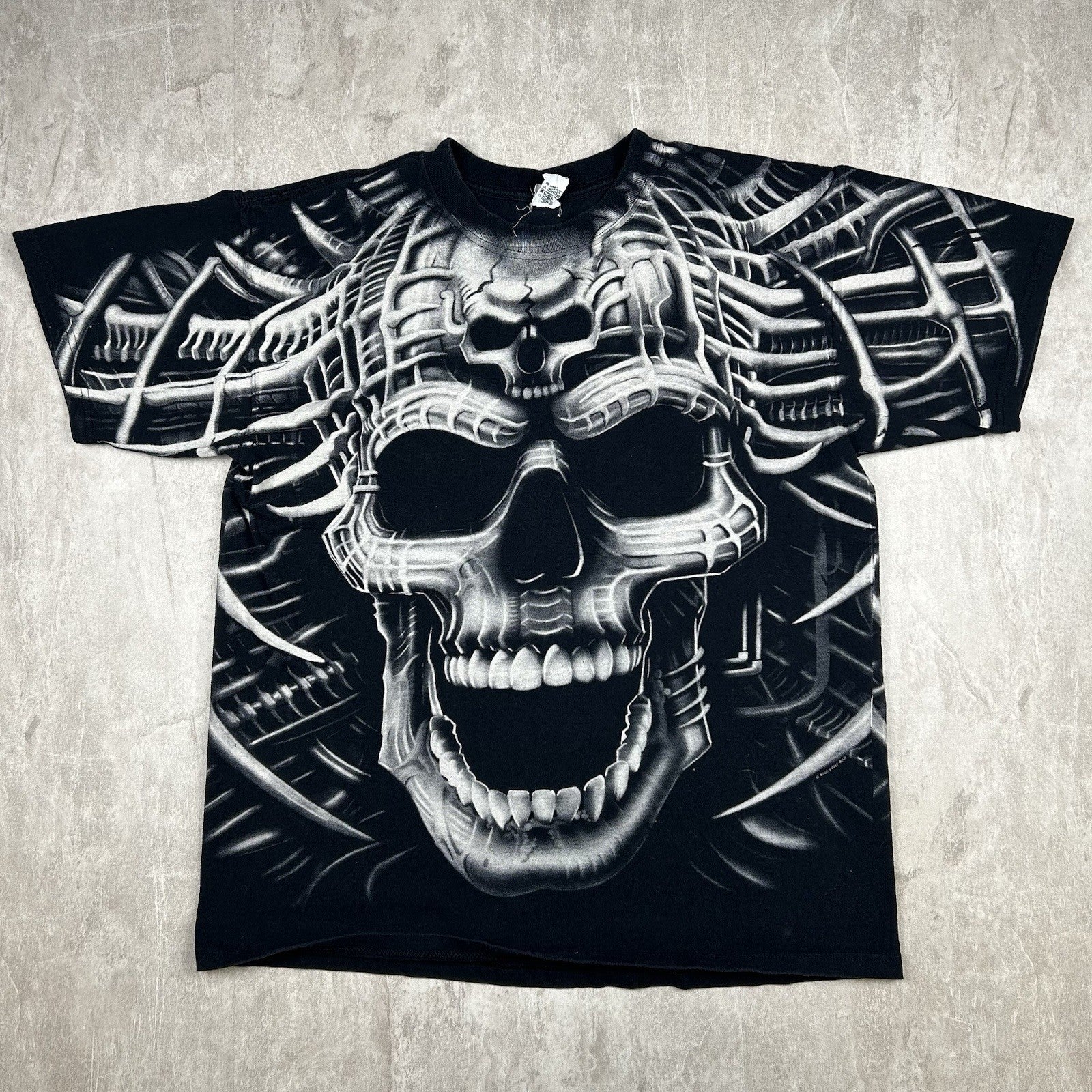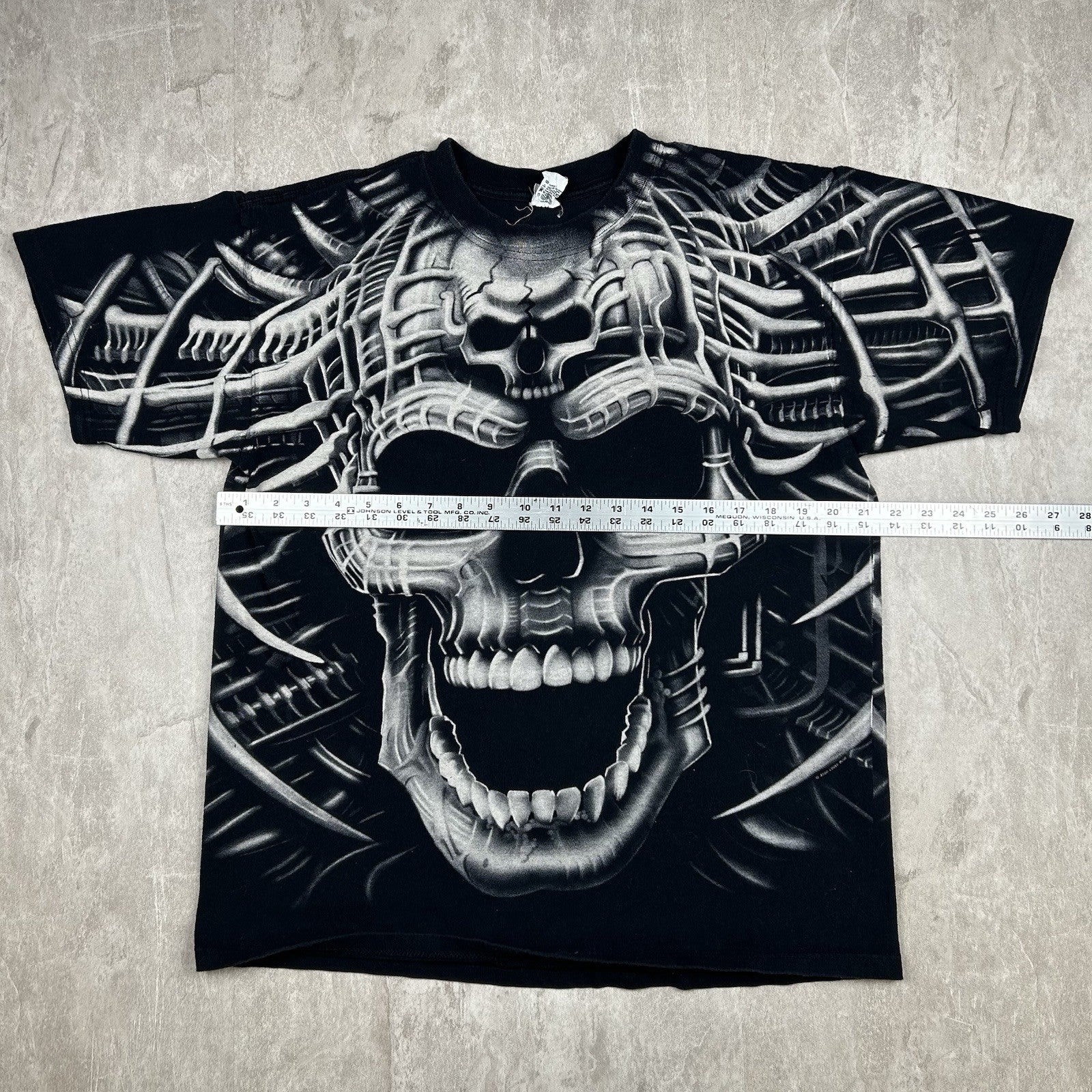 Vintage 90s Y2K Liquid Blue Style Psycho Skull Print AOP T-Shirt Men’s Size L