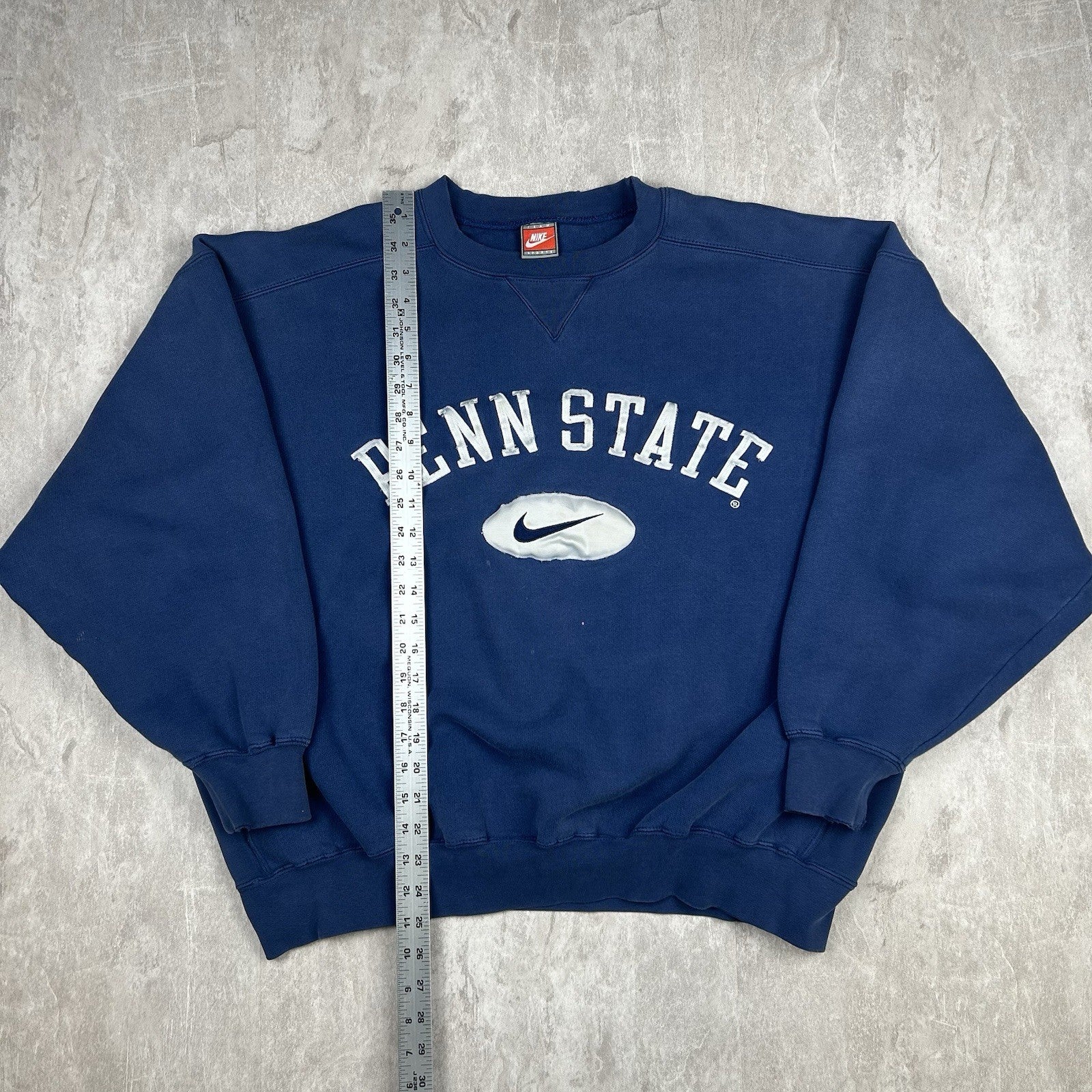 This vintage 90s Y2K Nike Penn State crewneck sweatshirt features a bold blue design, perfect for any fan of the Nittany Lions. The classic style offers comfort and a retro vibe. Size unknown, but fits like a men's medium.