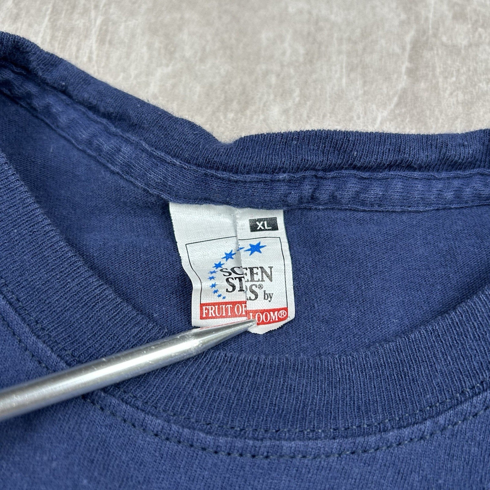 Classic blue blank tee on a vintage 90s/Y2K Screen Stars tag. Soft, lightweight, and ready to wear or print. Men's size XL. Made in USA.