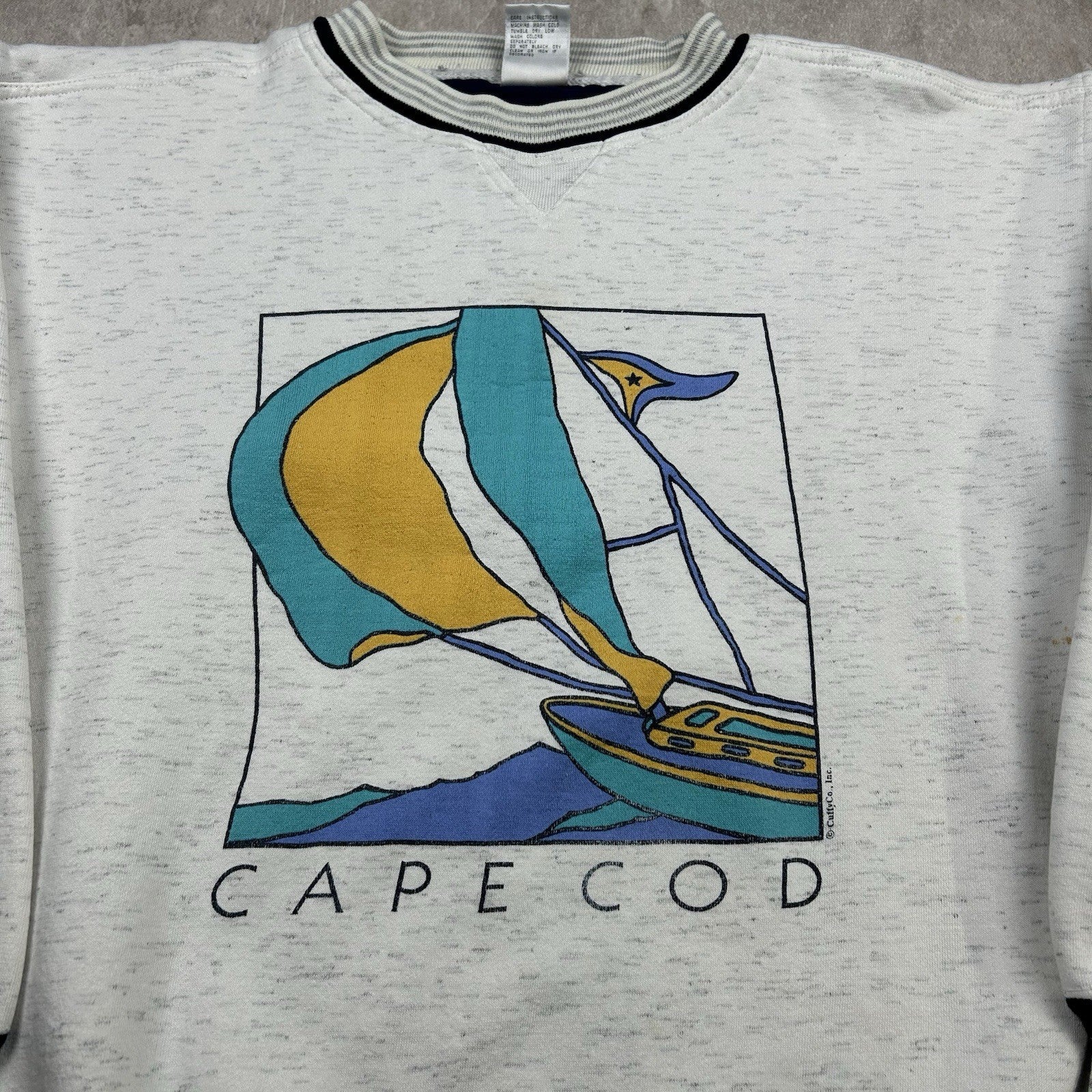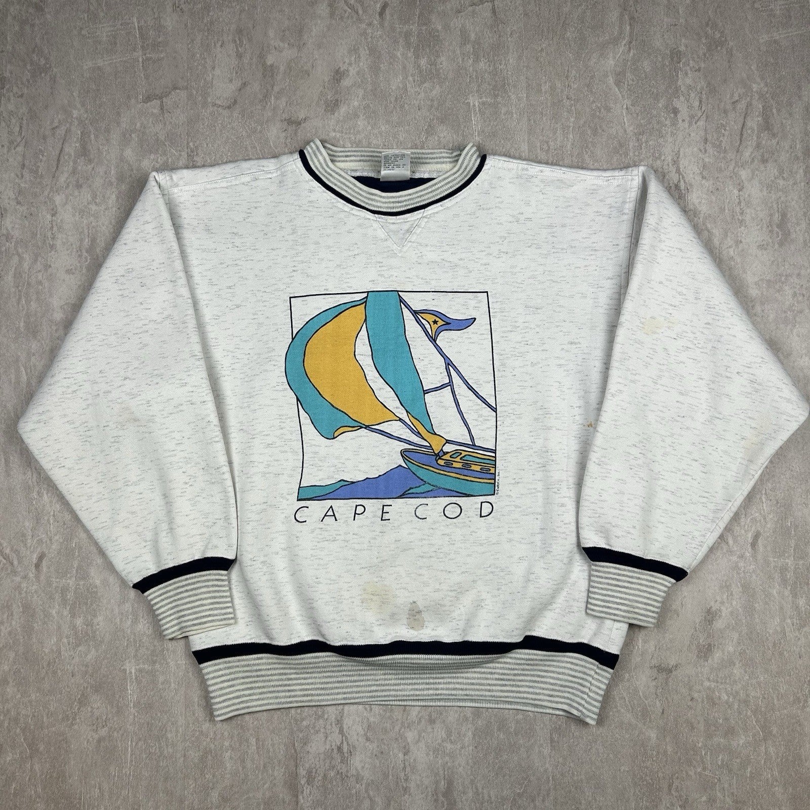 Vintage BAC Cape Cod Massachusetts Boats Gray Pullover Sweatshirt Men’s Size L
