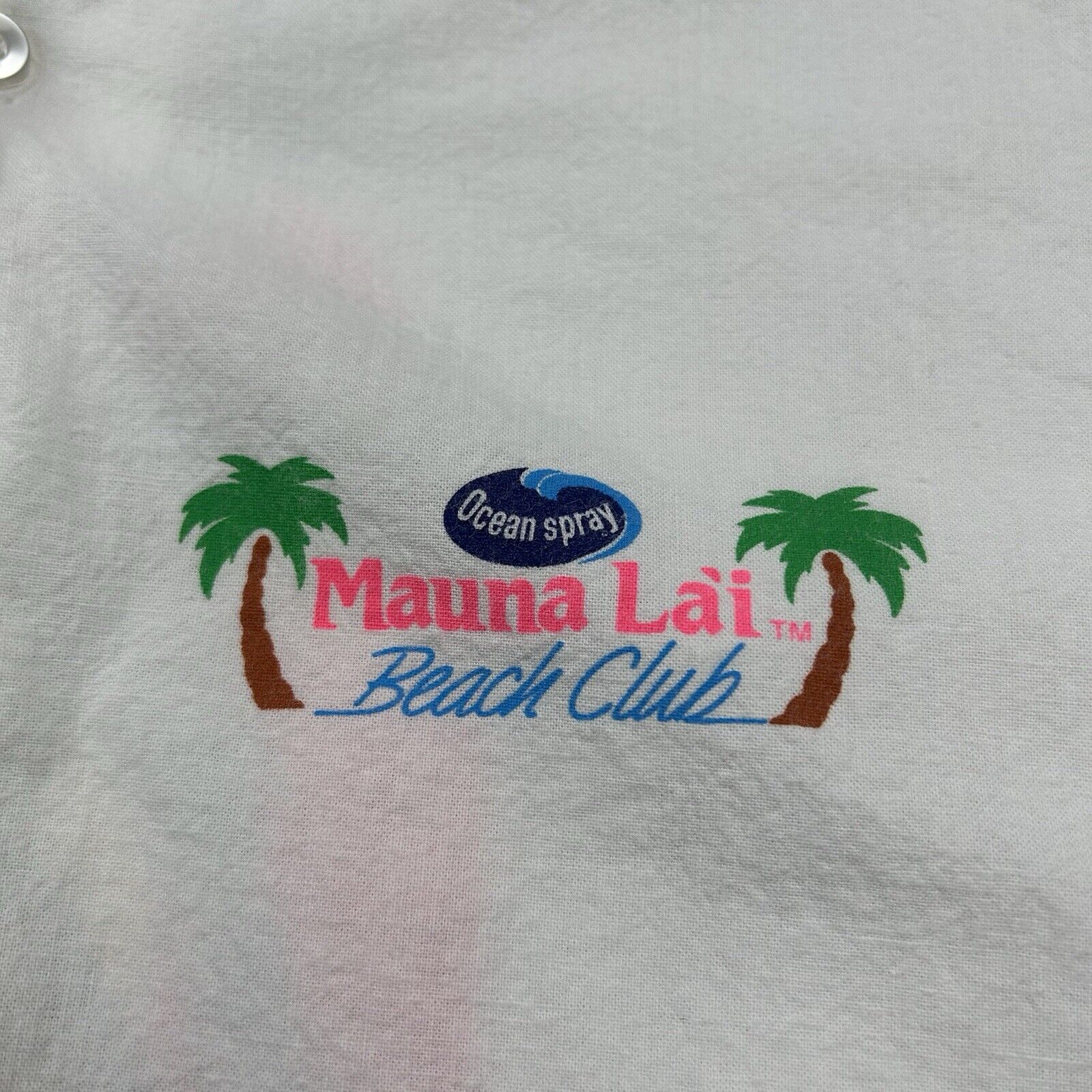 This Vintage Chalk Line Mauna Mai Beach Club Shirt in size XL features a vibrant design showcasing the tropical charm of the Ocean Spray Beach Club. Perfect for beachwear enthusiasts and collectors of unique vintage apparel.