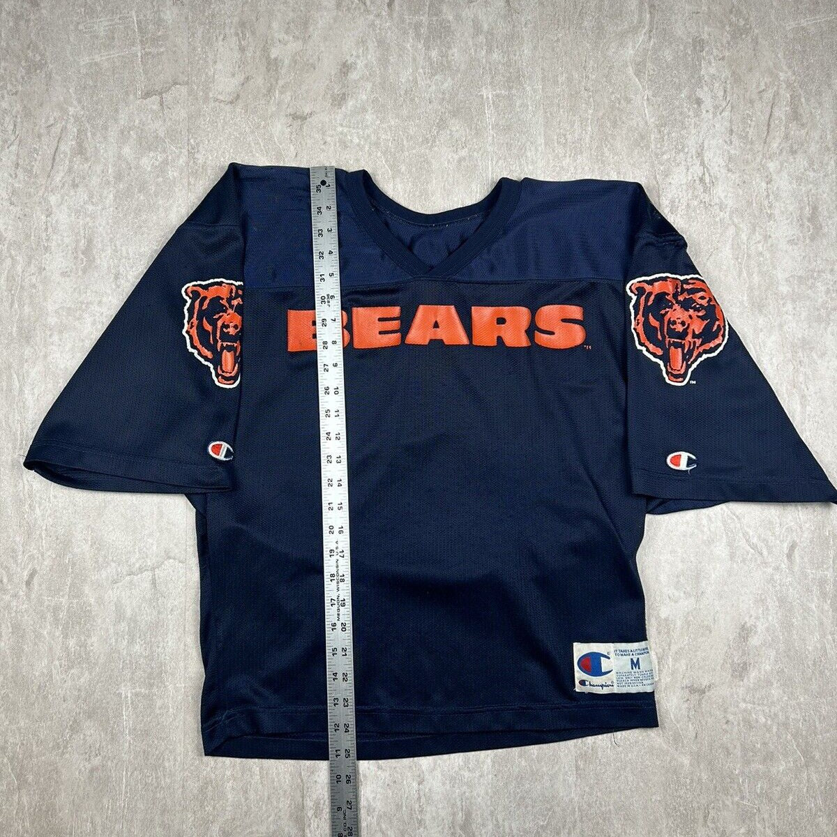 Relive the glory days of Chicago football with this Vintage Chicago Bears Authentic Champion Jersey. Made from breathable blue mesh, this men's size M jersey offers a classic look that's perfect for any Bears fan or vintage sportswear enthusiast. With its authentic design, this jersey is a timeless piece of NFL history.