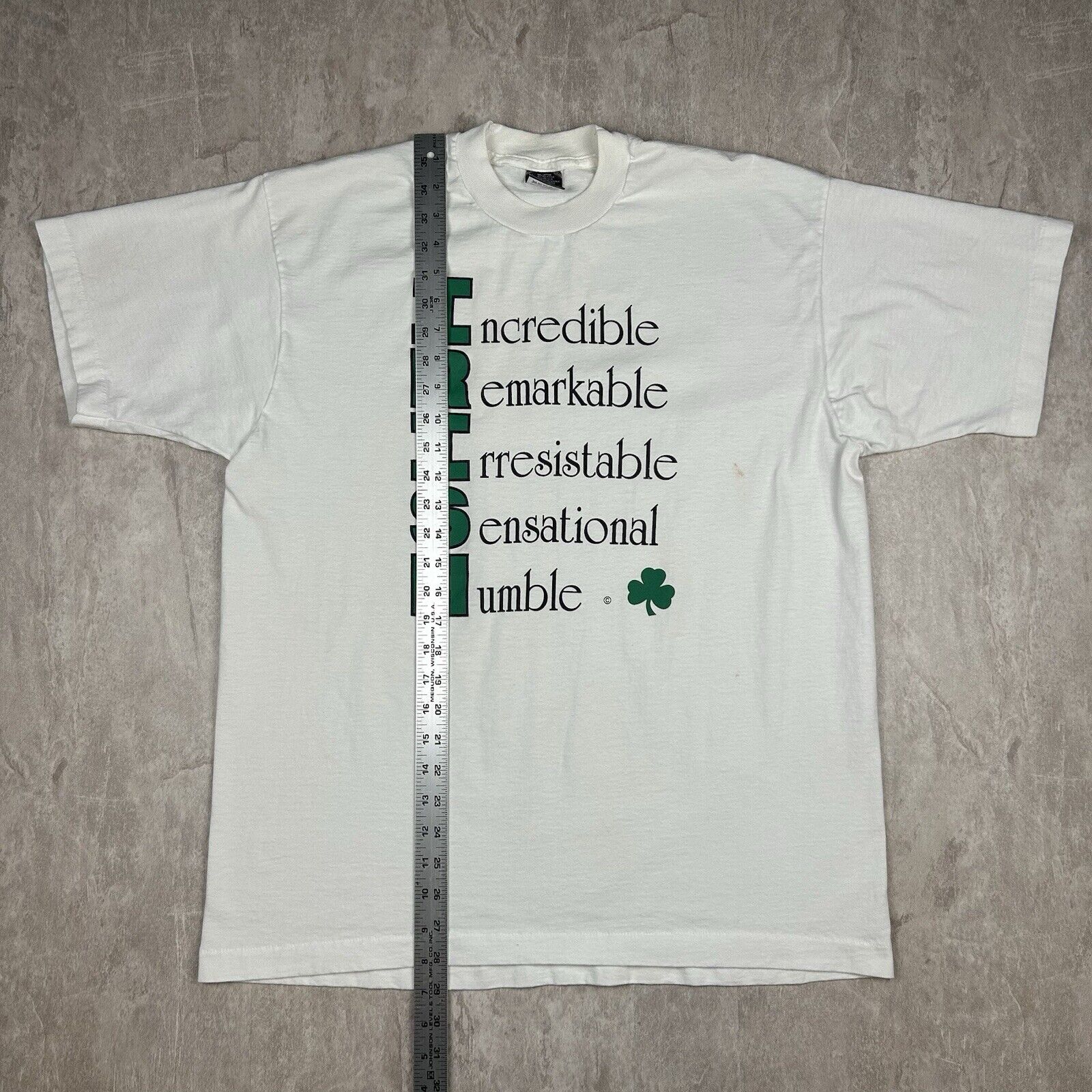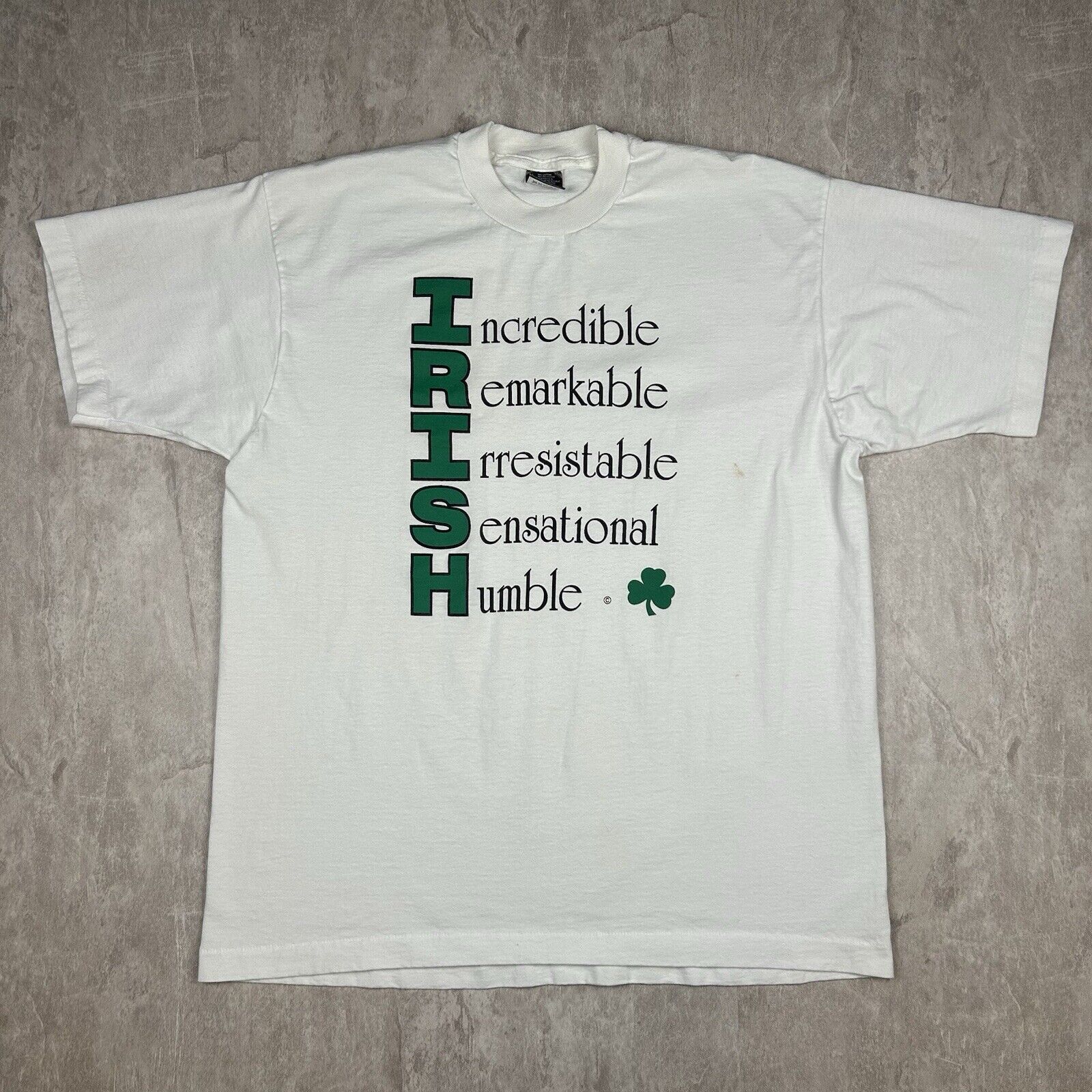 Vintage Fruit Of The Loom Best Irish Spellout T-Shirt Single Stitch Mens Size XL
