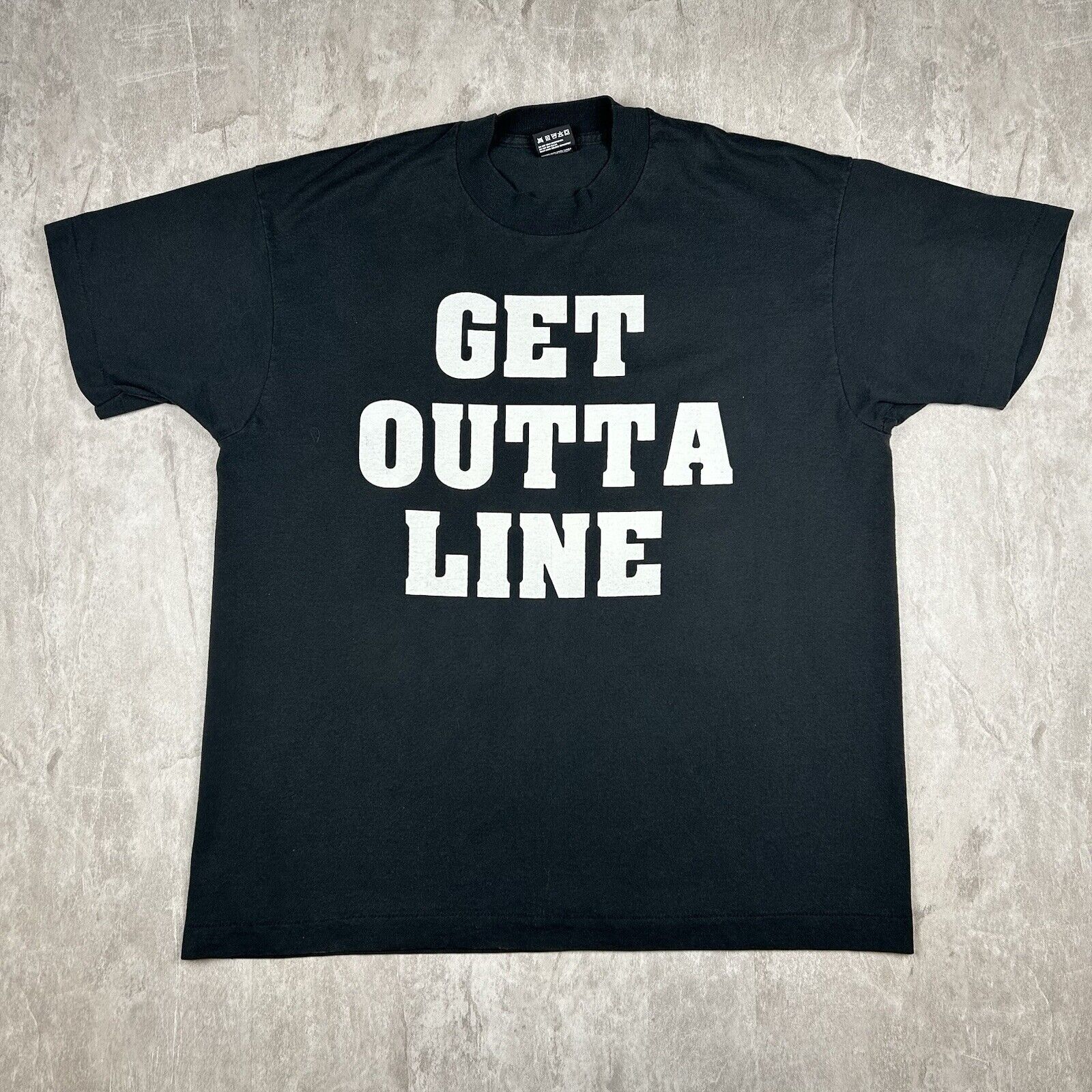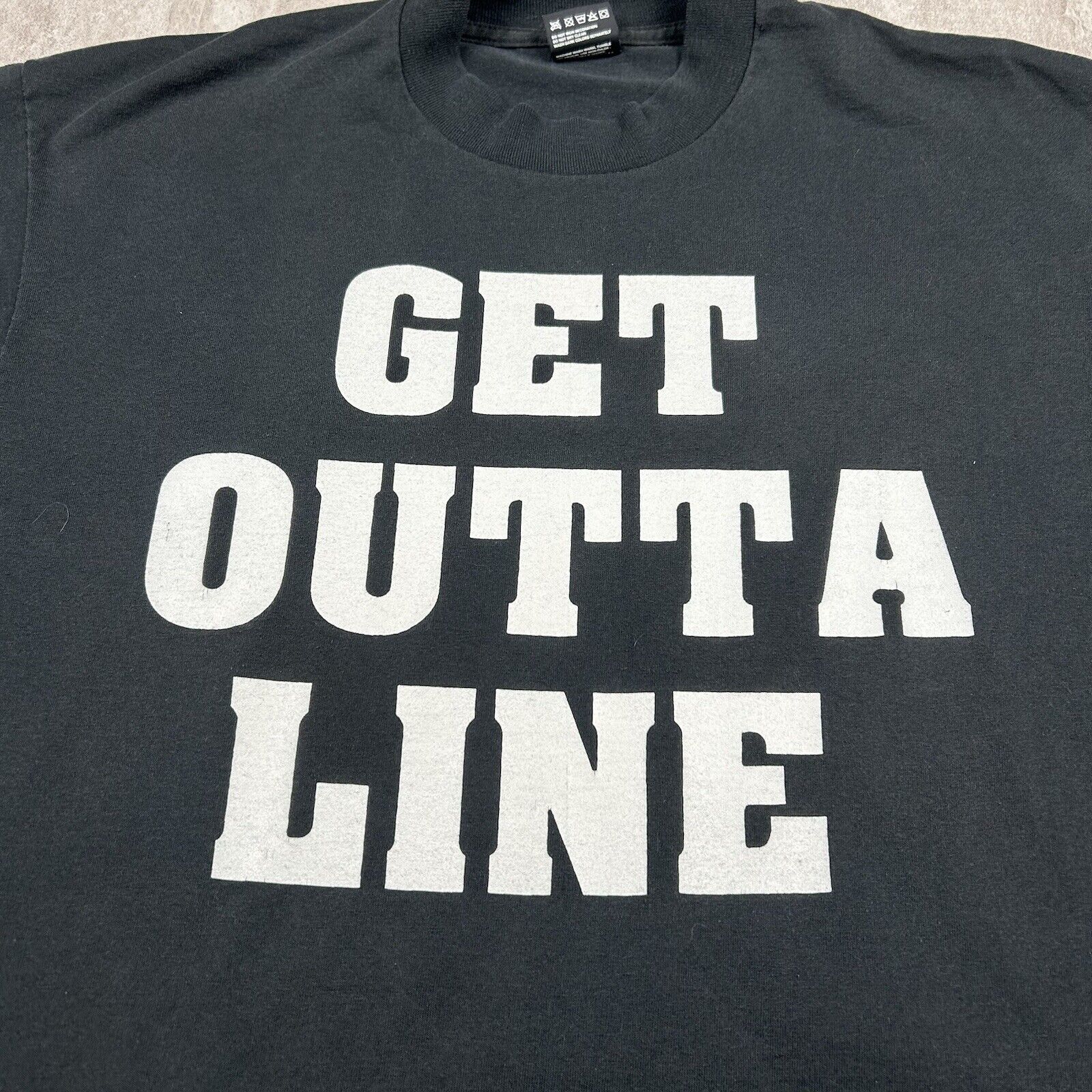 Vintage “Get Outta Line.. It’s The Law” Black T-Shirt Screen Stars Men’s Size XL